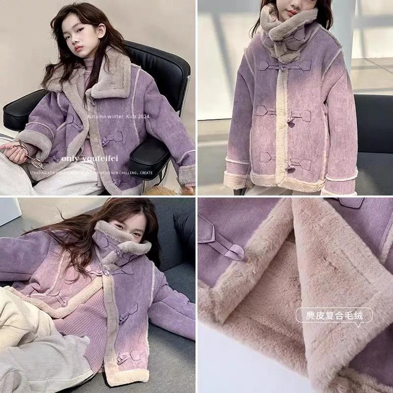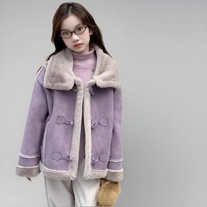 소녀들의 가을과 겨울 코트 2025 새로운 어린이 최고 소녀들의 겨울 두꺼운 모피 하나