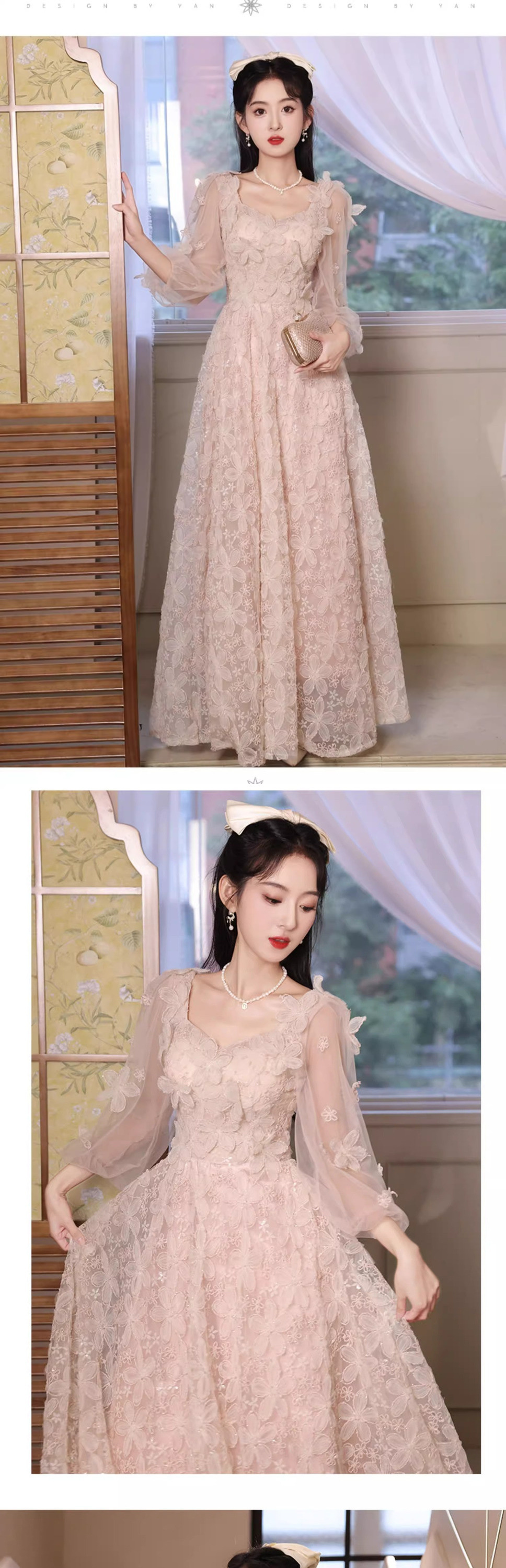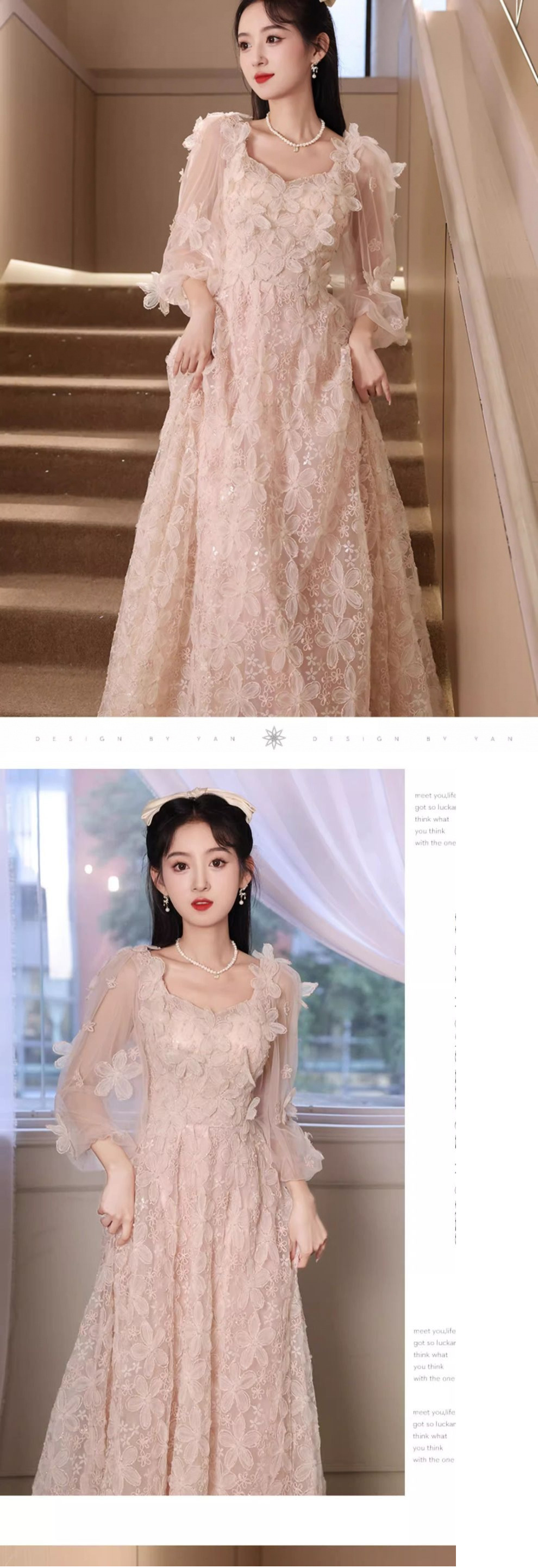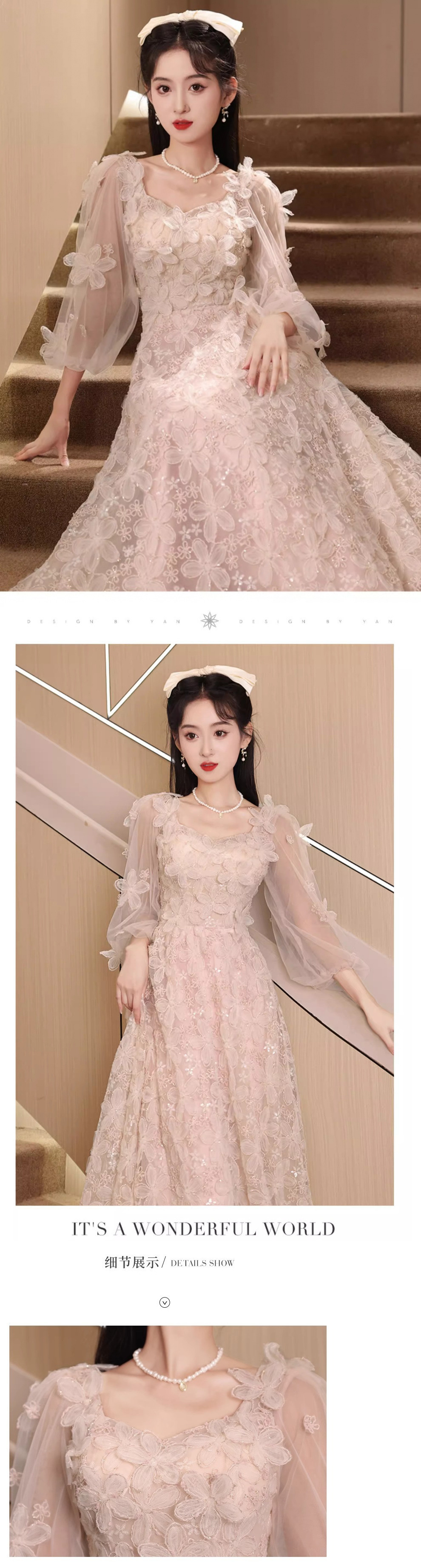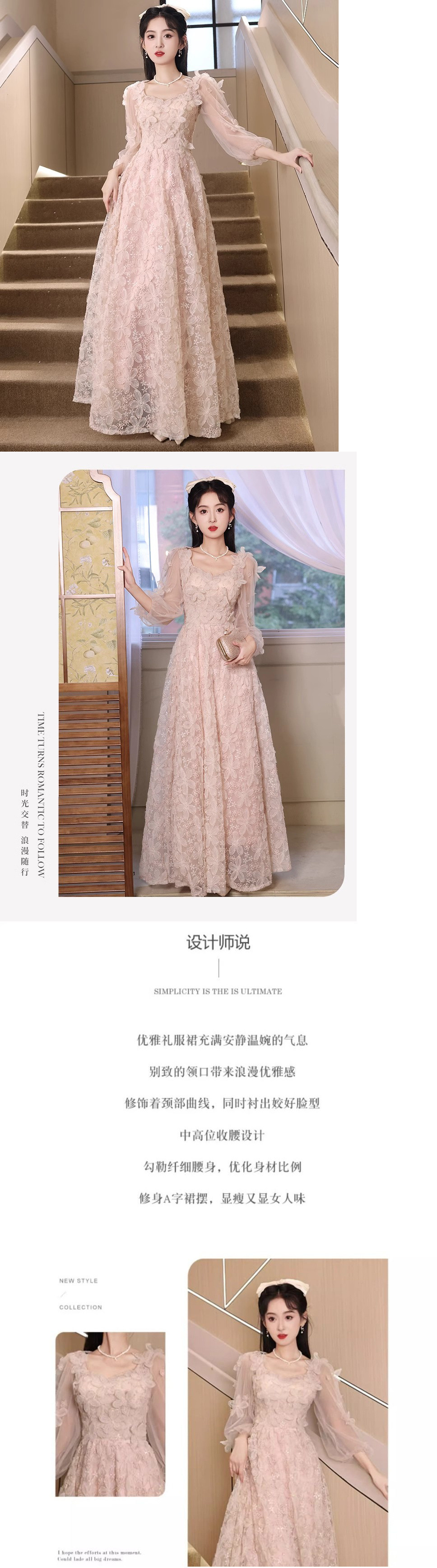 핑크 저녁 원피스 여성 2025 새로운 고급 조명 럭셔리 틈새 고급 프랑스 사교계 귀족 요정 원피스스토어 가기