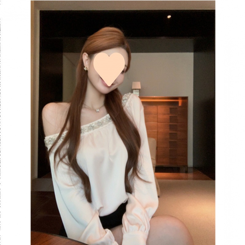 중공업 다이아몬드가 박힌 긴팔 셔츠 여성용 봄 하이 엔드 느슨한 새틴 셔츠 틈새 독특한 우아한 탑스토어 가기