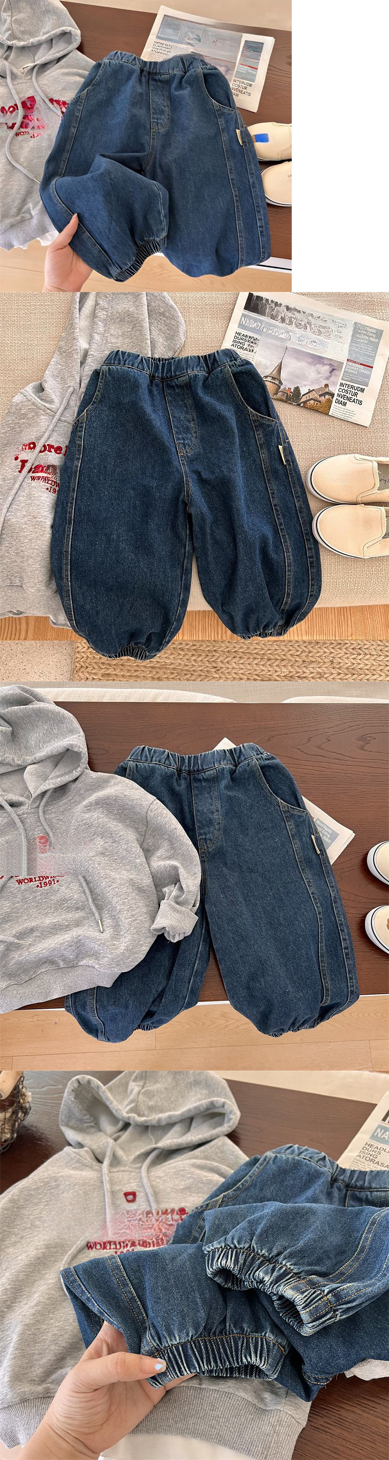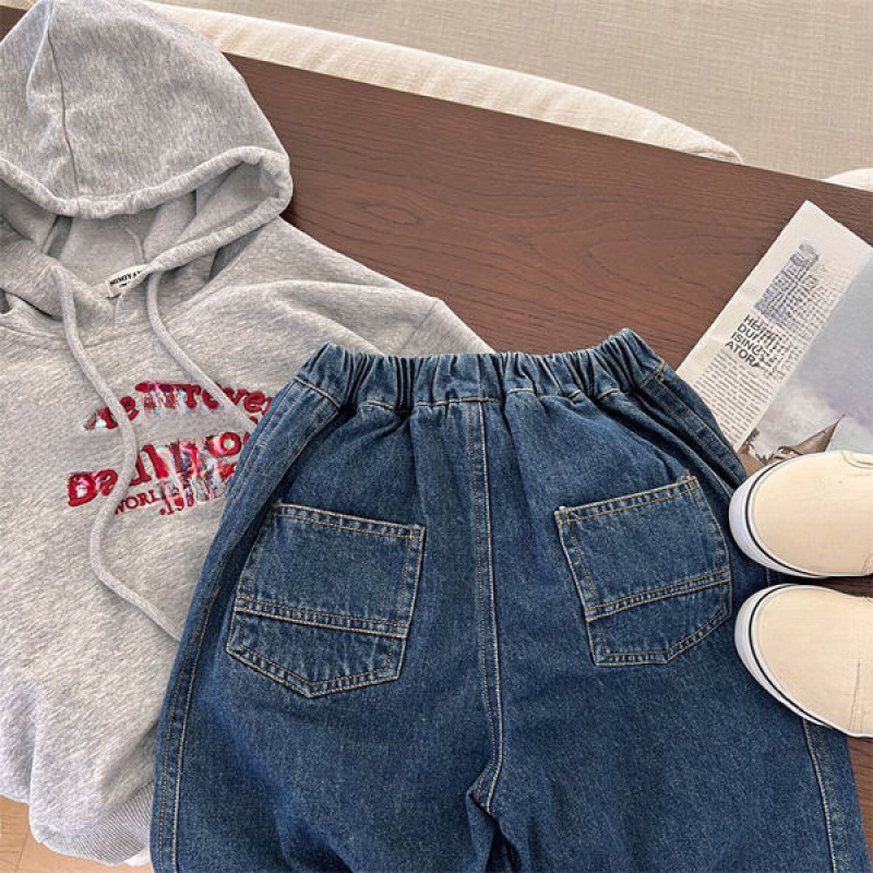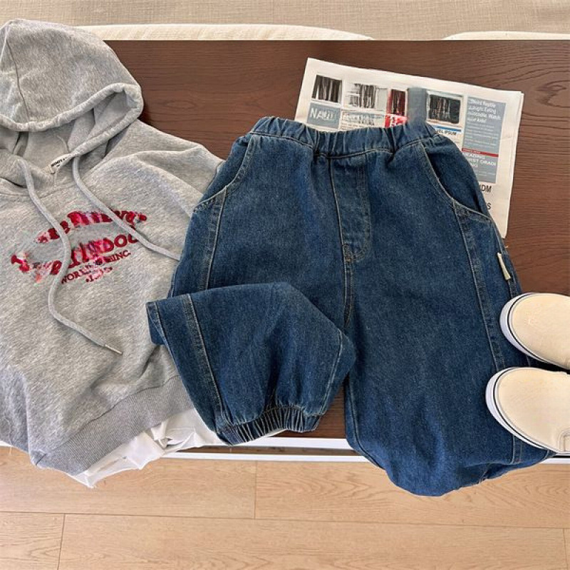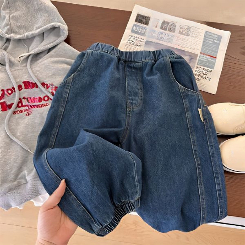 아기 소년과 소녀를위한 기모 유행 어린이 다리 다리 청바지 블루머스 중립 단색 롱