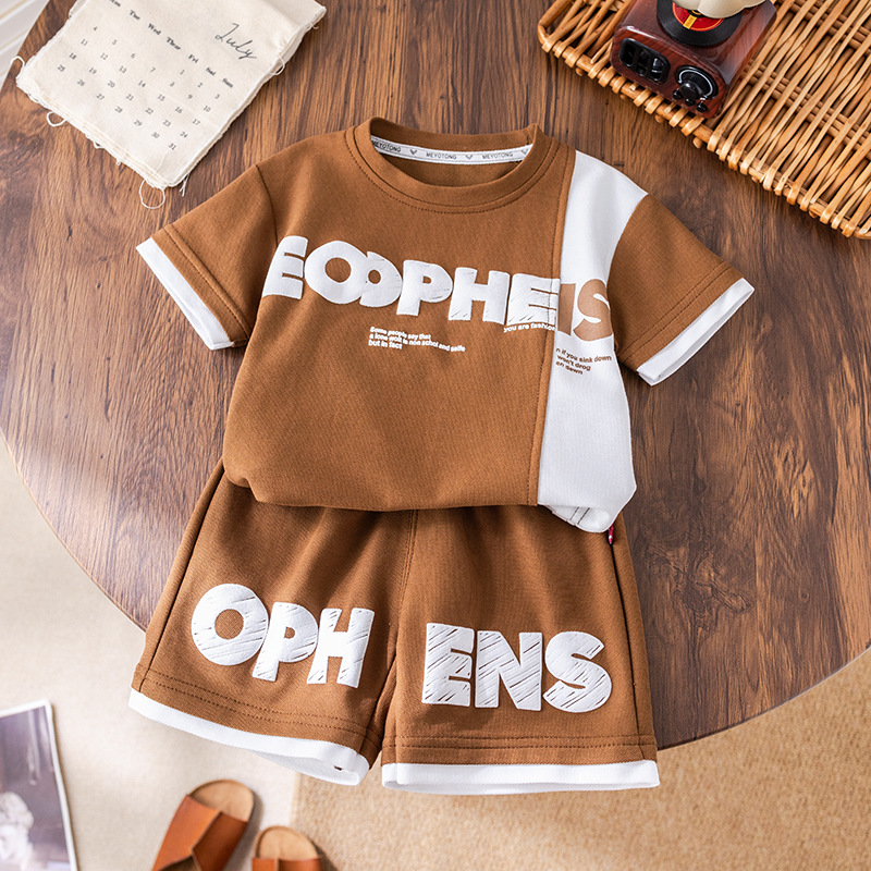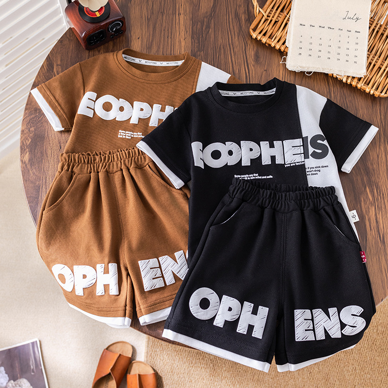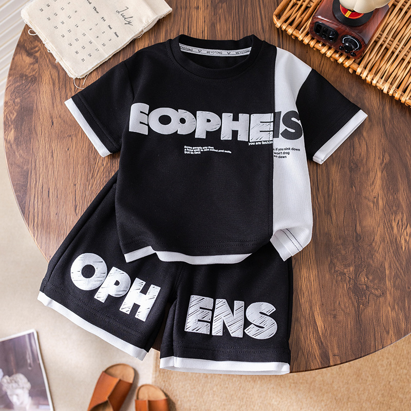 남학생 여름 세트 둥근 목 짧은 소매 서양식 새로운 어린이 여름 짧은 소매 반바지 투피스 도매