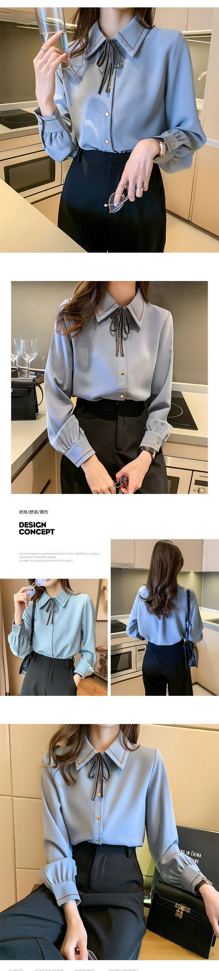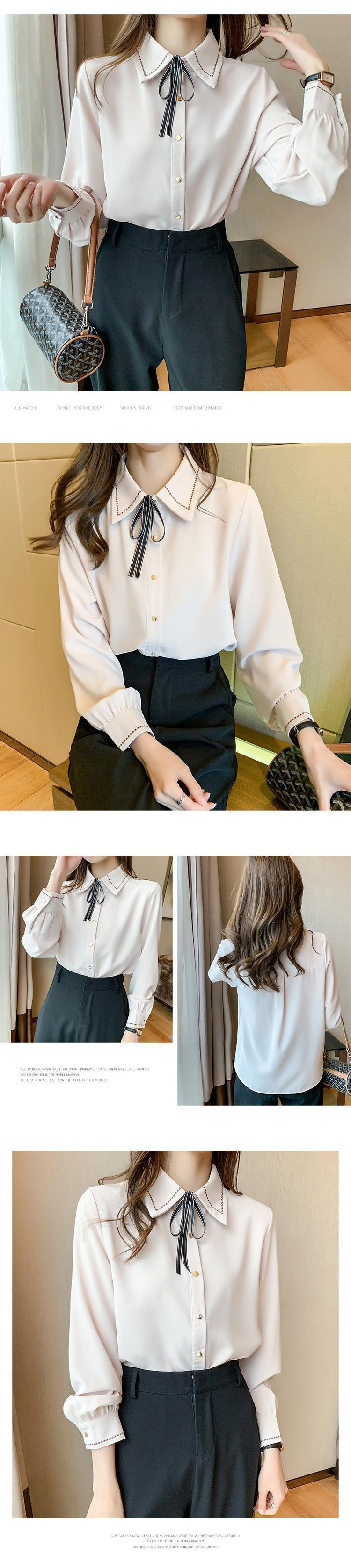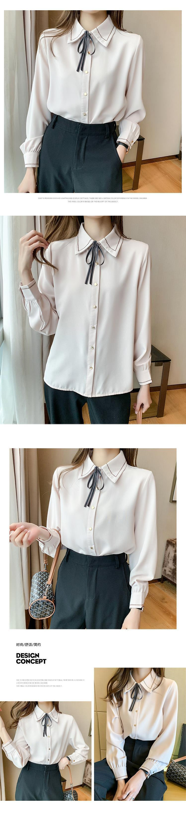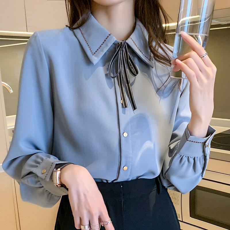 쉬폰 셔츠 여성용 긴소매 베이스 셔츠 2025 봄과 가을 새로운 도착 활 셔츠 디자인 틈새 Chic Top스토어 가기