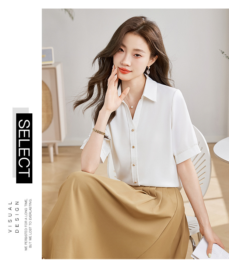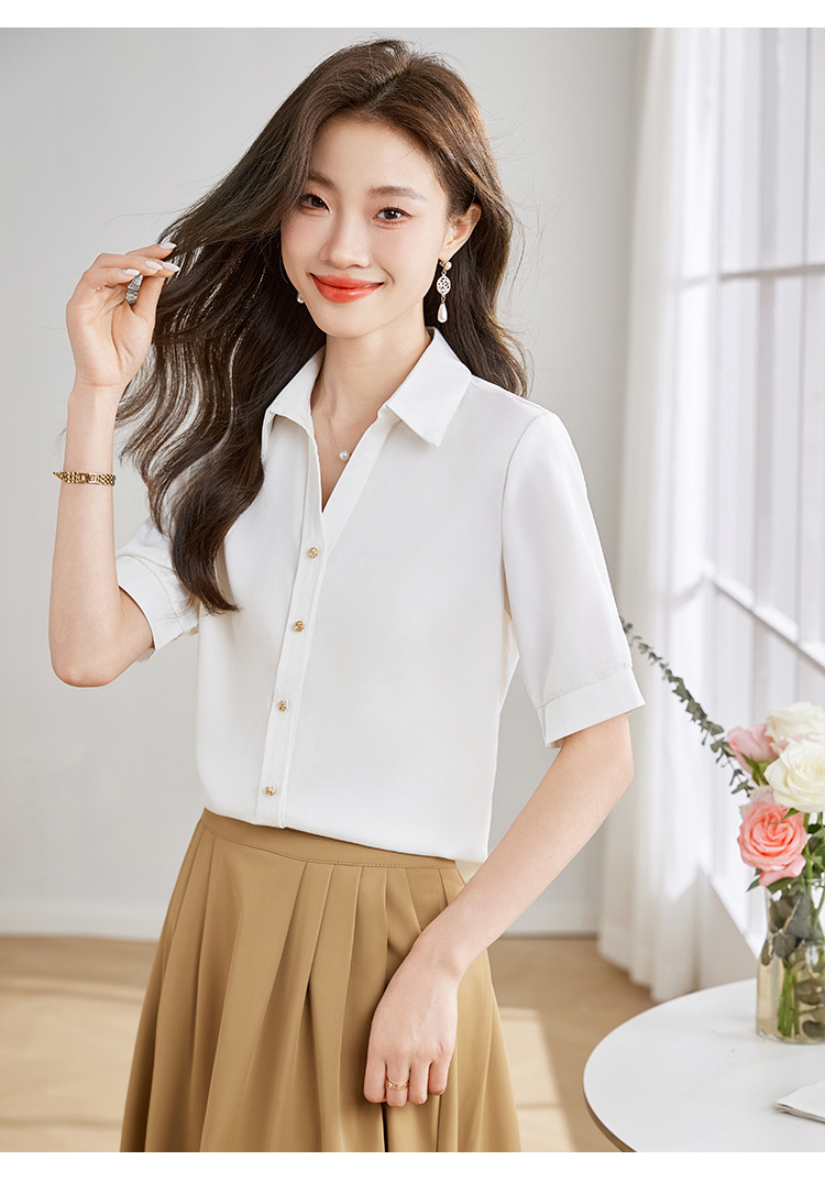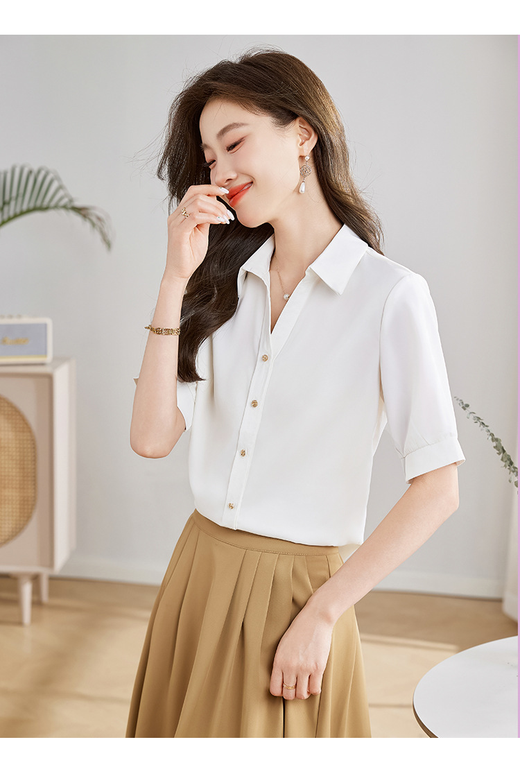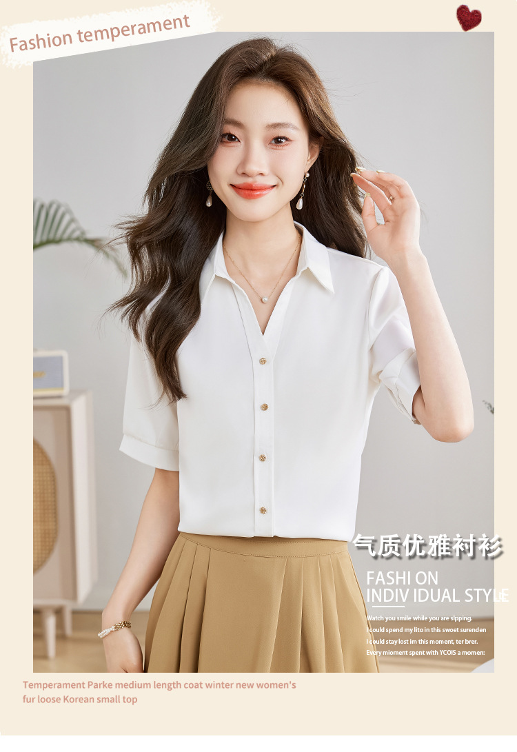 리얼 샷 2024 여름 홍콩 스타일 셔츠 여성 반팔 탑 올 매치 한국식 패션 기질 화이트 셔츠