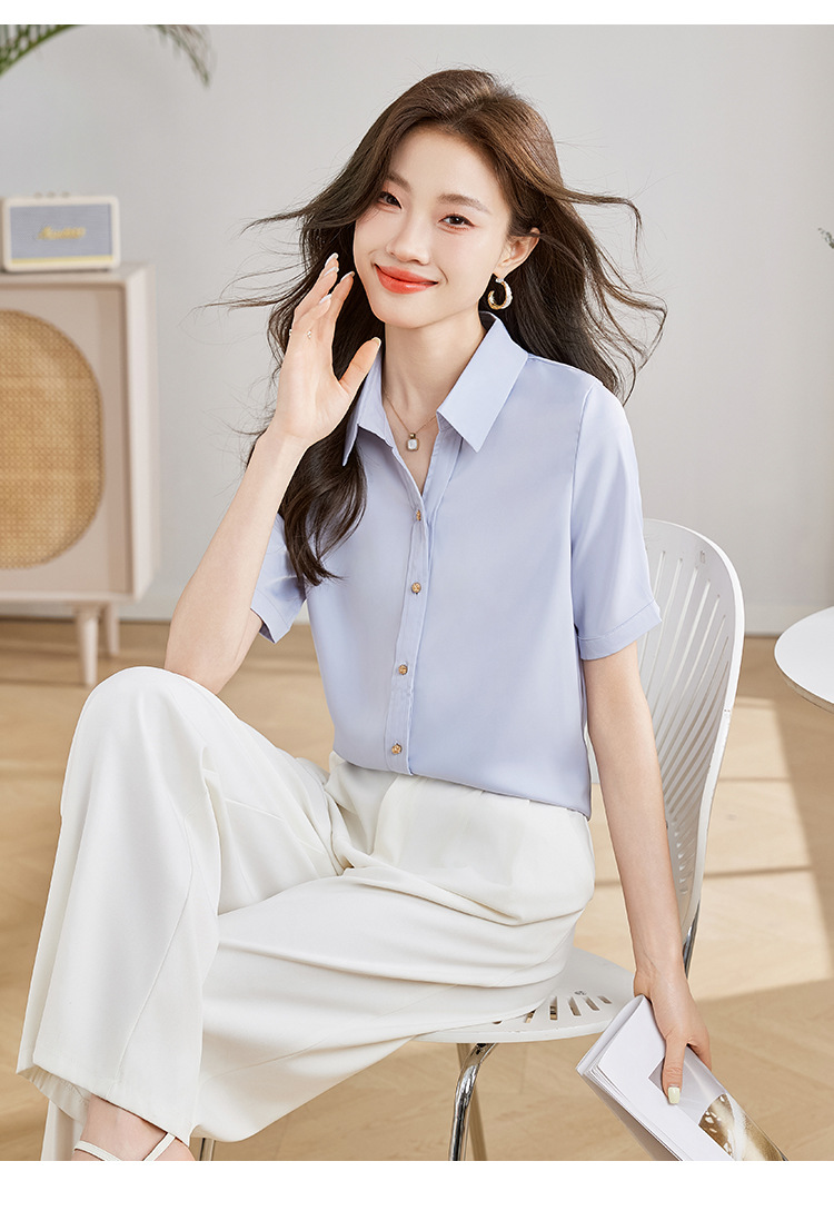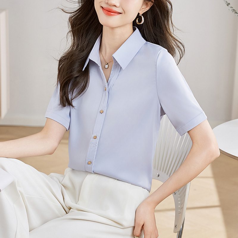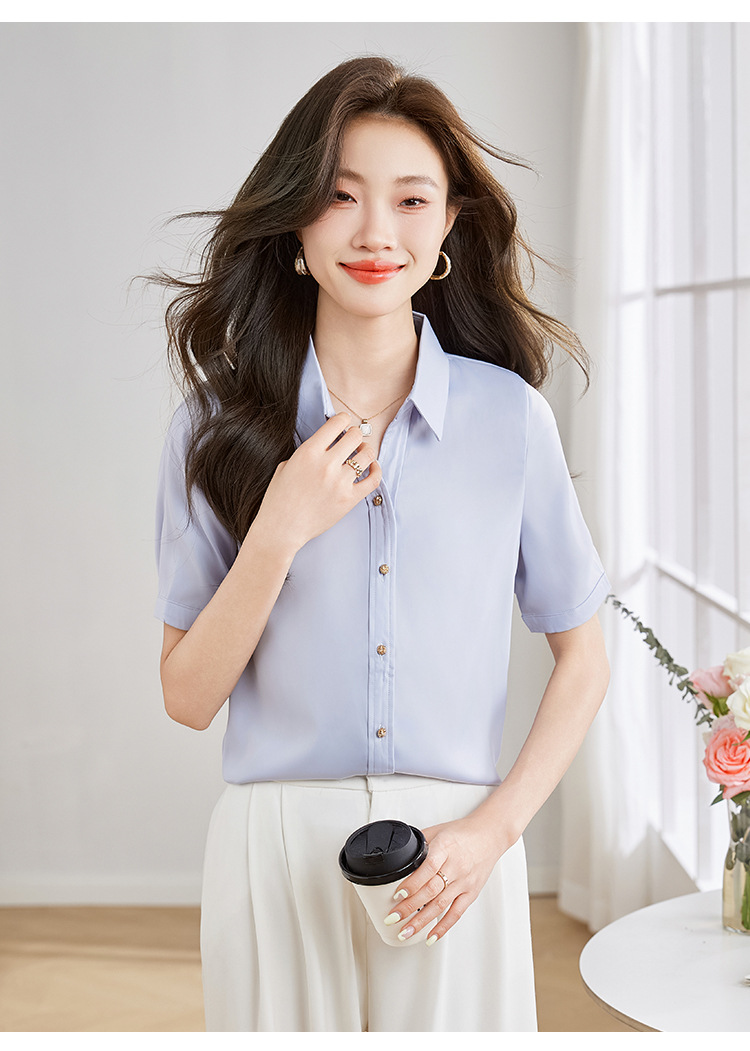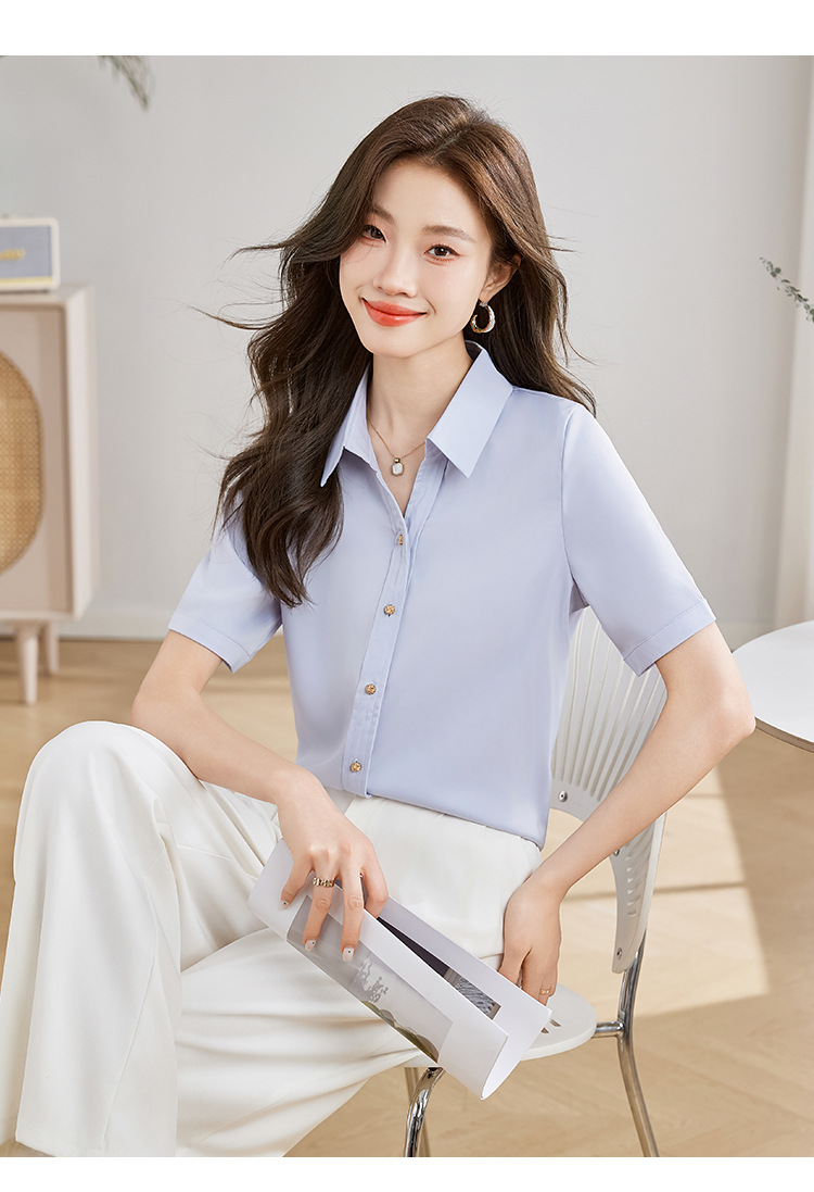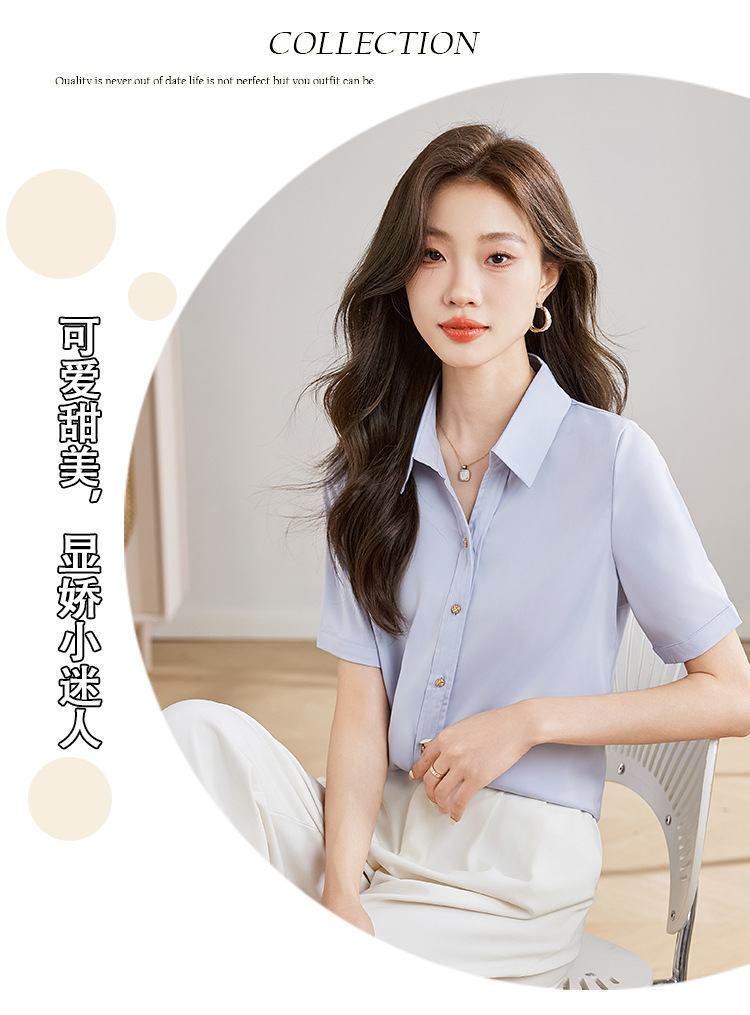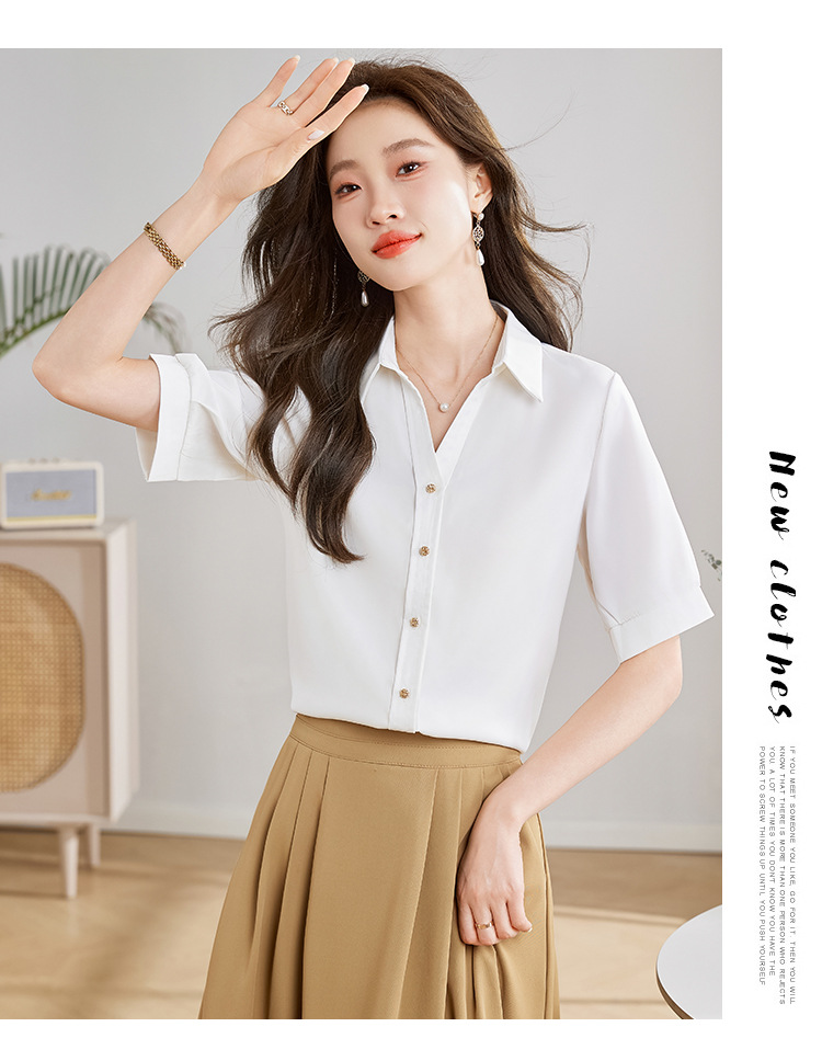 리얼 샷 2024 여름 홍콩 스타일 셔츠 여성 반팔 탑 올 매치 한국식 패션 기질 화이트 셔츠스토어 가기