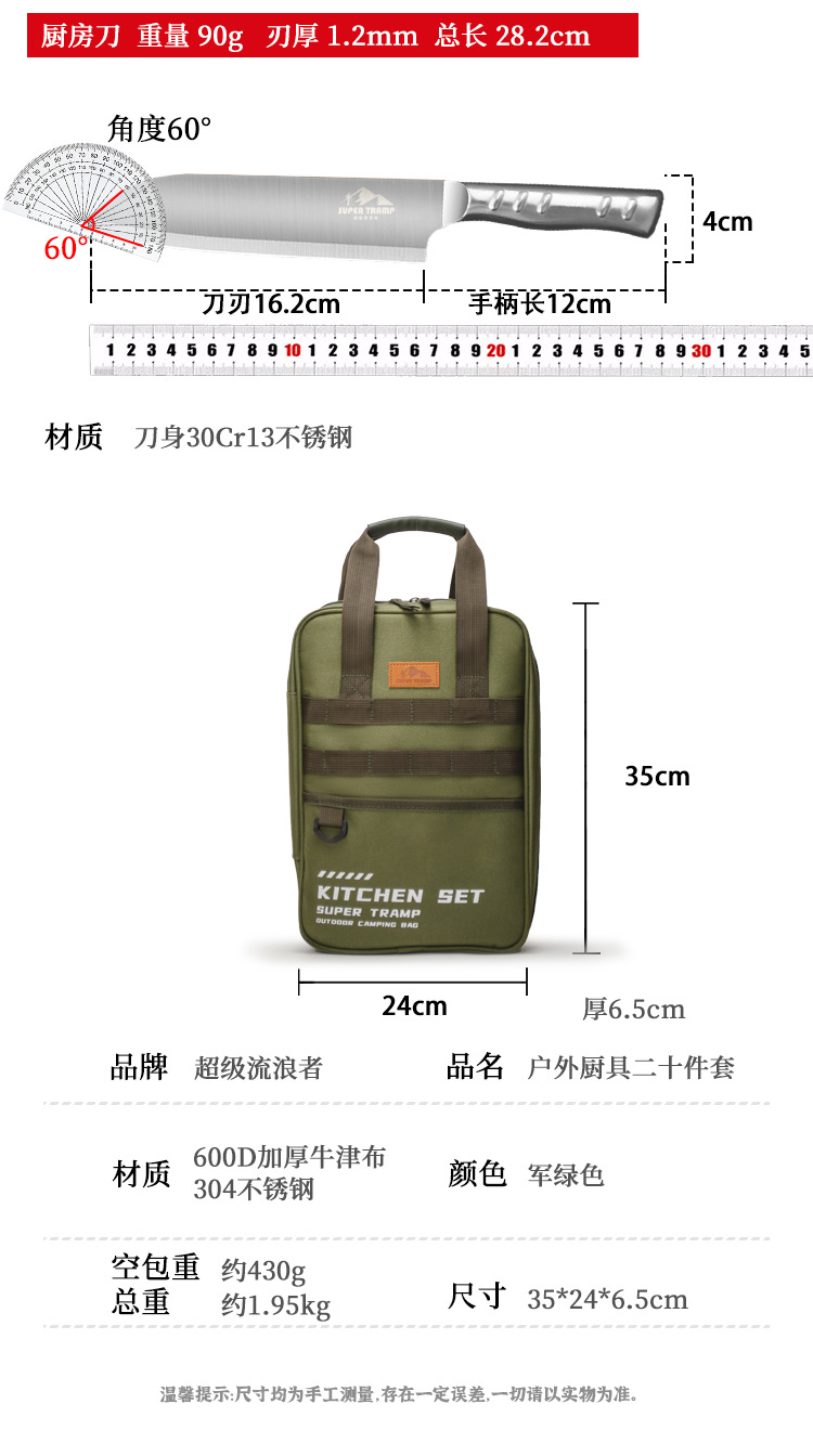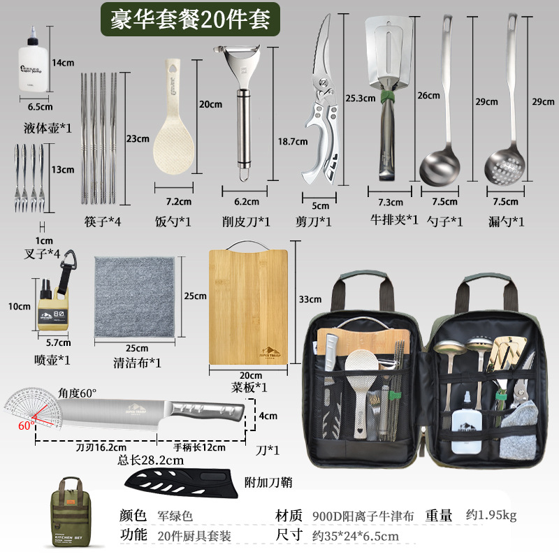 • 새롭게 업그레이드된 전술 주방용품 가방 20종 세트 [주방용품 19종 + 수납가방 포함]