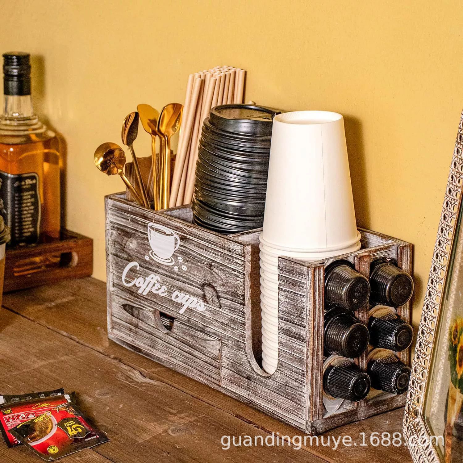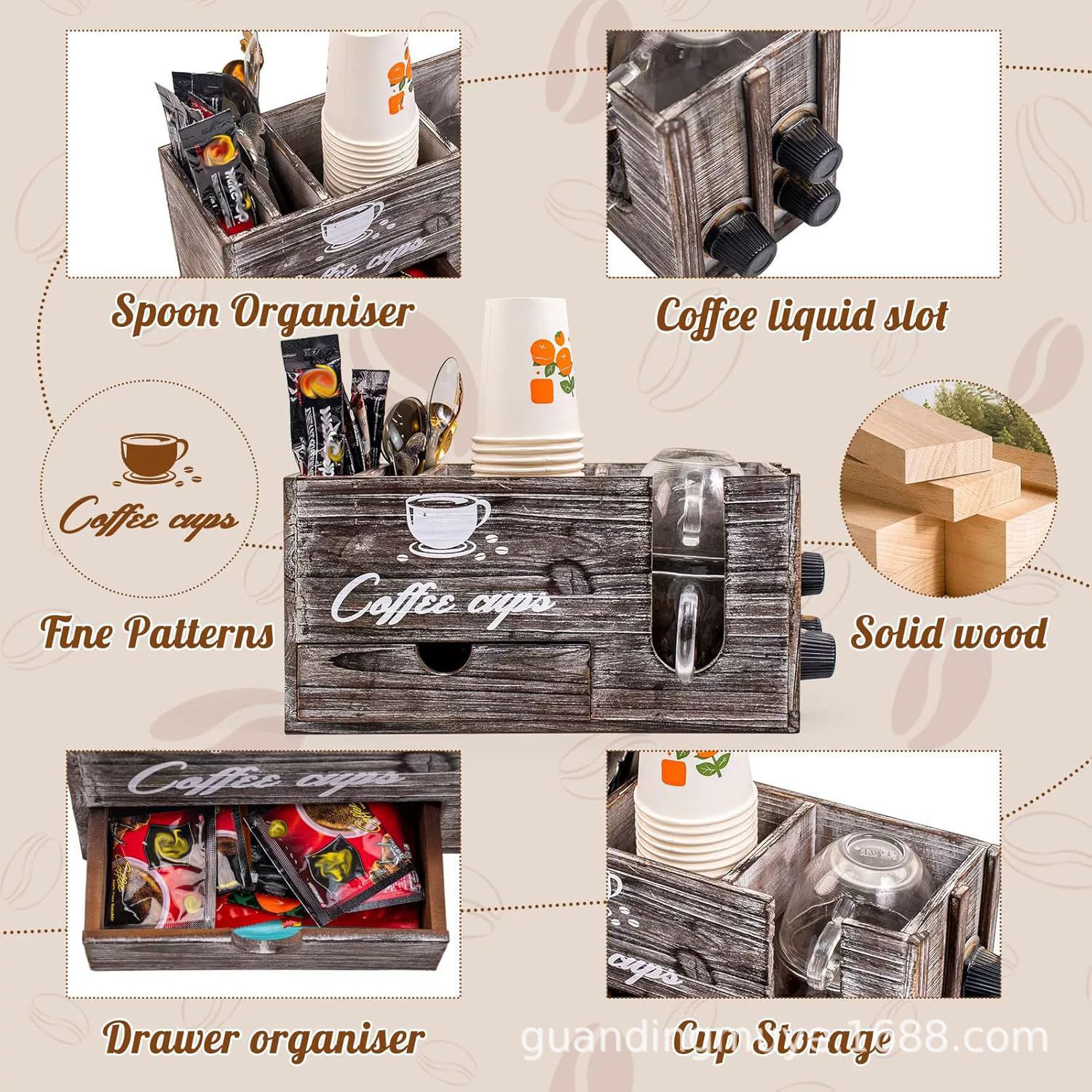 나무 커피 상자 국가 빈티지 서랍 유형 커피 캡슐 저장 상자 종이 컵 홀더 멀티 그리드 단단한 나무 저장 상자
