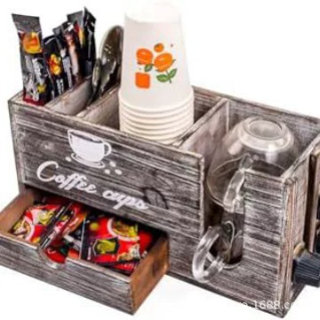 나무 커피 상자 국가 빈티지 서랍 유형 커피 캡슐 저장 상자 종이 컵 홀더 멀티 그리드 단단한 나무 저장 상자스토어 가기