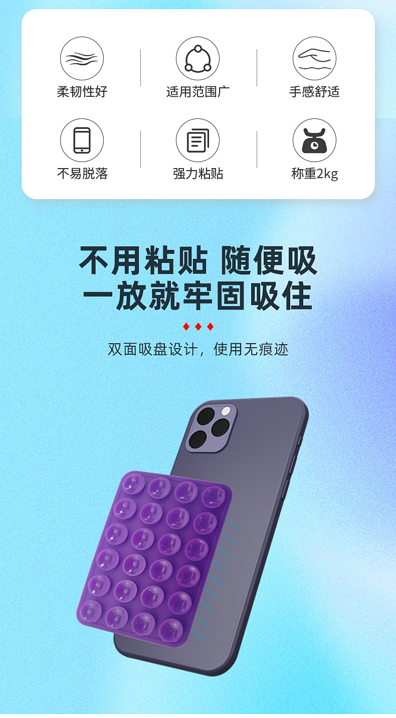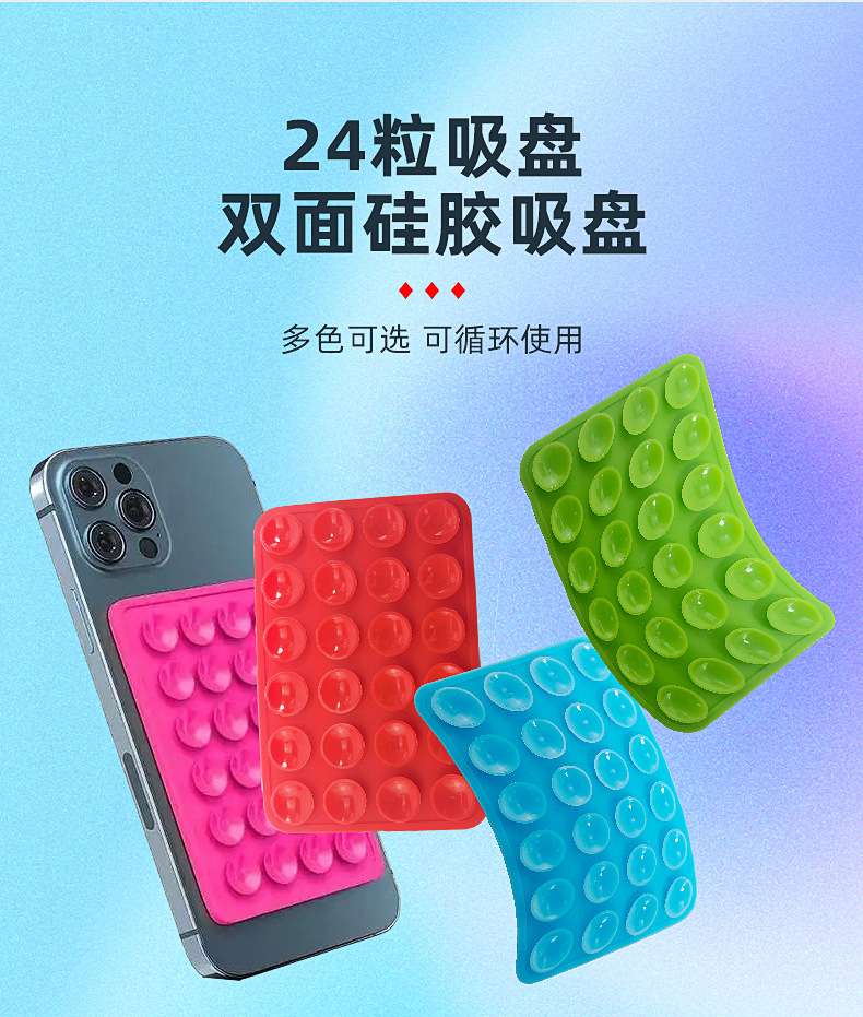국경 양면 실리콘 휴대 전화 흡입 컵 24 사각형 자체 접착 실리콘 흡입 컵 홀더 게으른 휴대 전화 홀더
