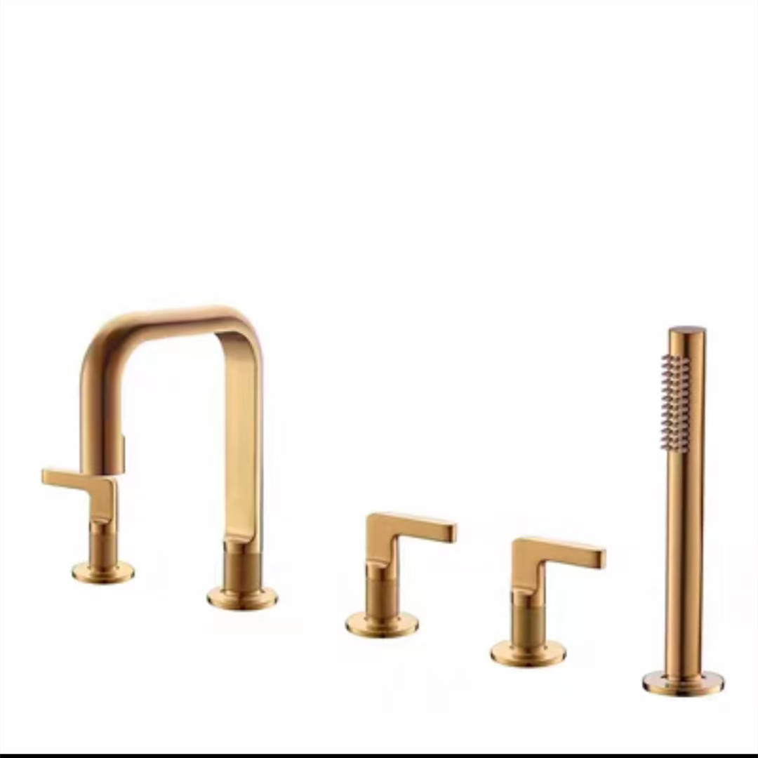 • 브러시드 골드 5홀 욕조 수전