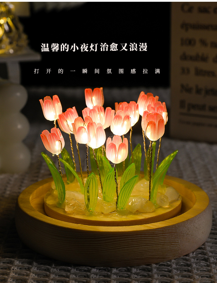 남학생과 여학생을위한 튤립 나이트 라이트 장식품 DIY 수제 실용적인 꽃다발 생일 선물 Tanabata는 친구와 급우를 보냅니다.스토어 가기