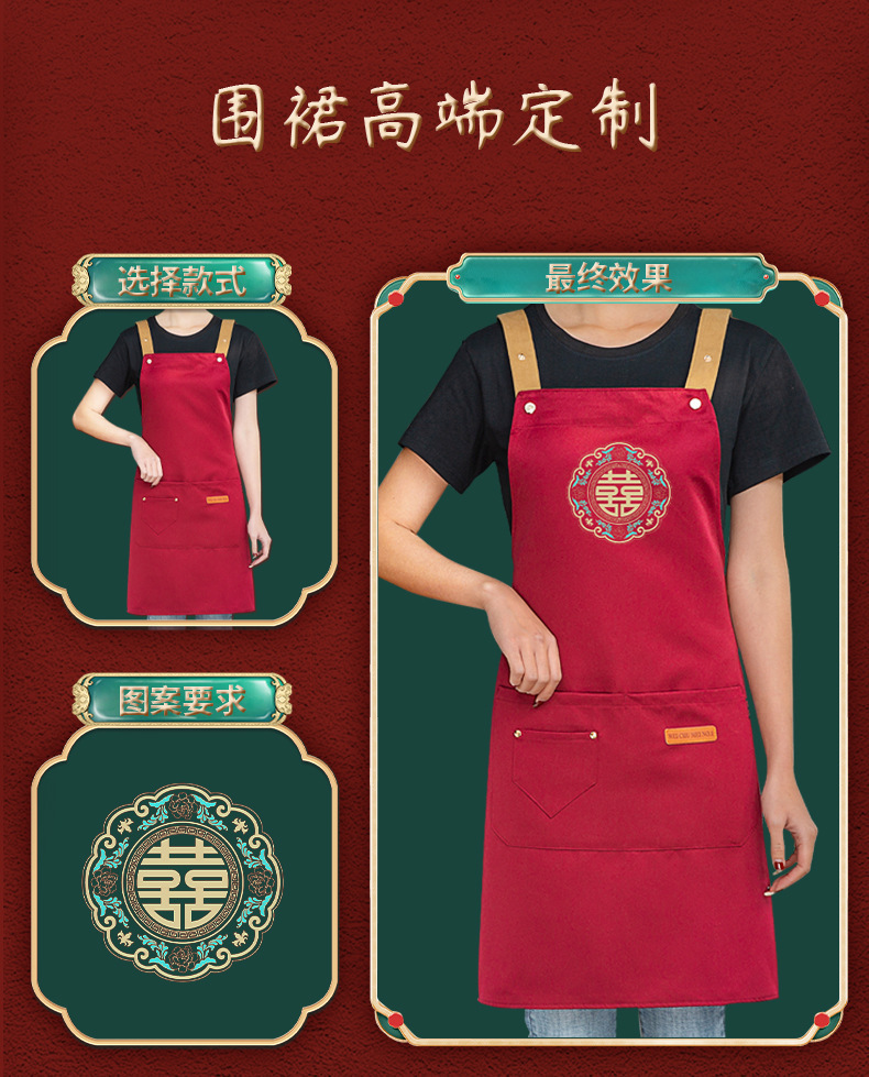 결혼식 이벤트를위한 빨간 앞치마 맞춤 인쇄 로고 결혼식 연회 결혼식 파티 축제 도움 방수 허리