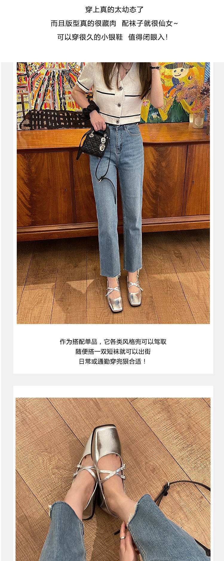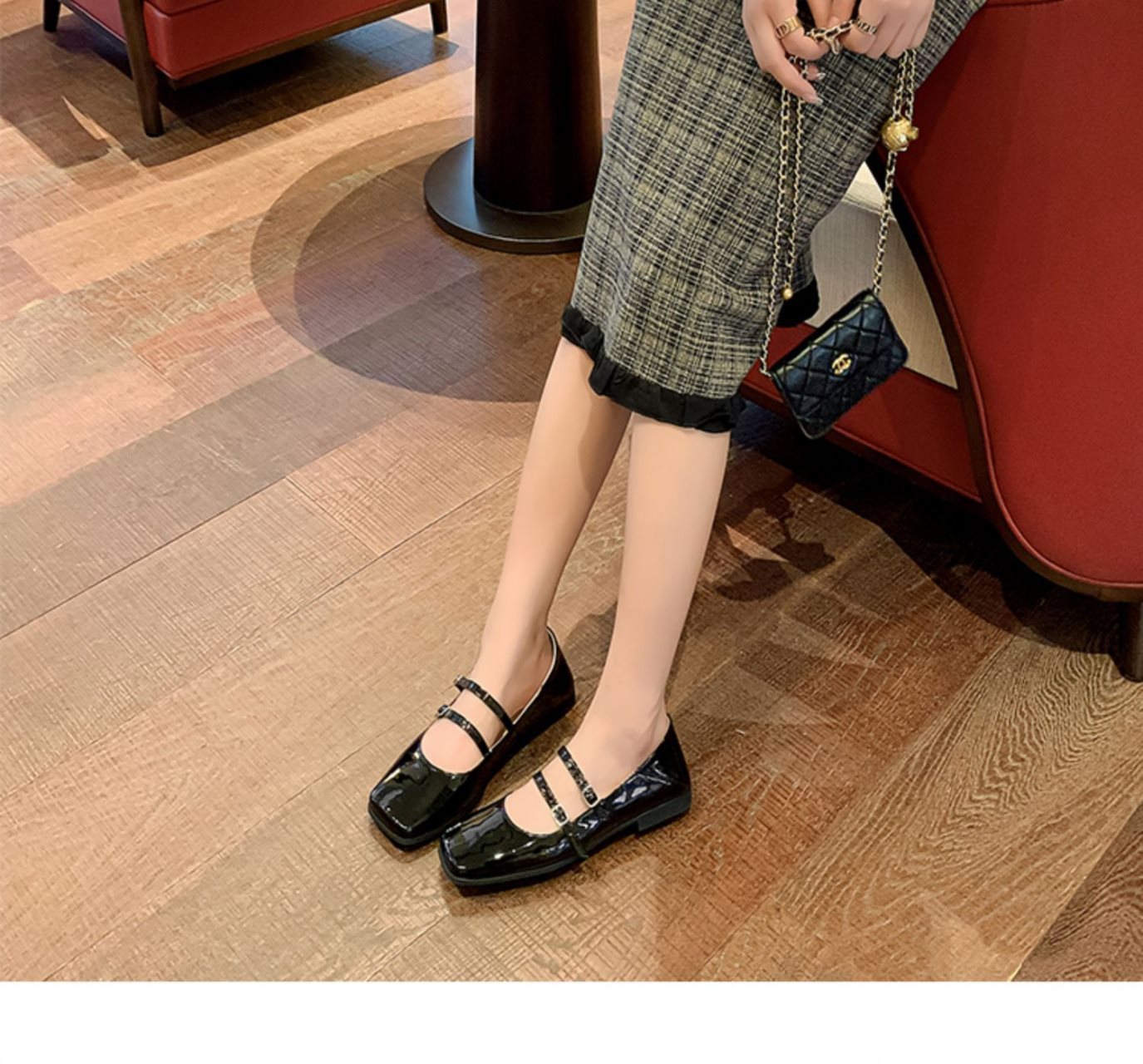 두꺼운 힐 신발 여성용 하이힐 프렌치 스퀘어 토이 실버 소프트 가죽 2024 메리 제인 우아한 새 양가죽스토어 가기