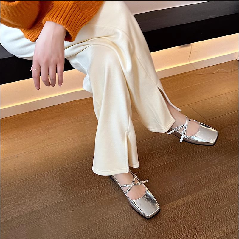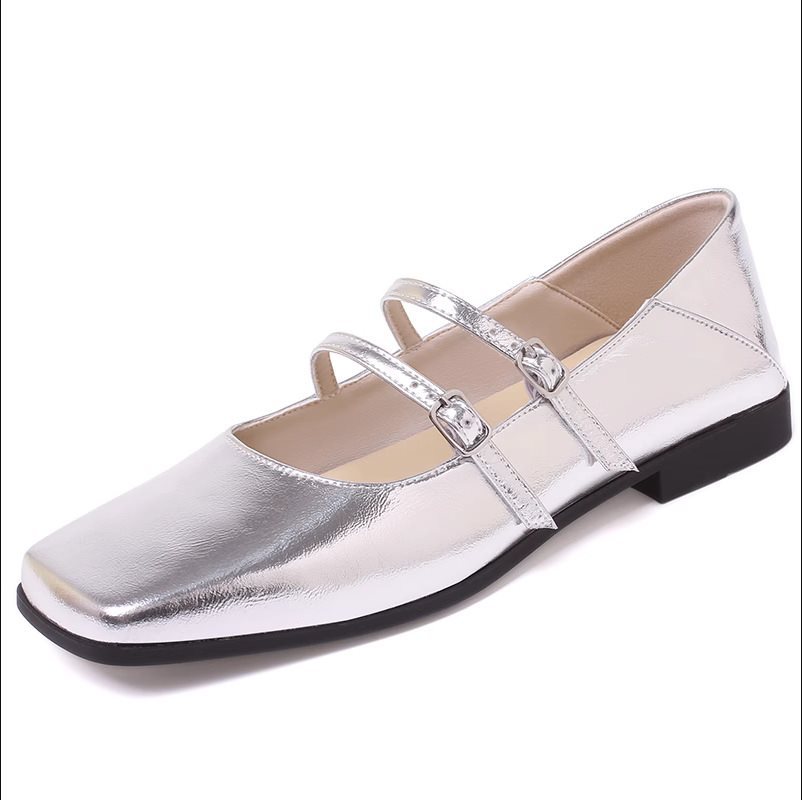 두꺼운 힐 신발 여성용 하이힐 프렌치 스퀘어 토이 실버 소프트 가죽 2024 메리 제인 우아한 새 양가죽