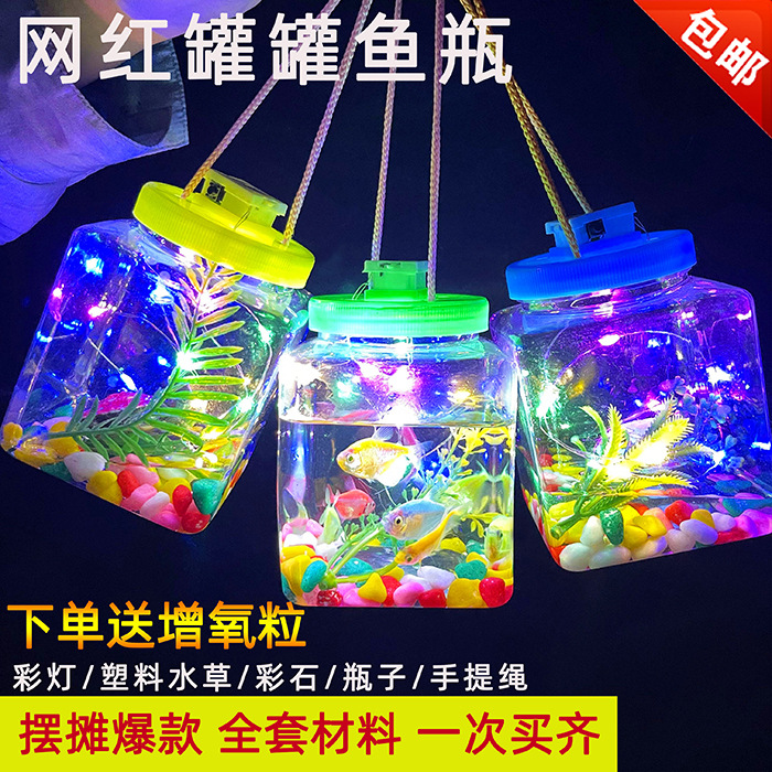 인터넷 축하 빛나는 항아리 물고기 병 야시장 스톨 버블 물고기 빛나는 작은 물고기 병 작은 거북이 병 빛나는 플라스틱 병 거북이 탱크스토어 가기