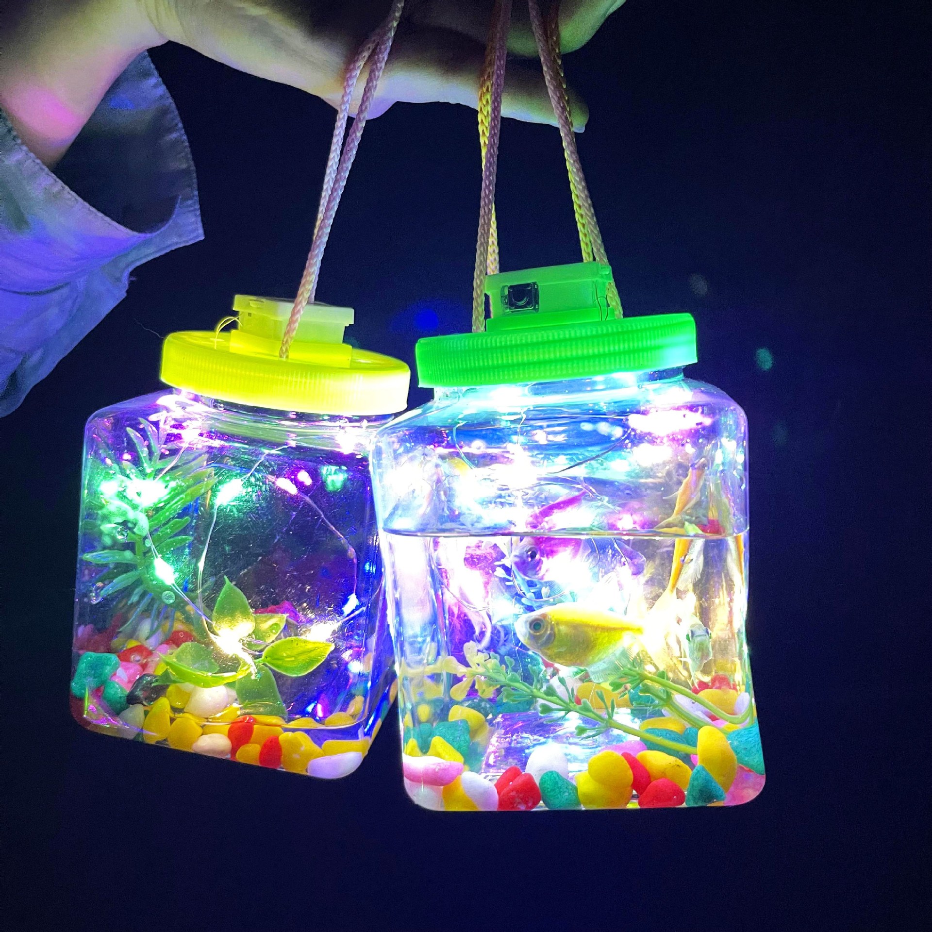 인터넷 축하 빛나는 항아리 물고기 병 야시장 스톨 버블 물고기 빛나는 작은 물고기 병 작은 거북이 병 빛나는 플라스틱 병 거북이 탱크