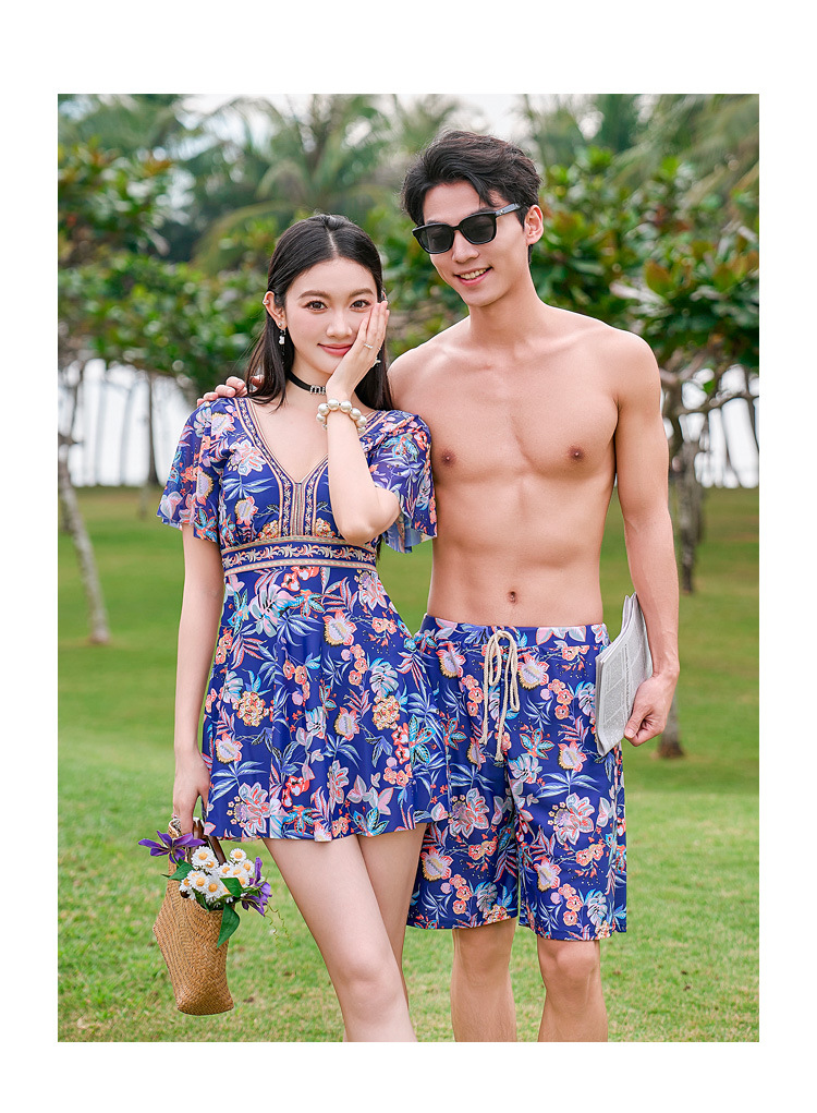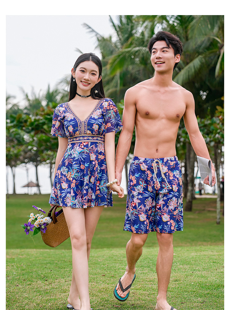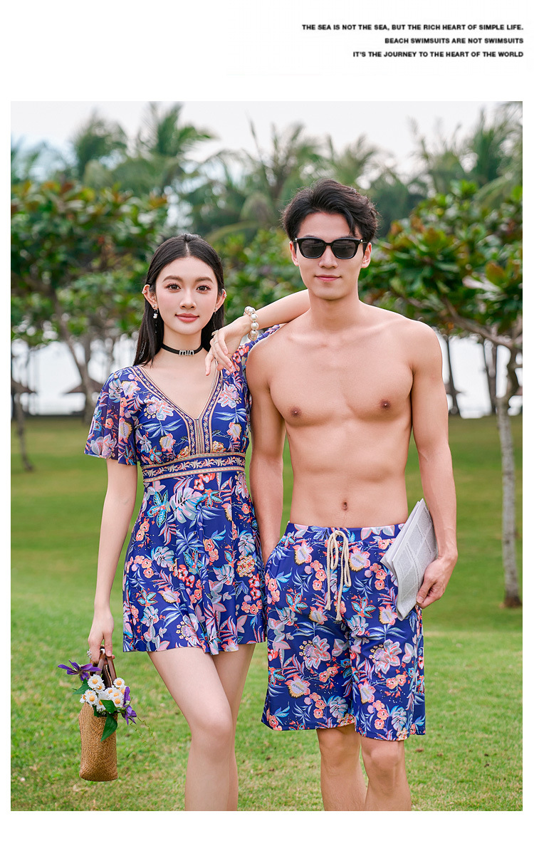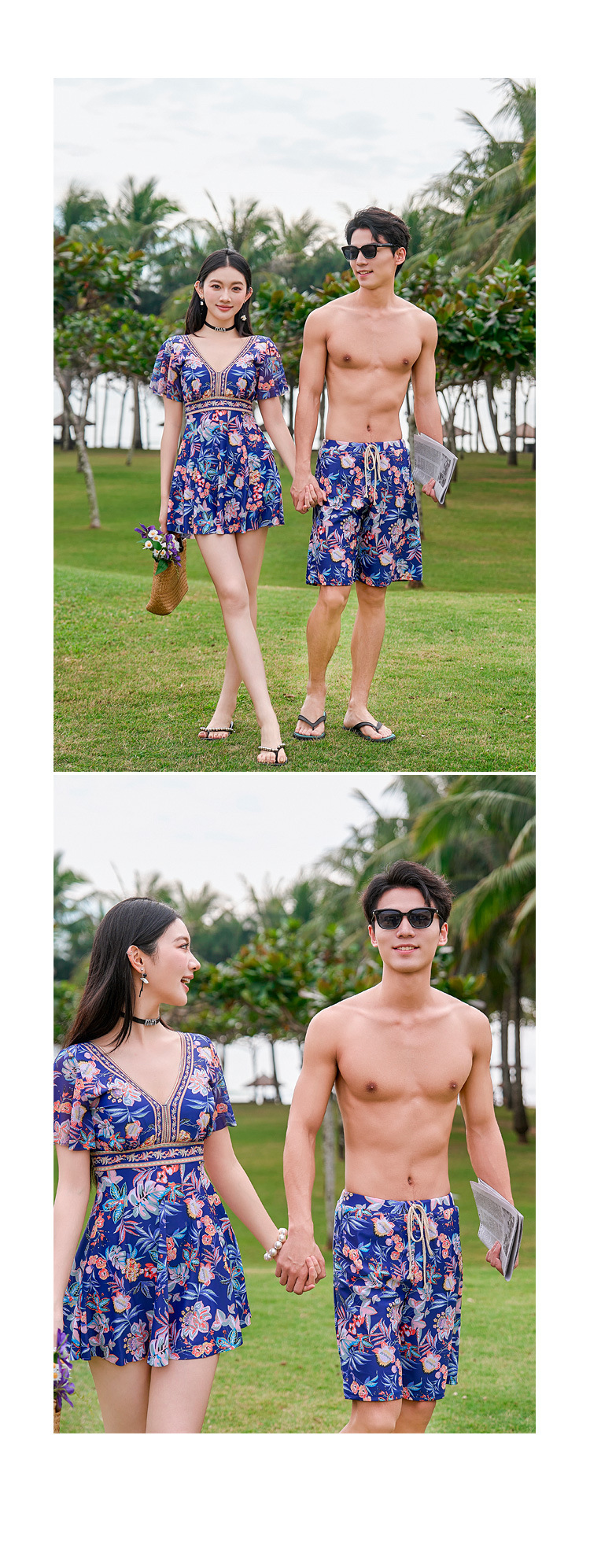 커플 수영복 유행 우아한 민족 스타일 슬림 여성 치마 스타일 수영복 남성 비치 바지 플러스 사이즈 커플 수영복스토어 가기
