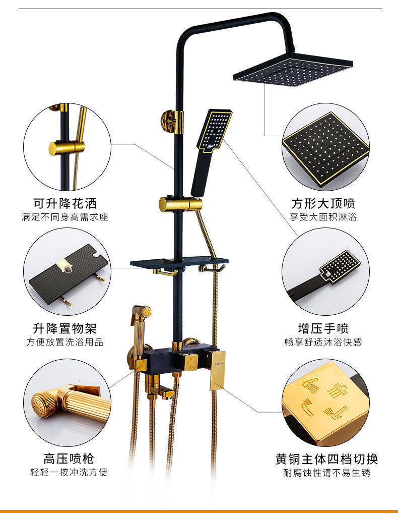 주류 가압 샤워 노즐 블랙 골드 샤워 세트 가정용 비 샤워 수도꼭지 샤워 온수기 꽃 스프레이