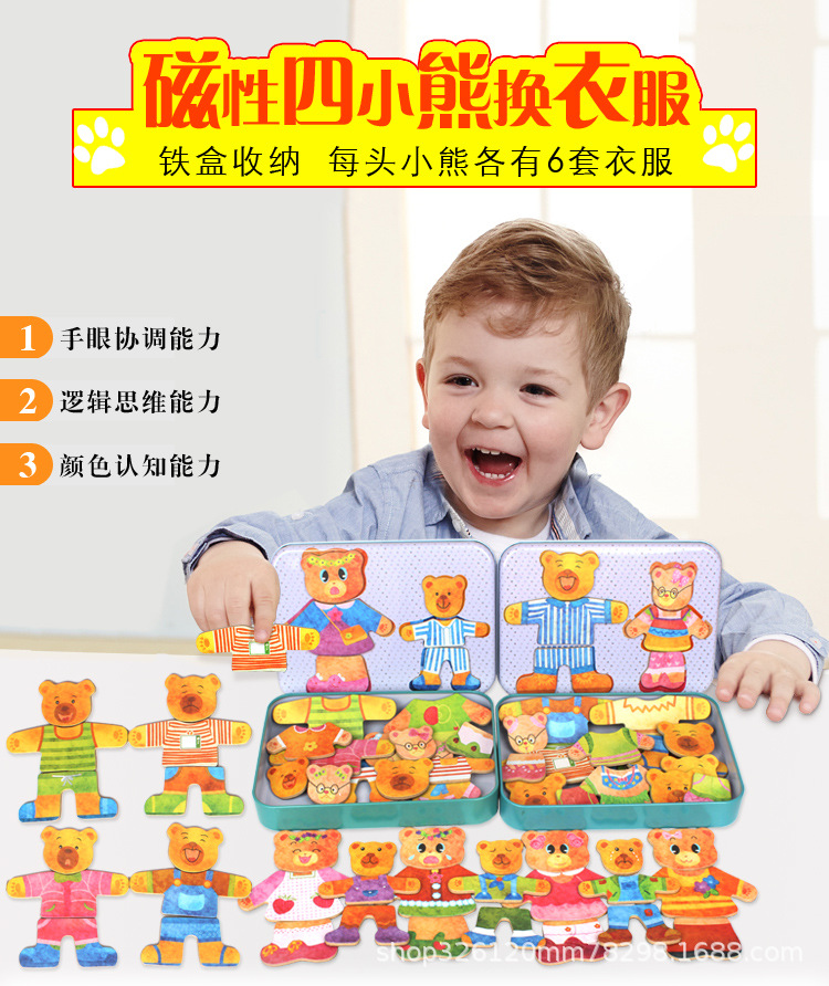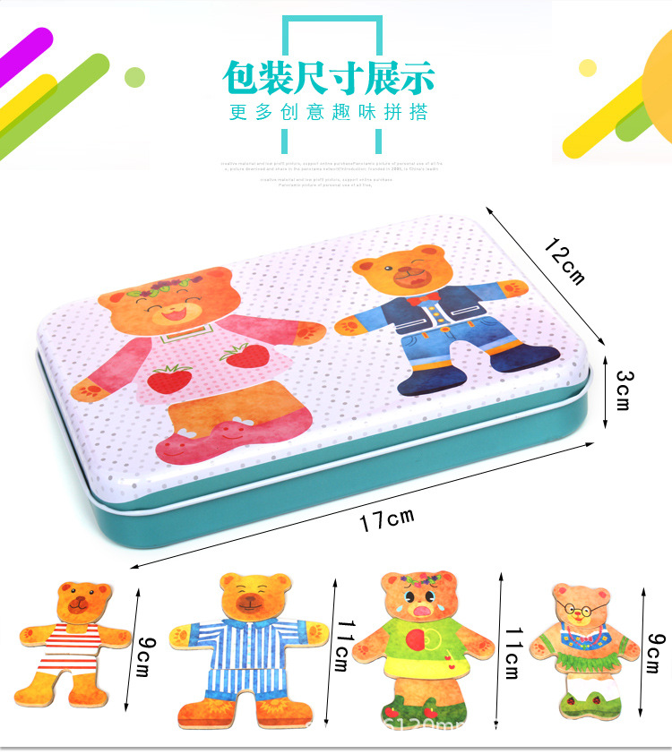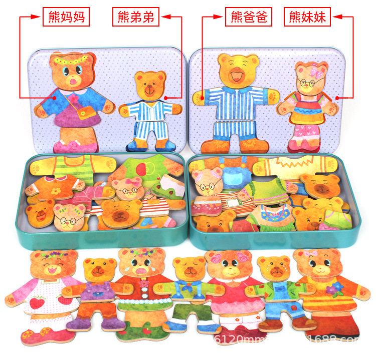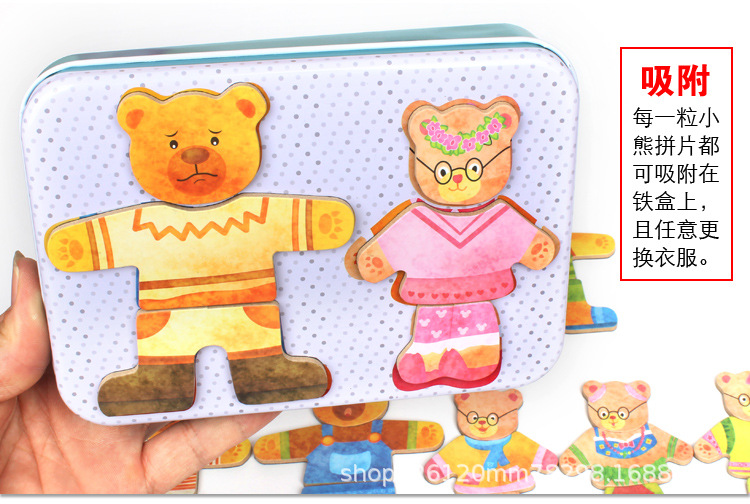 어린이 곰 변경 옷 절묘한 철 박스 유치원 자기 직소 퍼즐 나무 계몽주의 교육 조기 교육 장난감스토어 가기
