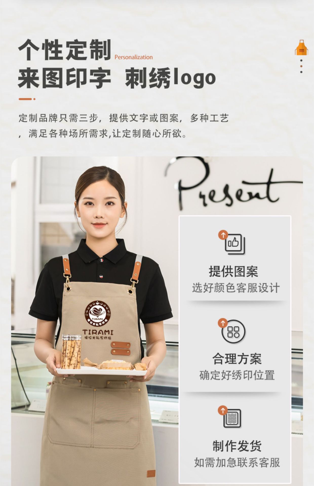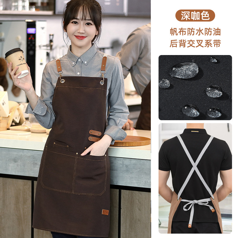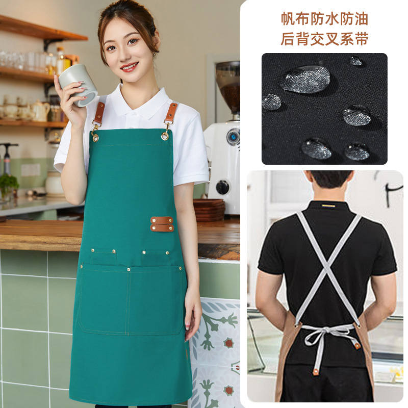 캔버스 앞치마 로고 인쇄 케이터링 베이킹 슈퍼마켓 과일 커피 우유 차 가게 특별 방수 작업복 사용자 정의스토어 가기