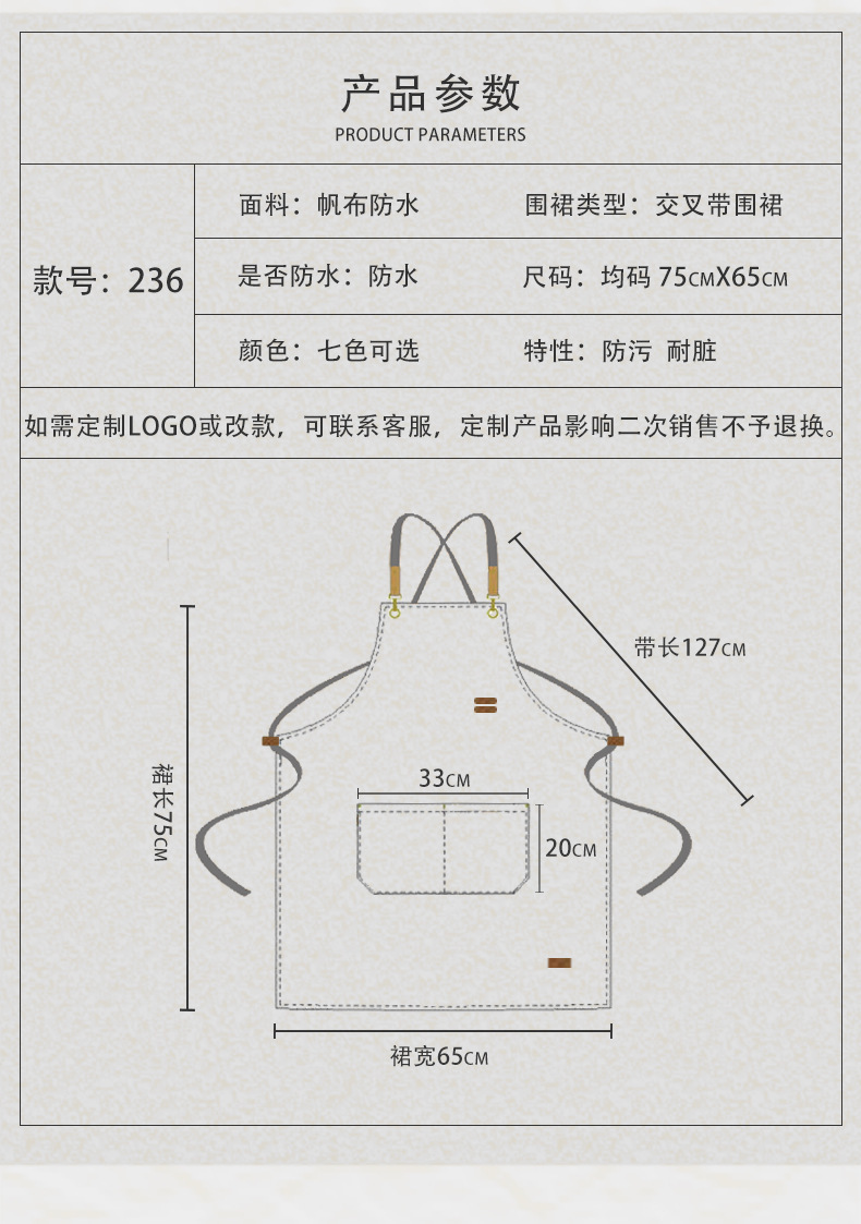 캔버스 앞치마 로고 인쇄 케이터링 베이킹 슈퍼마켓 과일 커피 우유 차 가게 특별 방수 작업복 사용자 정의