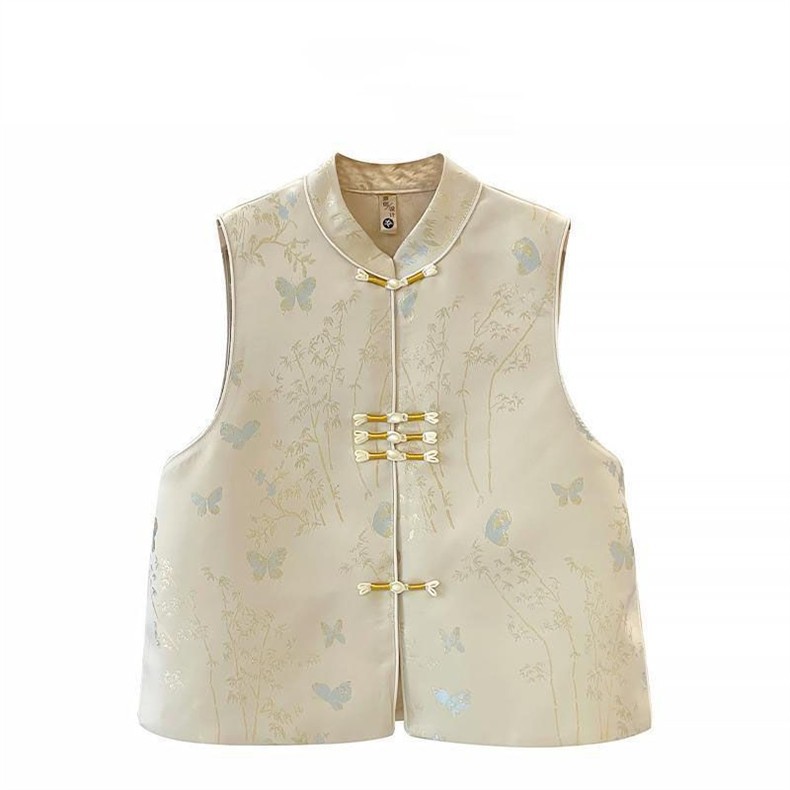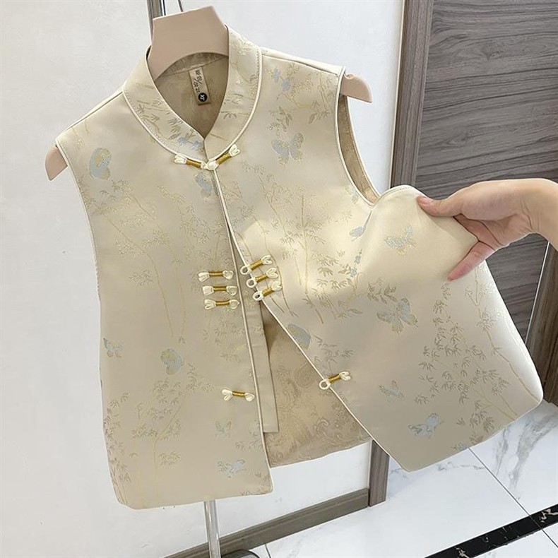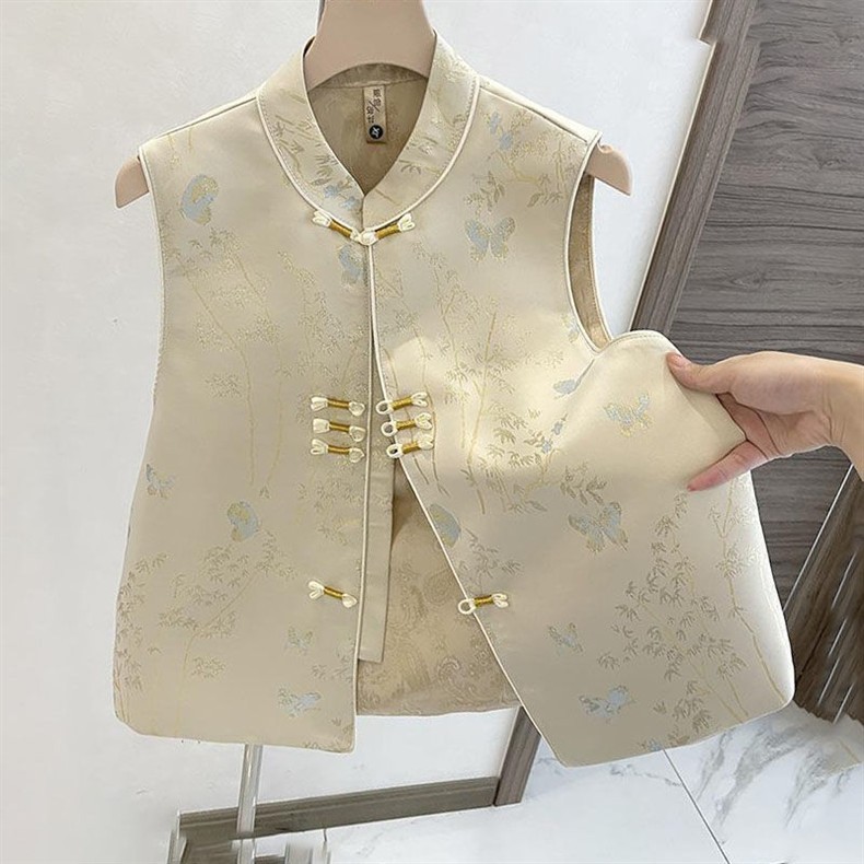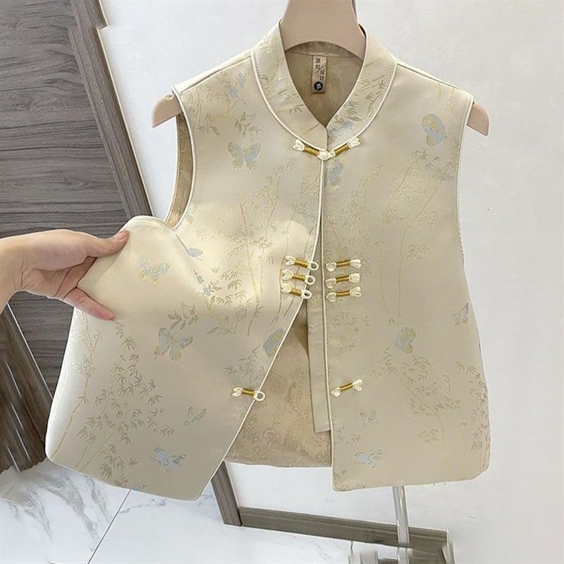 중국 스타일의 새로운 중국 스타일 하이 엔드 패브릭 조끼 여성 버클 조끼 봄과 가을 가을 패션 작은 인기 인터넷 인기 조끼스토어 가기