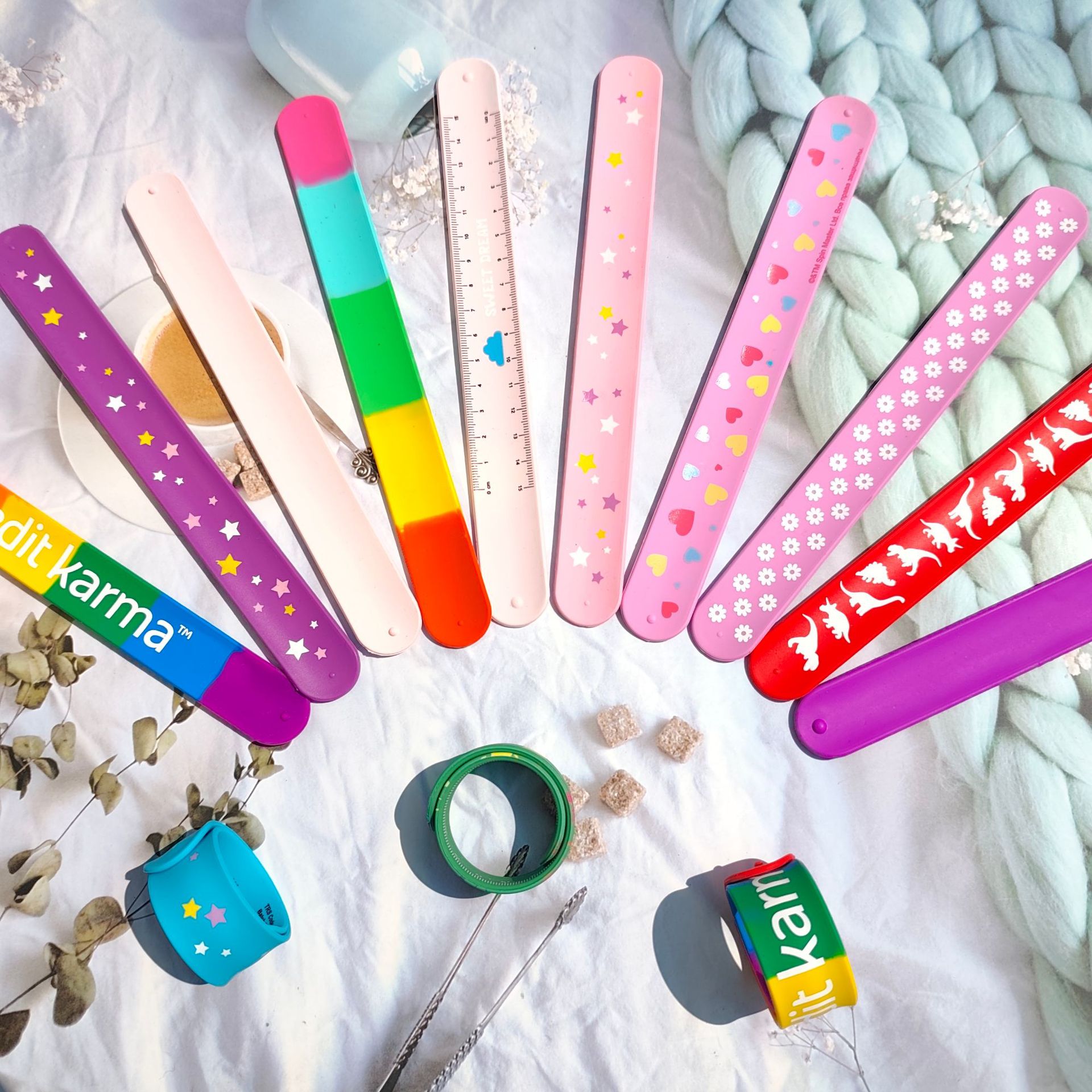 • 厂家直销 硅胶啪啪圈印刷logo 橡胶啪啪手腕带儿童卷尺拍拍手腕带