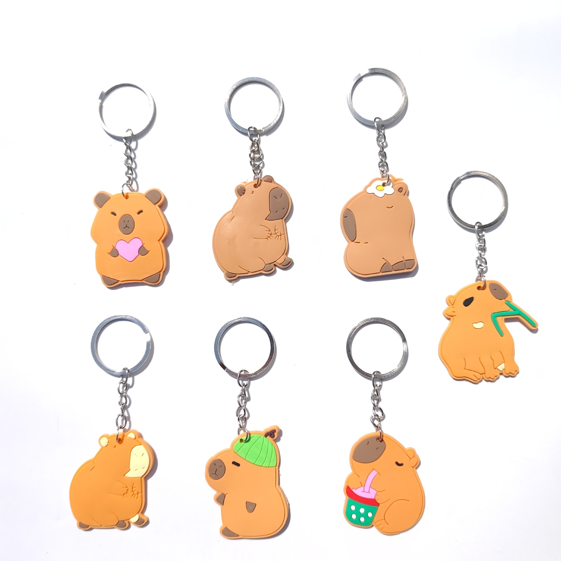 • 卡皮巴拉钥匙扣创意卡通可爱河豚搞怪表情侣背包挂件批发PVC软胶