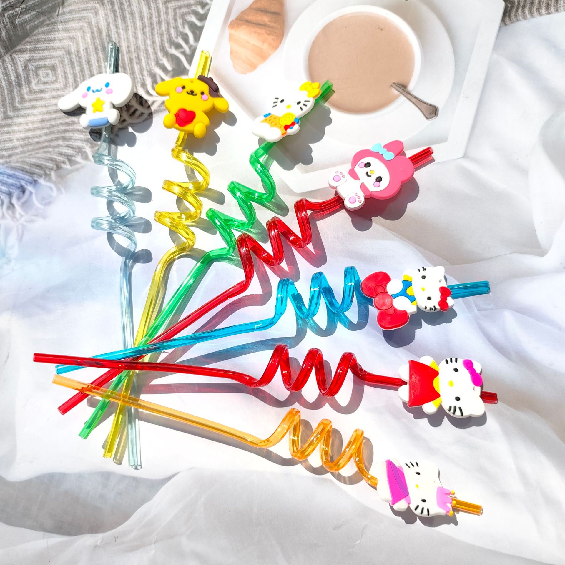 • 三丽鸥系列卡通装饰吸管贴片可拆卸创意螺旋吸管派对适用工厂批发