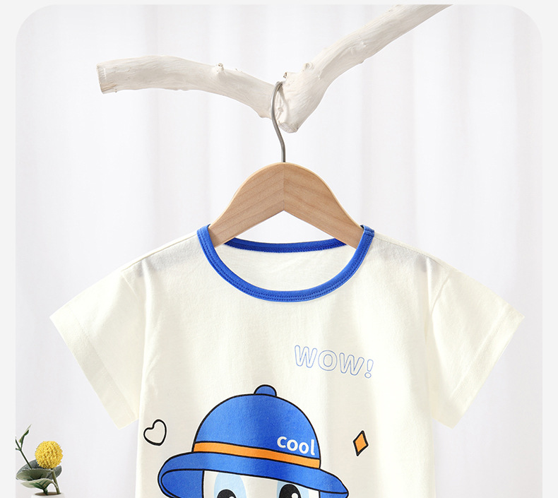 여름 아기 탑 쿨 얇은 아기 속옷 면화 어린이 티셔츠 소녀 반팔 소년 만화 여름 원피스스토어 가기