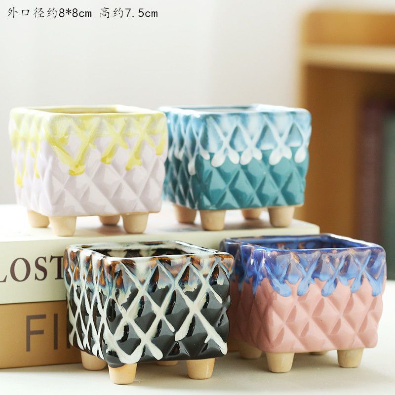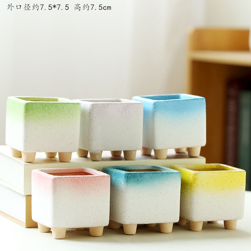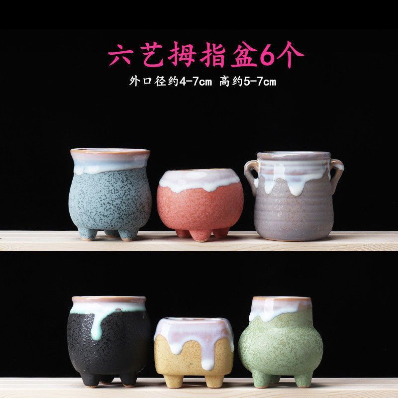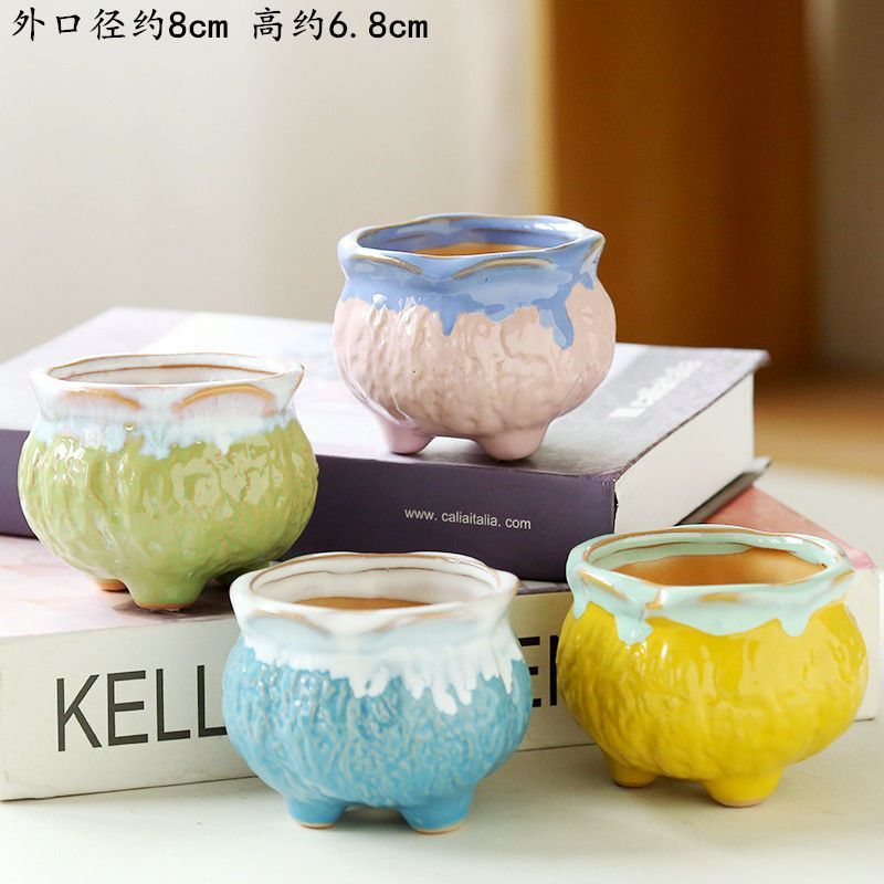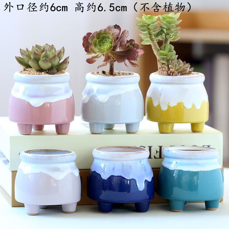 • 다리가 세 개인 유약을 바른 다채로운 화분 6개