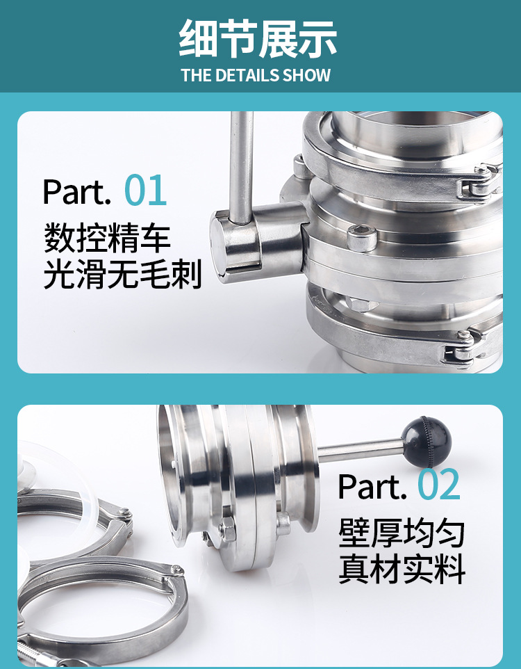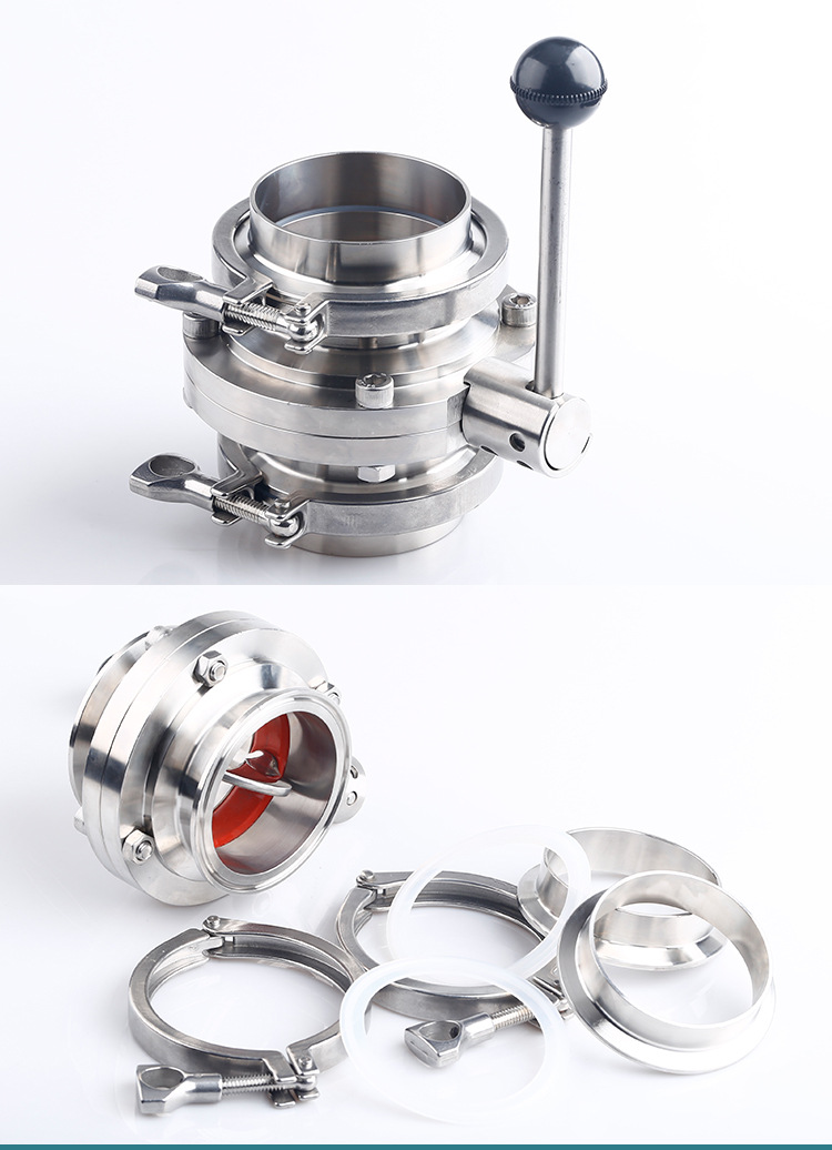 304 스테인리스 빠른 나비 밸브 수동 위생 클램프 유형 나비 밸브 척 빠른 나비 밸브 완전한 세트 38 51