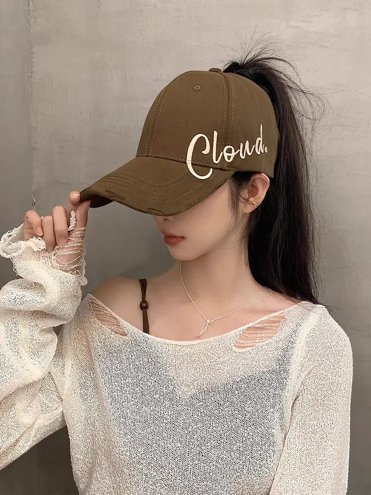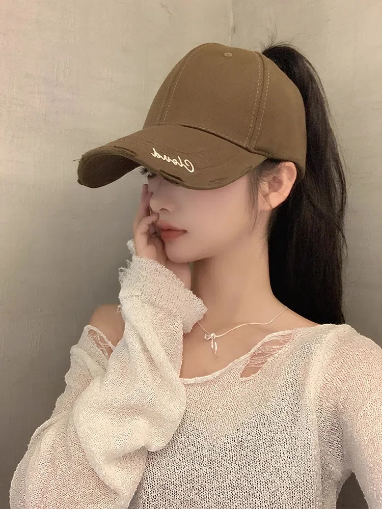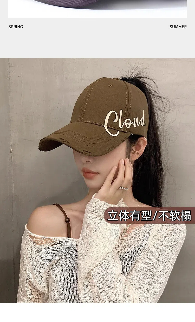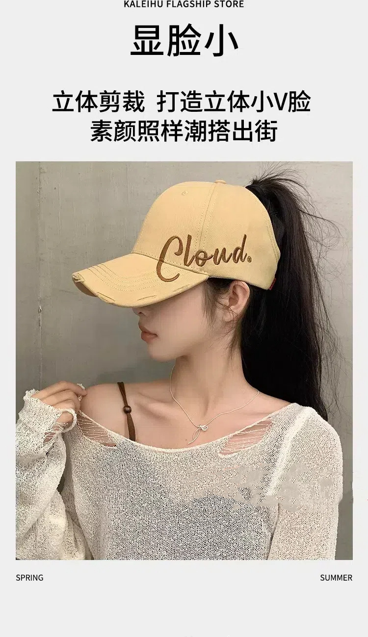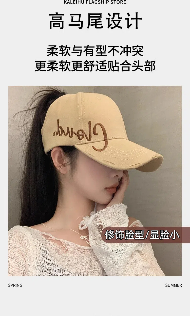 높은 포니 테일 야구 여자 여름 달리기 스포츠 빈 탑 오리 혀 모자 얼굴 작은 차양 넓은 처마 큰 머리 둘레