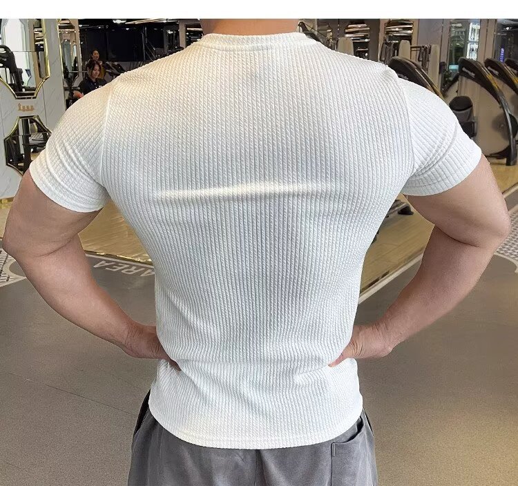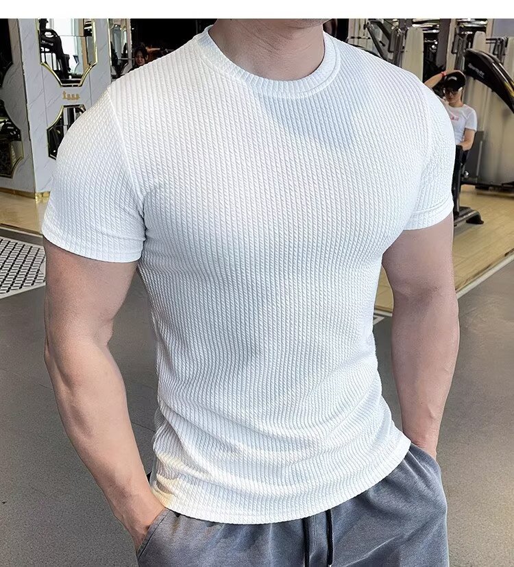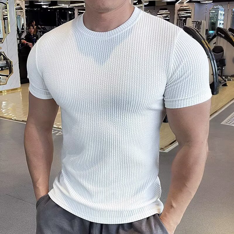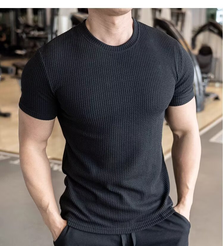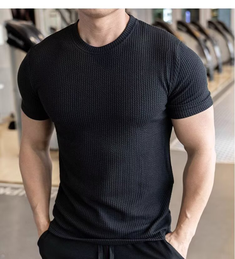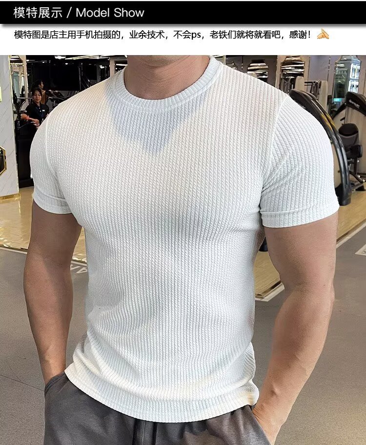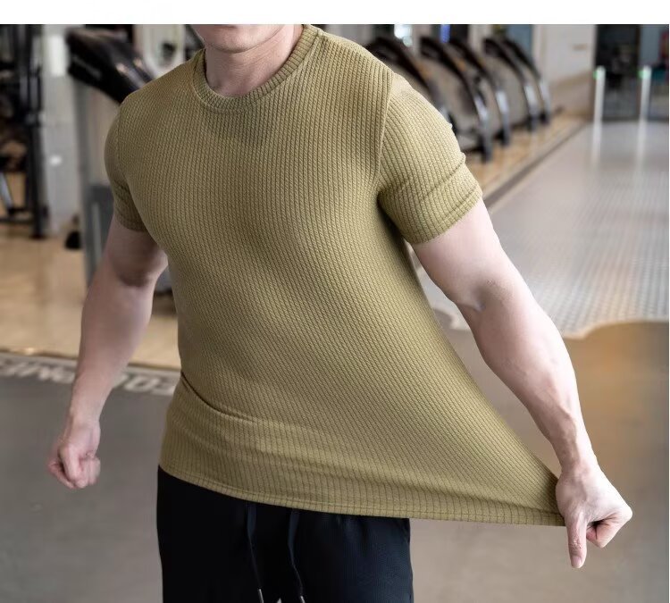 소원 아마존 유럽과 미국의 국경 대외 무역 남자 여름 스포츠 피트니스 레저 솔리드 컬러 라운드 넥 짧은 소매 남성스토어 가기