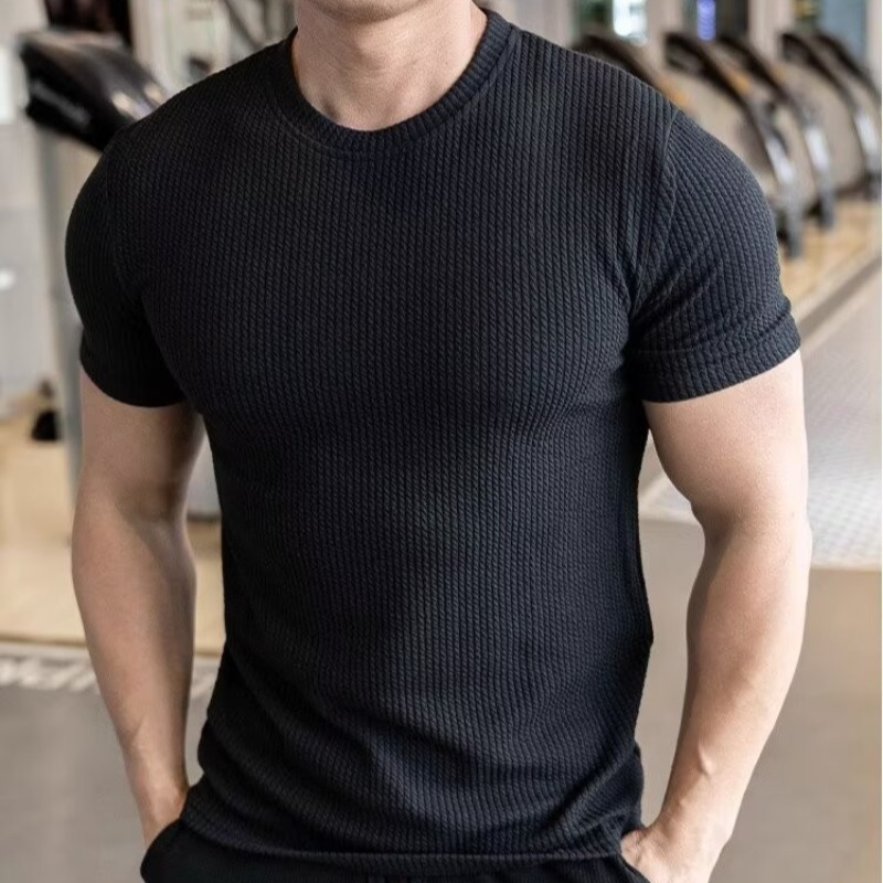 소원 아마존 유럽과 미국의 국경 대외 무역 남자 여름 스포츠 피트니스 레저 솔리드 컬러 라운드 넥 짧은 소매 남성