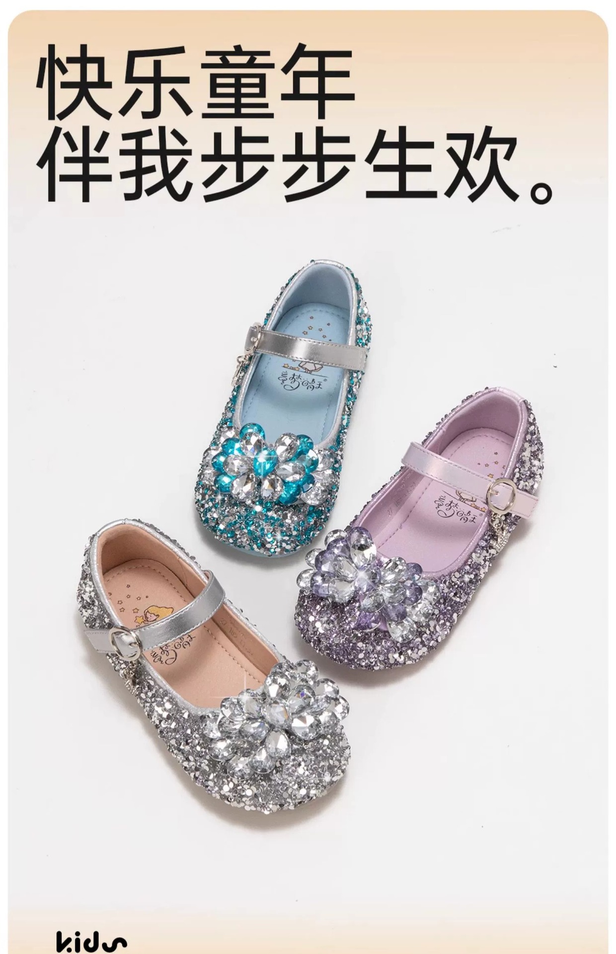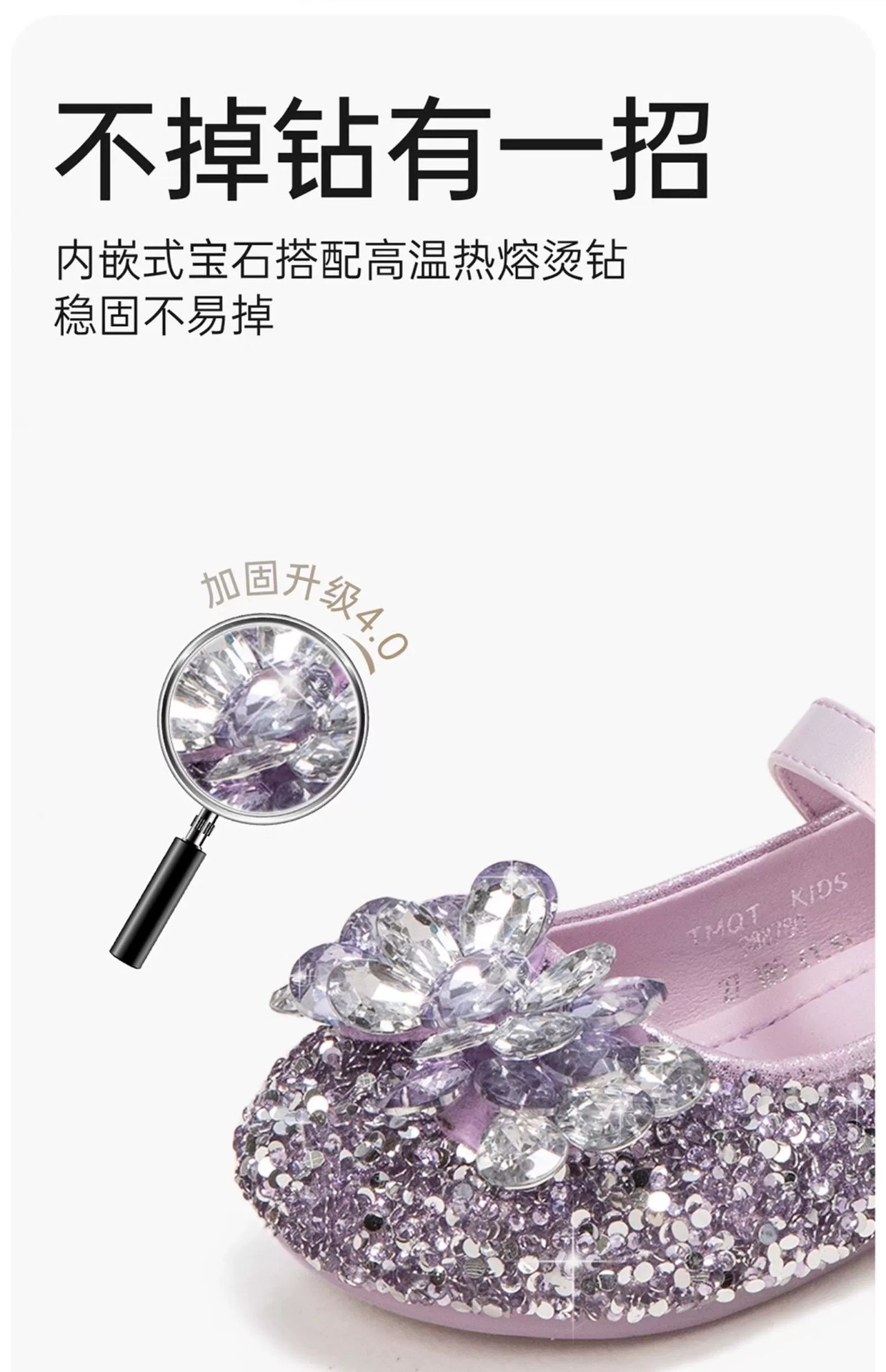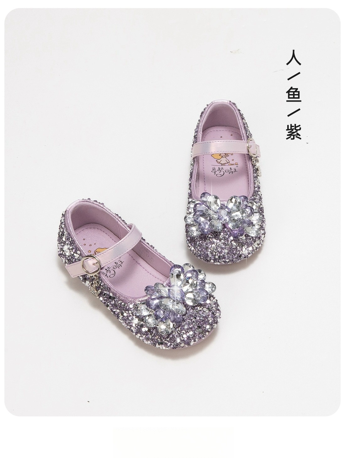 소녀 크리스탈 신발 2025 새로운 어린이 공주 신발 봄과 가을 여성의 아기 부드러운 밑창 가죽 신발 라인스톤 보라색 봄스토어 가기