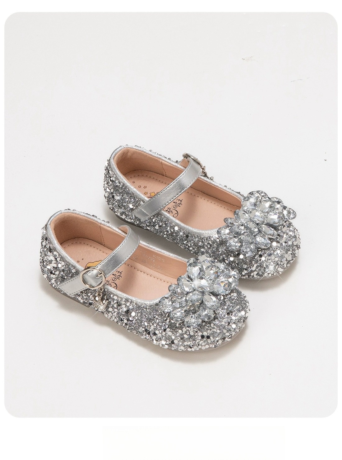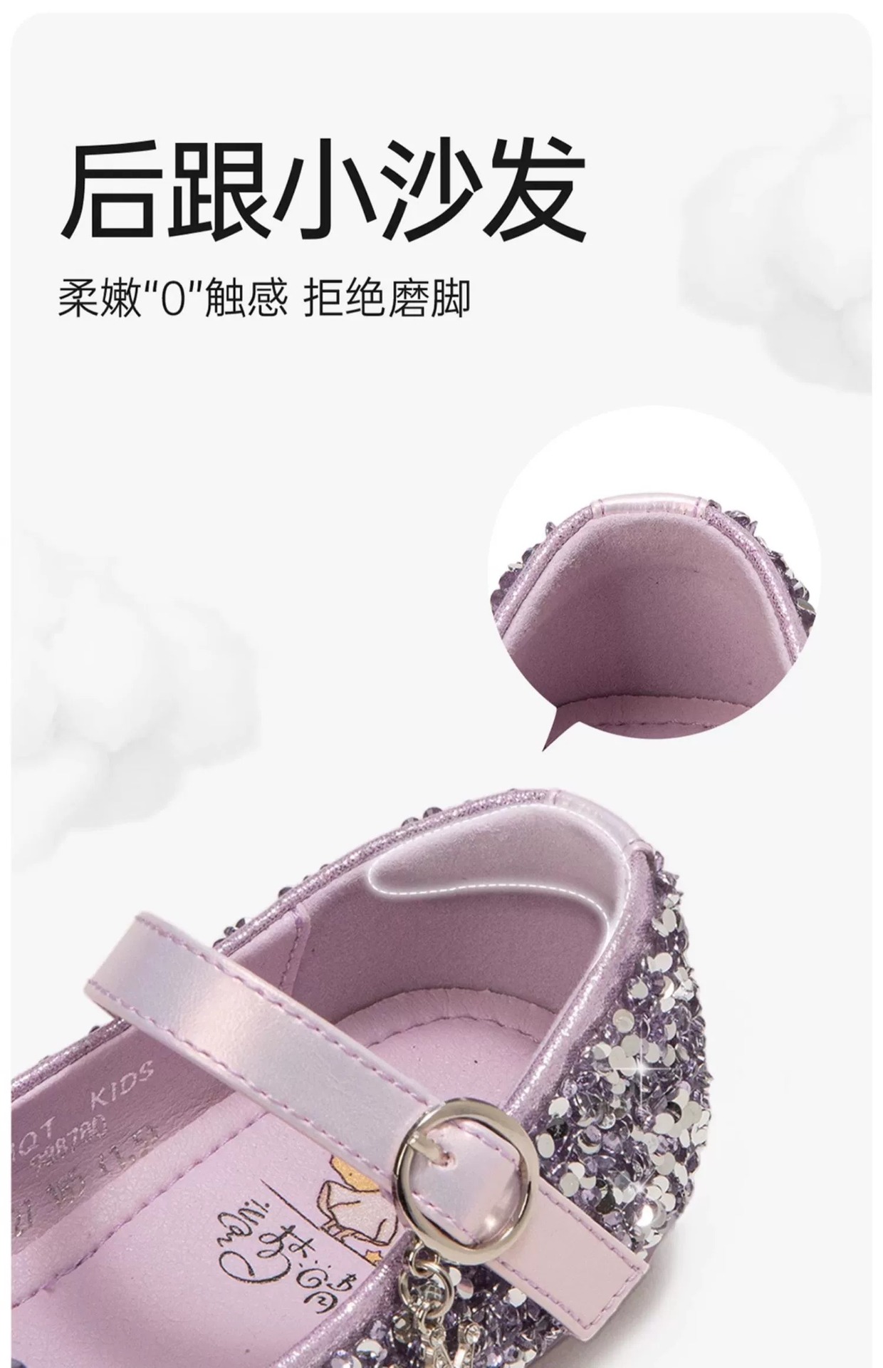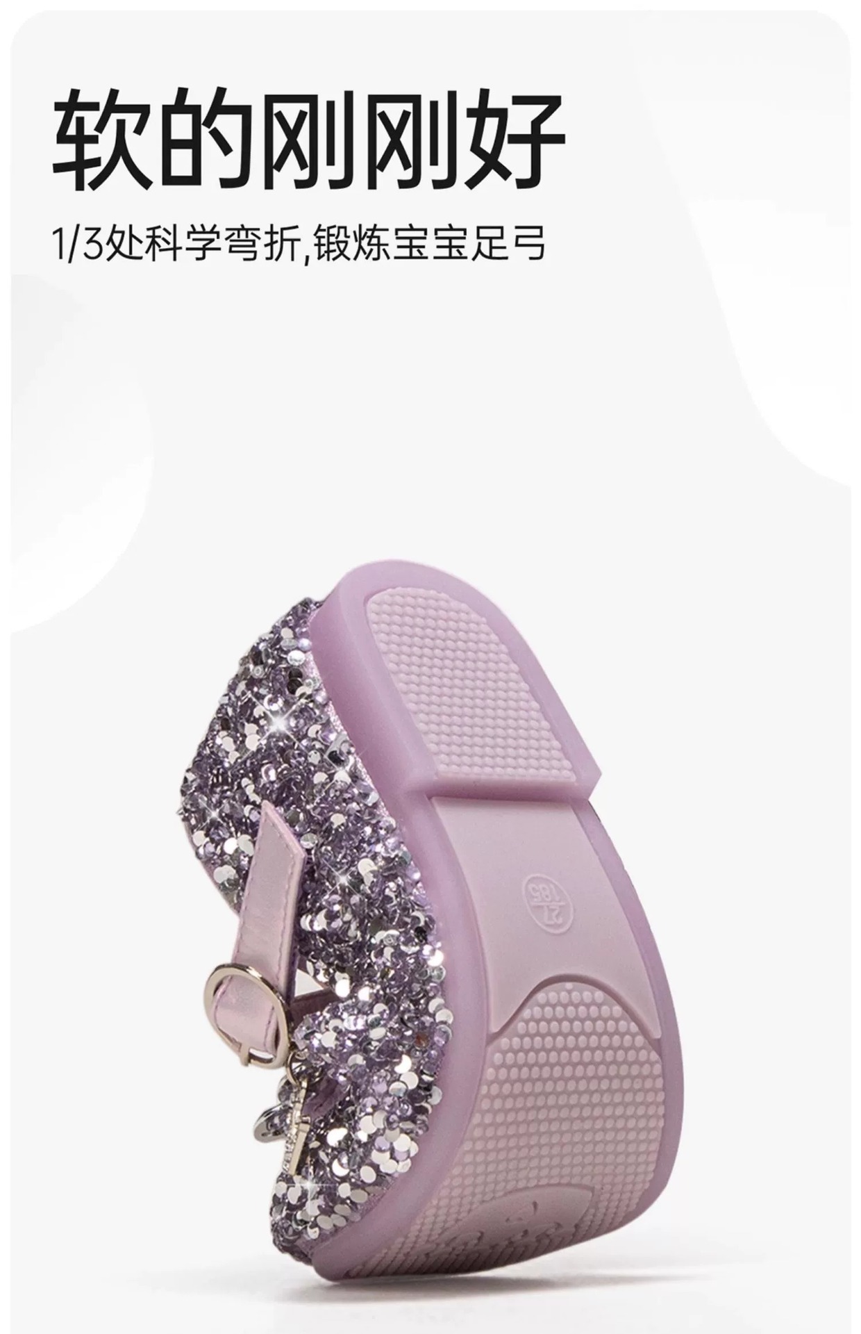 소녀 크리스탈 신발 2025 새로운 어린이 공주 신발 봄과 가을 여성의 아기 부드러운 밑창 가죽 신발 라인스톤 보라색 봄스토어 가기