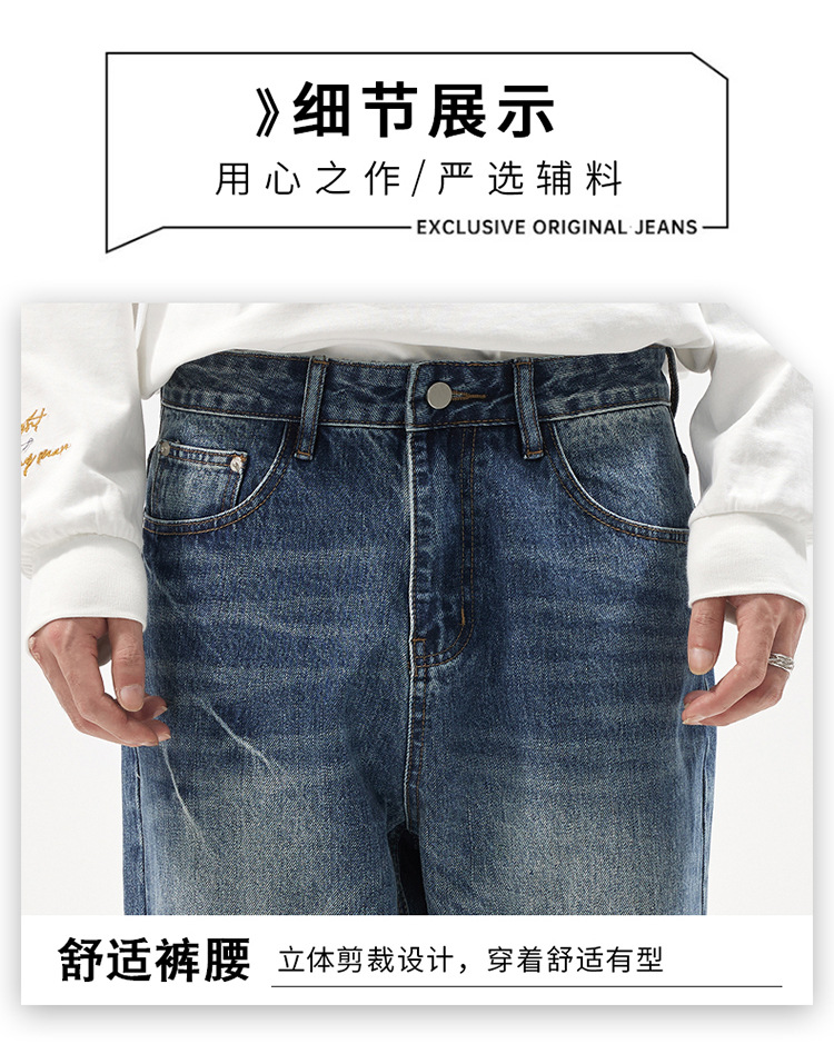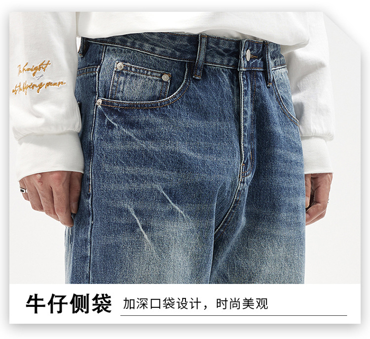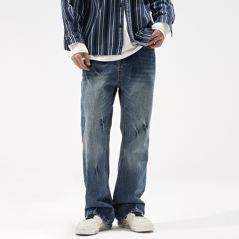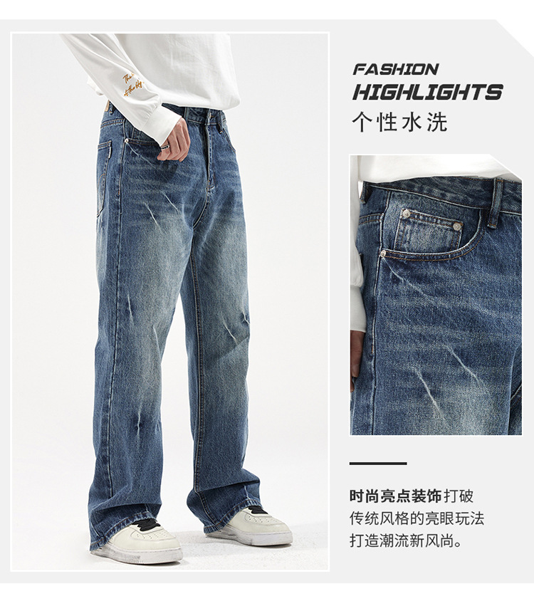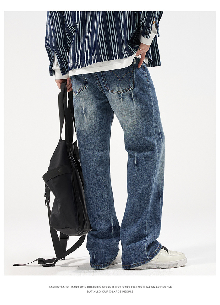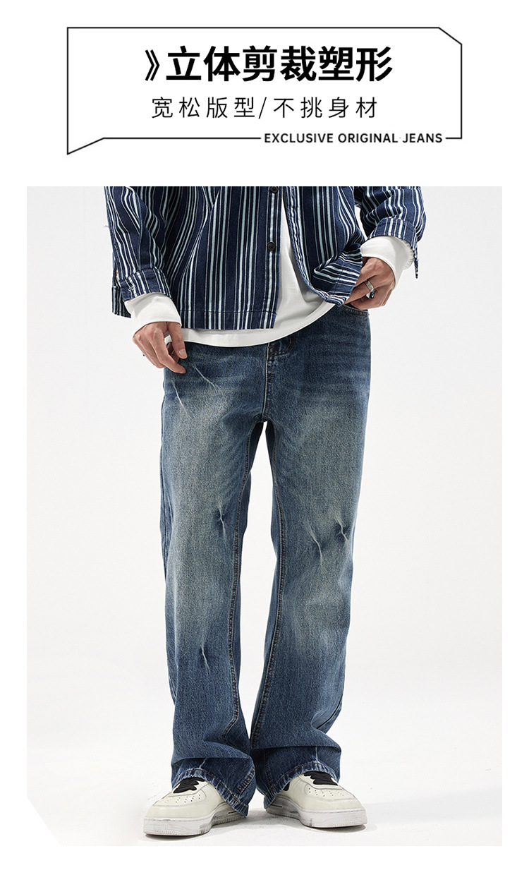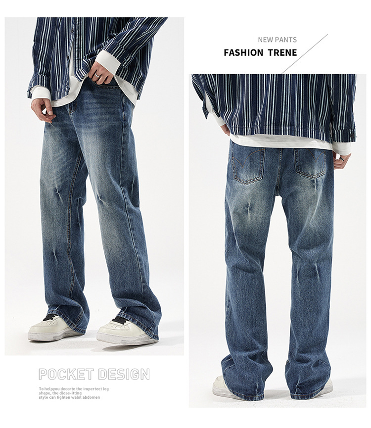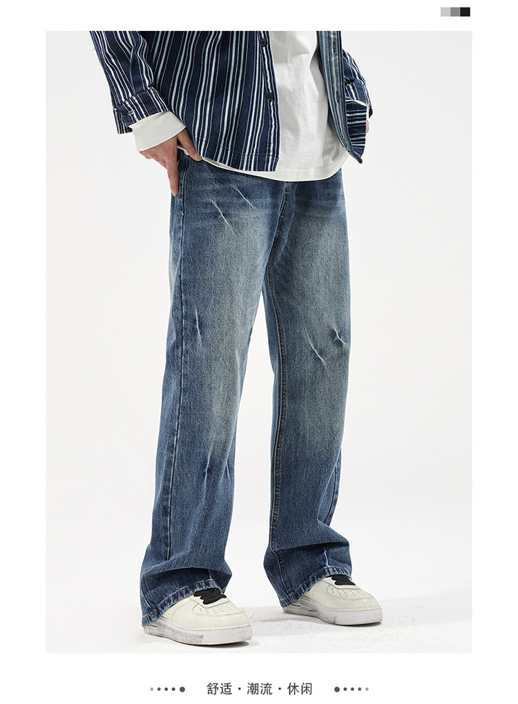 아메리칸 스타일 캐주얼 트렌디 브랜드 하이 엔드 와이드 레그 청바지 남성 스트레이트 레그 루즈 딥 팬츠 잘 생긴 키 큰 바지스토어 가기