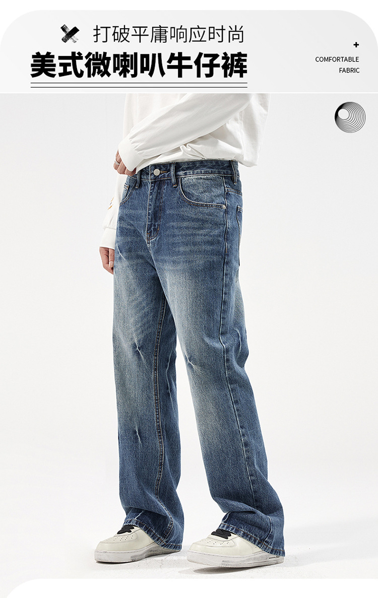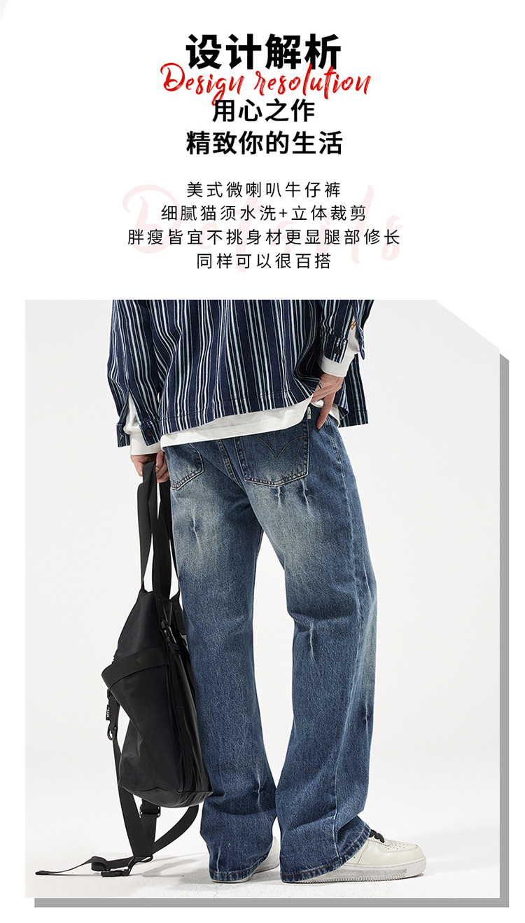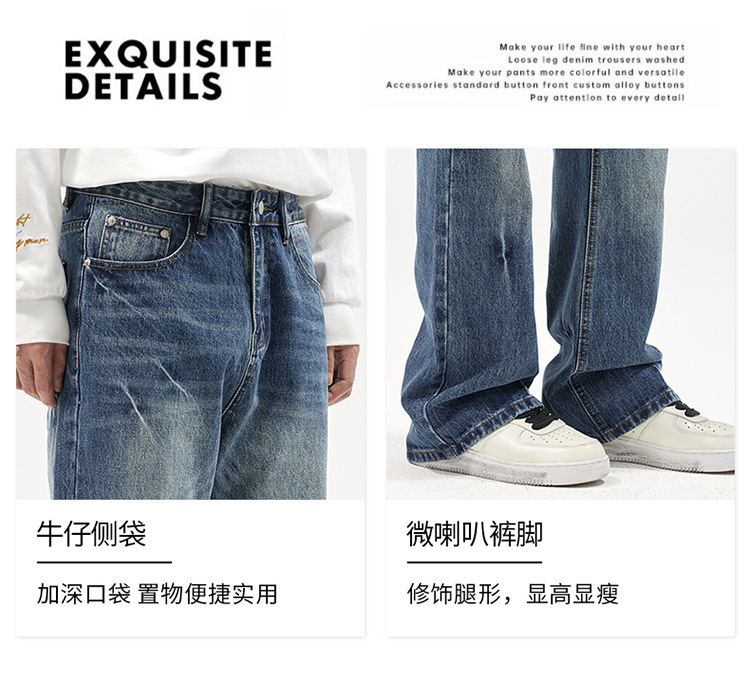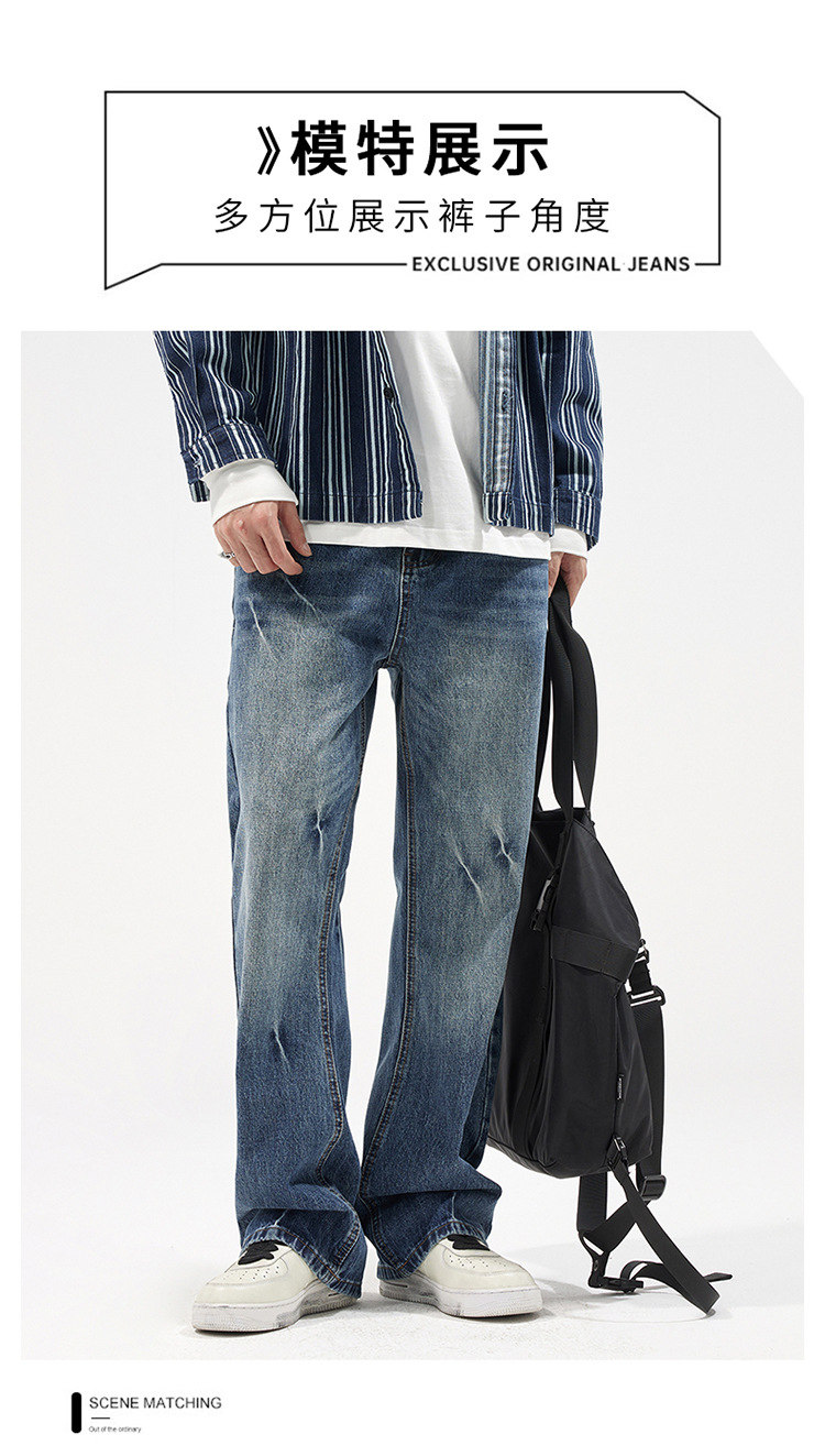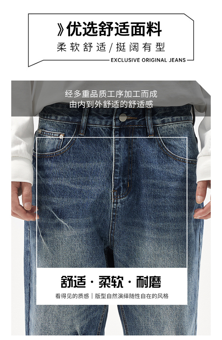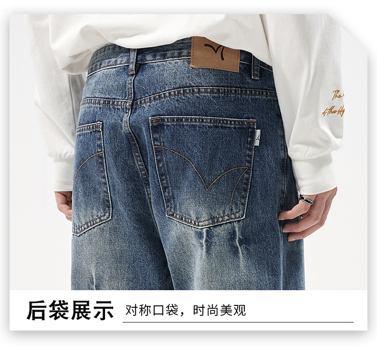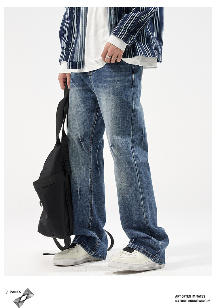 아메리칸 스타일 캐주얼 트렌디 브랜드 하이 엔드 와이드 레그 청바지 남성 스트레이트 레그 루즈 딥 팬츠 잘 생긴 키 큰 바지스토어 가기