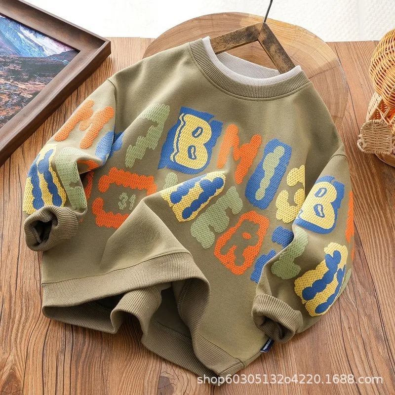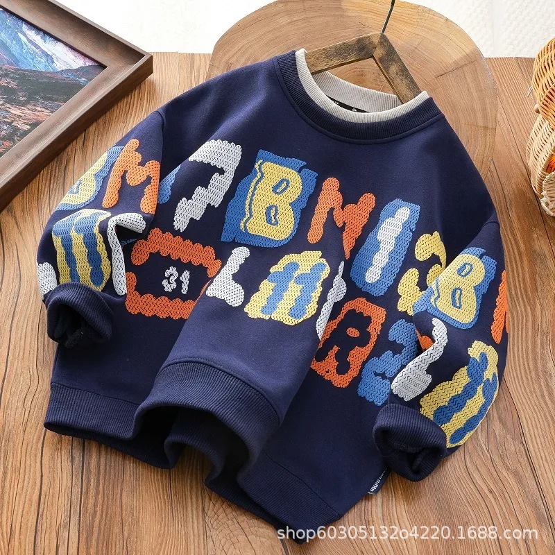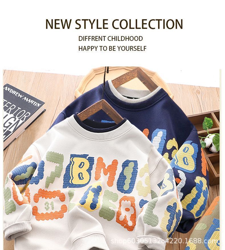 아동복 소년의 스웨터 봄과 가을 외형 어린이 색상 매칭 크루 넥 톱 소년의 긴 소매 얇은베이스 셔츠 폭발