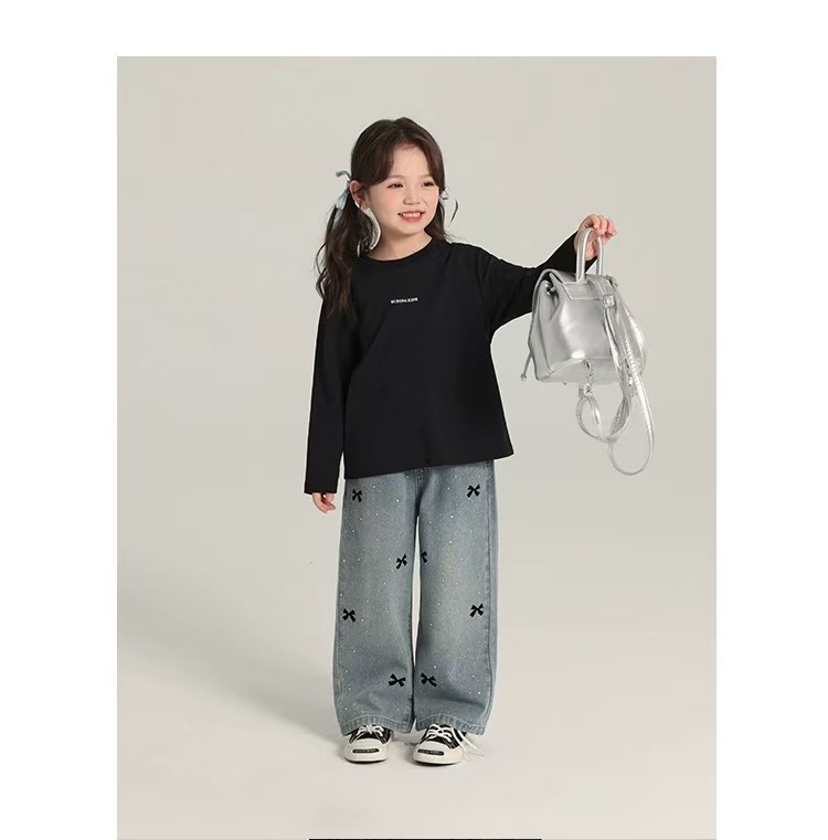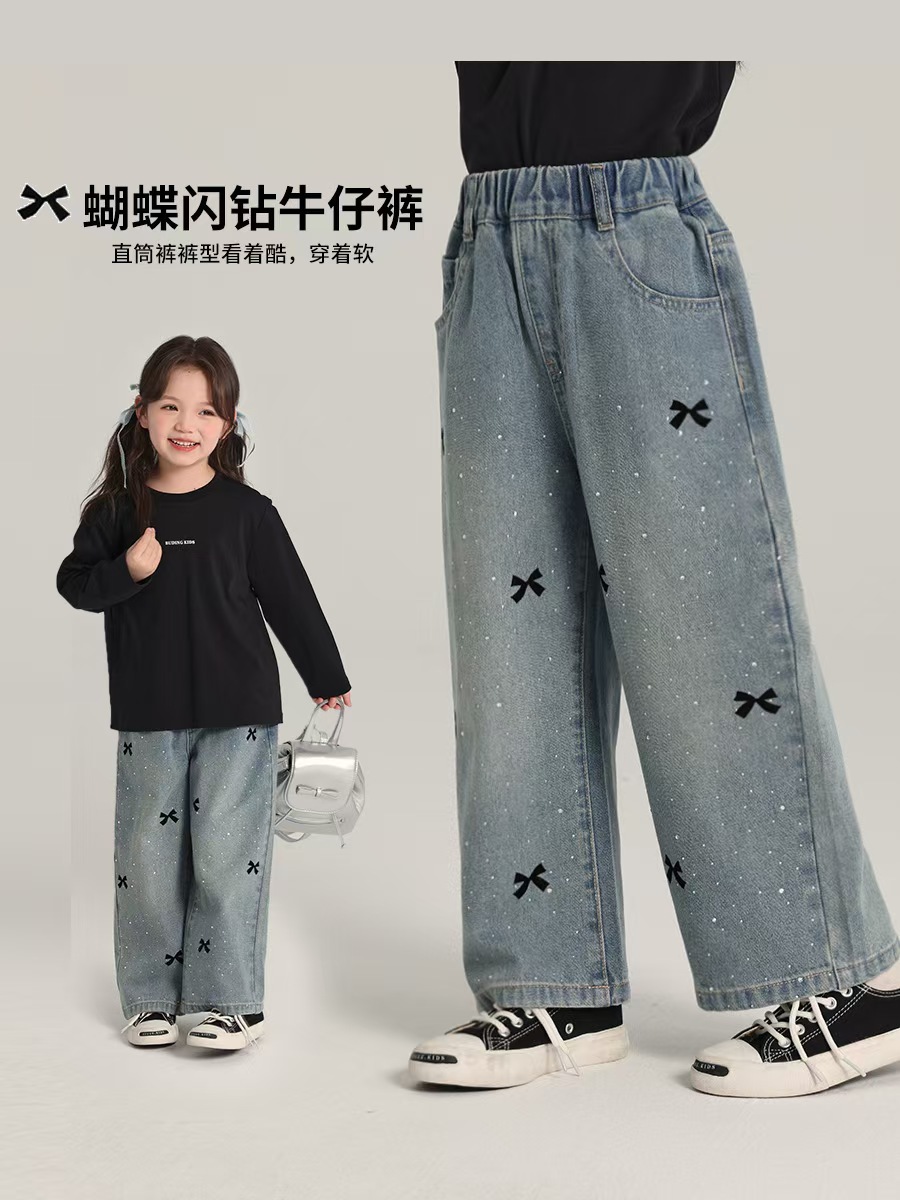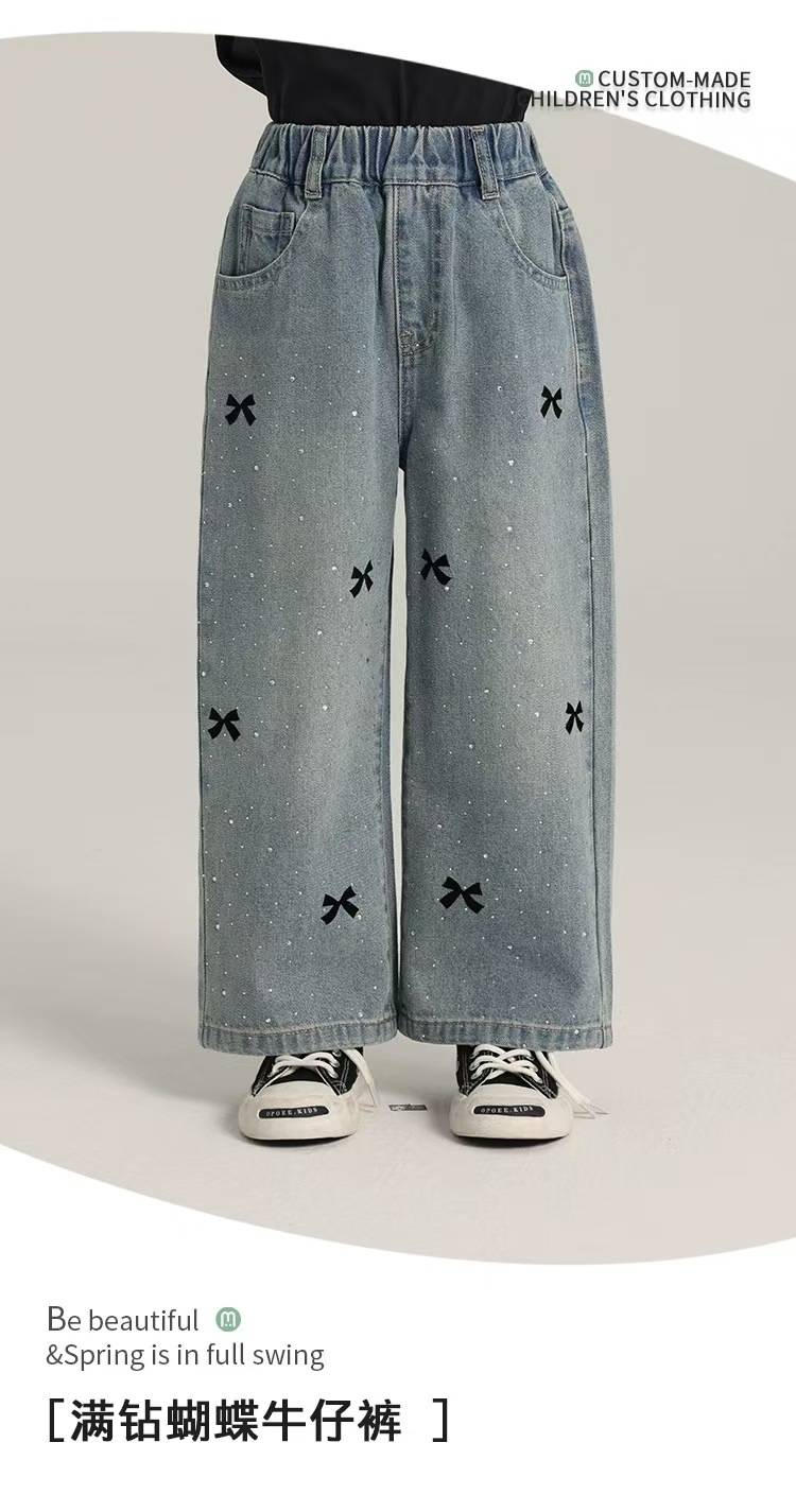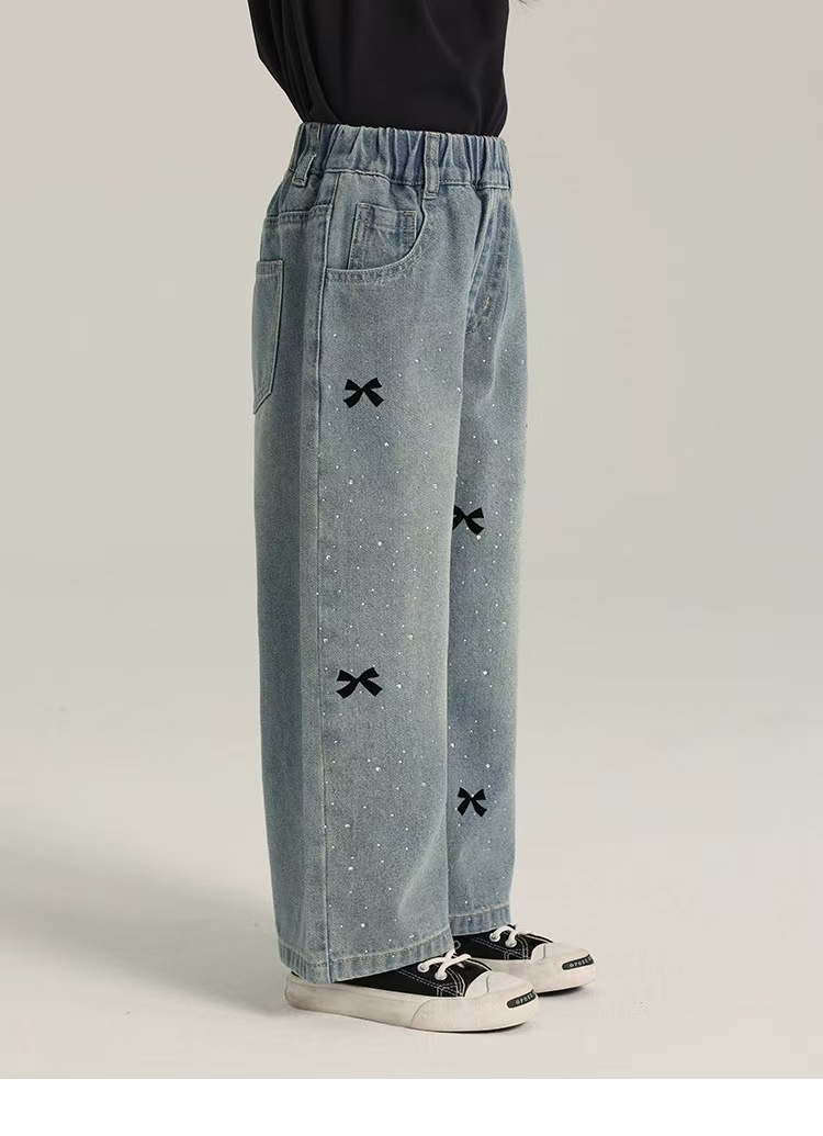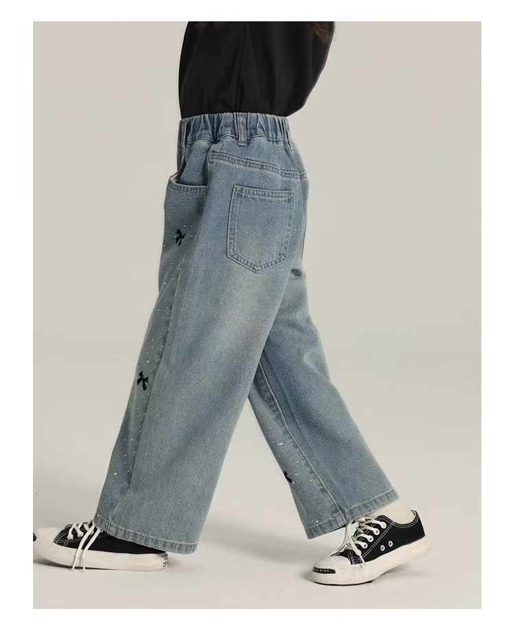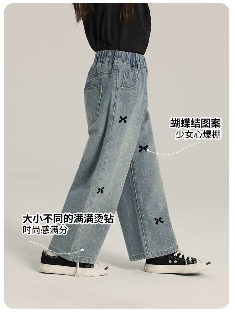 여아용 바지 여름 얇은 여학생 느슨한 스트레이트 찢어진 넓은 다리 바지 초등학생 여름 어린이 청바지스토어 가기