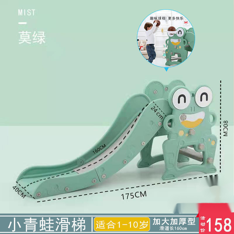 • 작은 개구리 슬라이드 [바구니와 무료 농구 포함] Mo Green