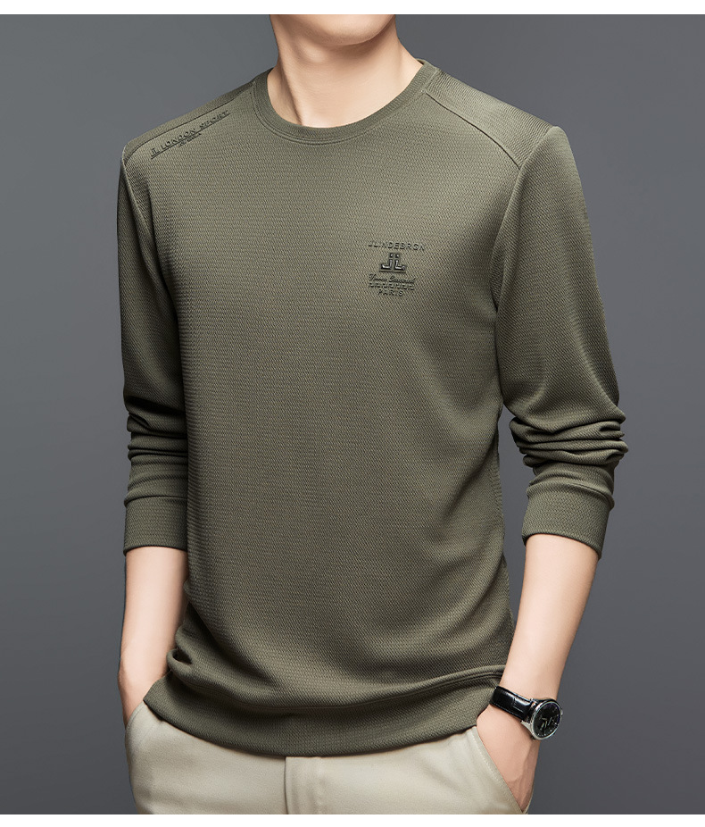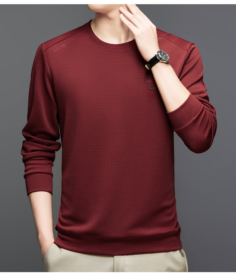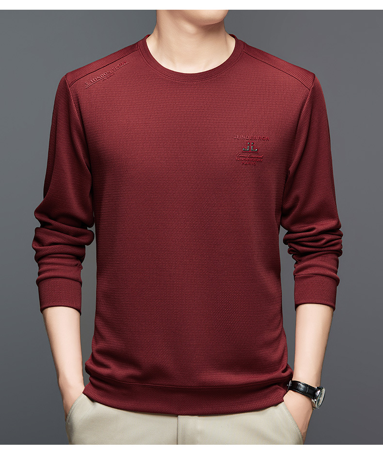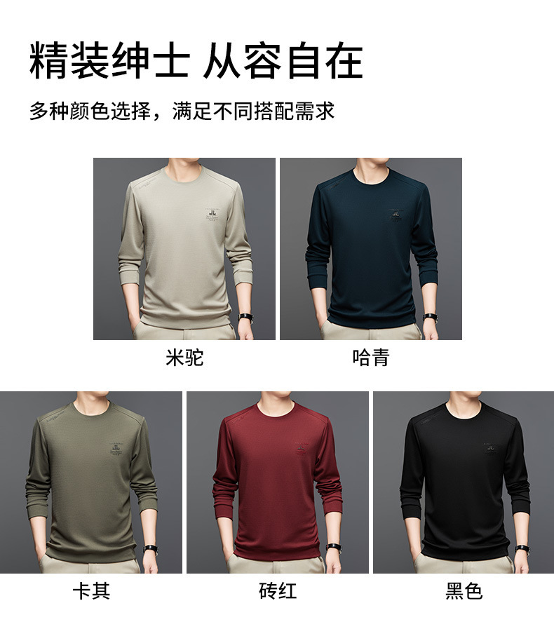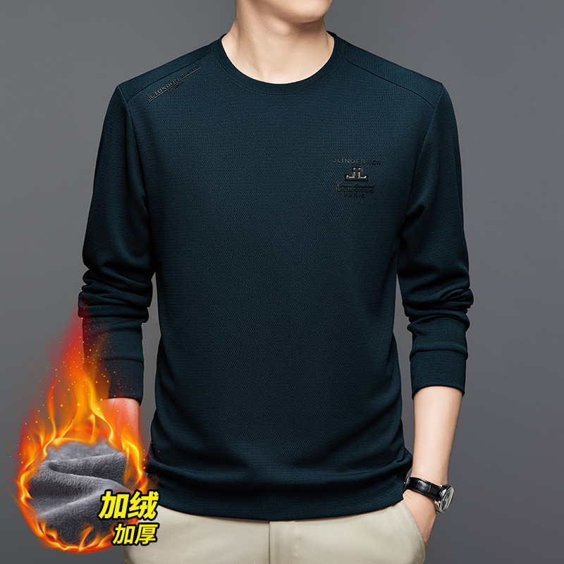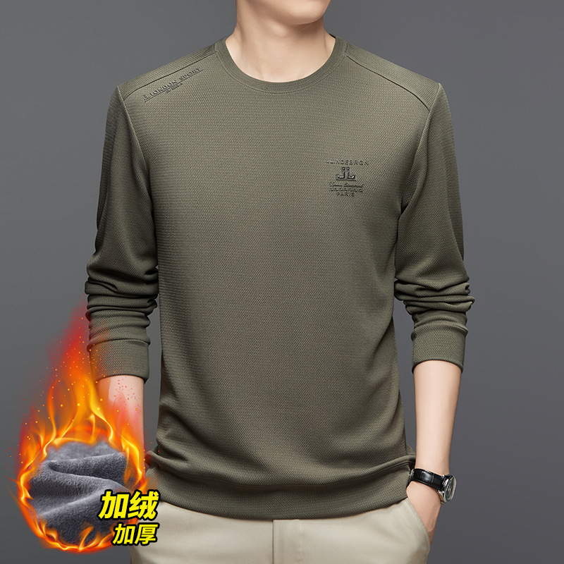 2024 가을과 겨울 새로운 기모 스웨터 남자의 가벼운 성숙한 캐주얼 라운드 넥 인쇄 따뜻한 긴 소매 티셔츠베이스 셔츠 남성스토어 가기