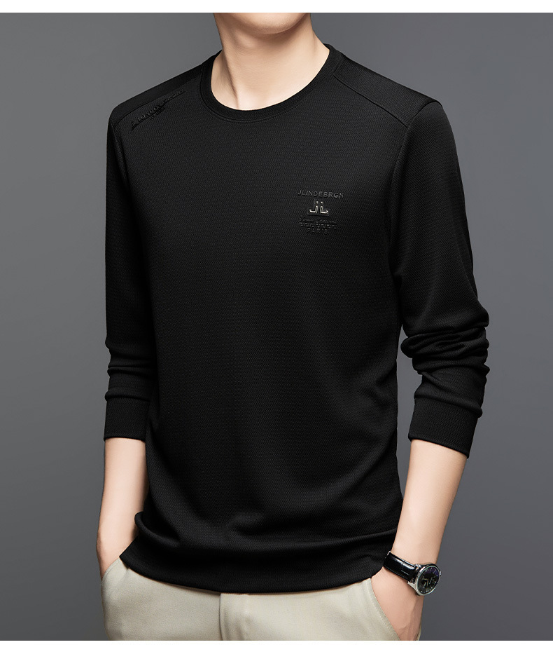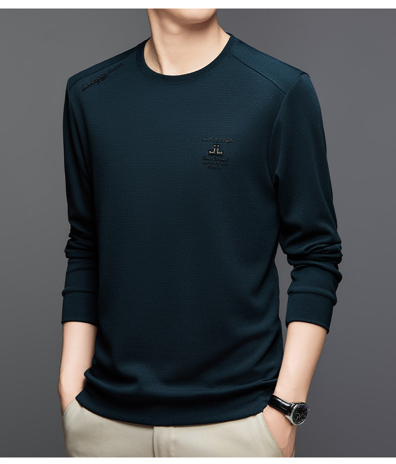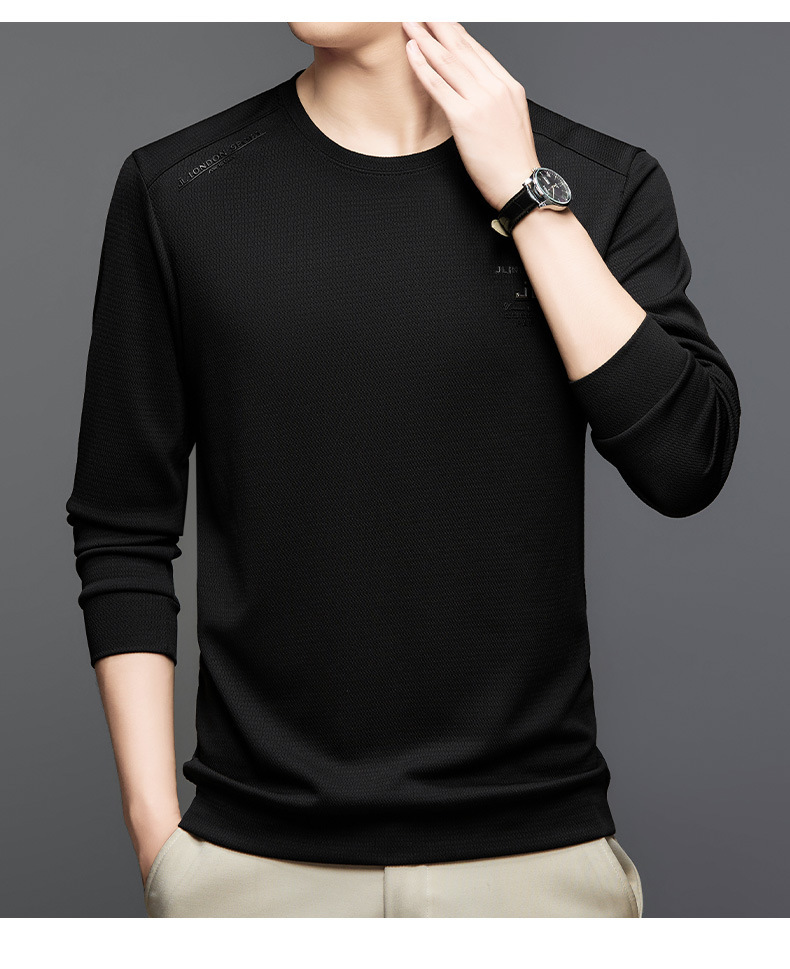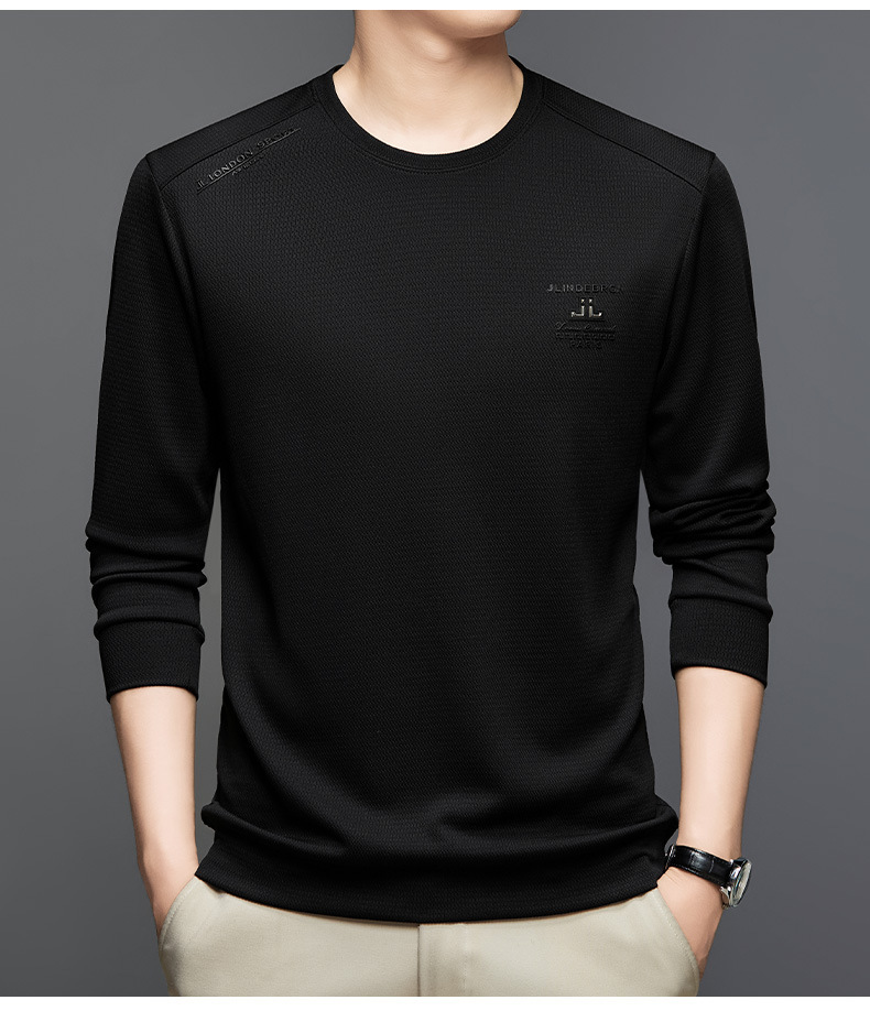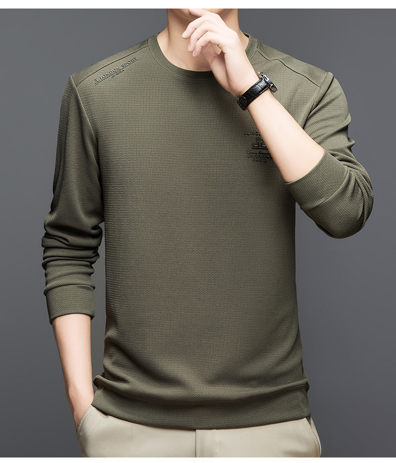 2024 가을과 겨울 새로운 기모 스웨터 남자의 가벼운 성숙한 캐주얼 라운드 넥 인쇄 따뜻한 긴 소매 티셔츠베이스 셔츠 남성스토어 가기