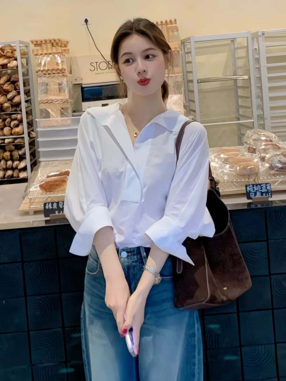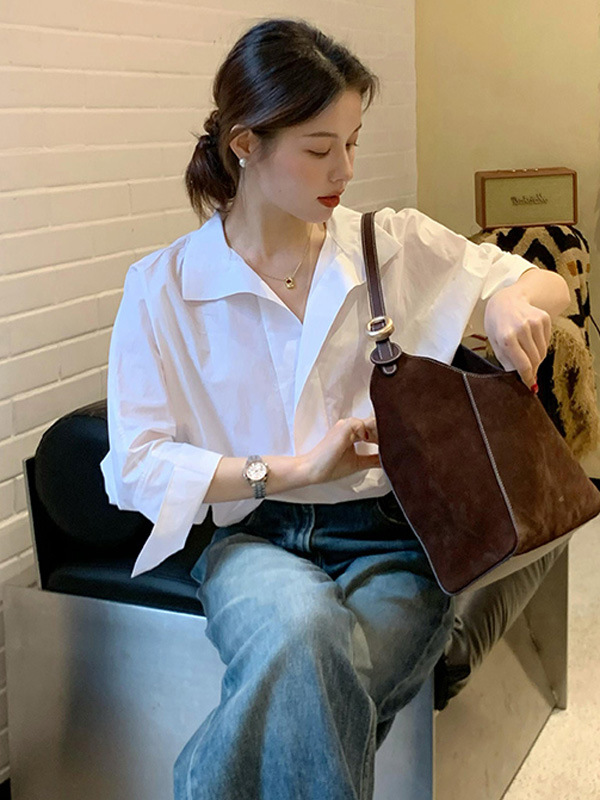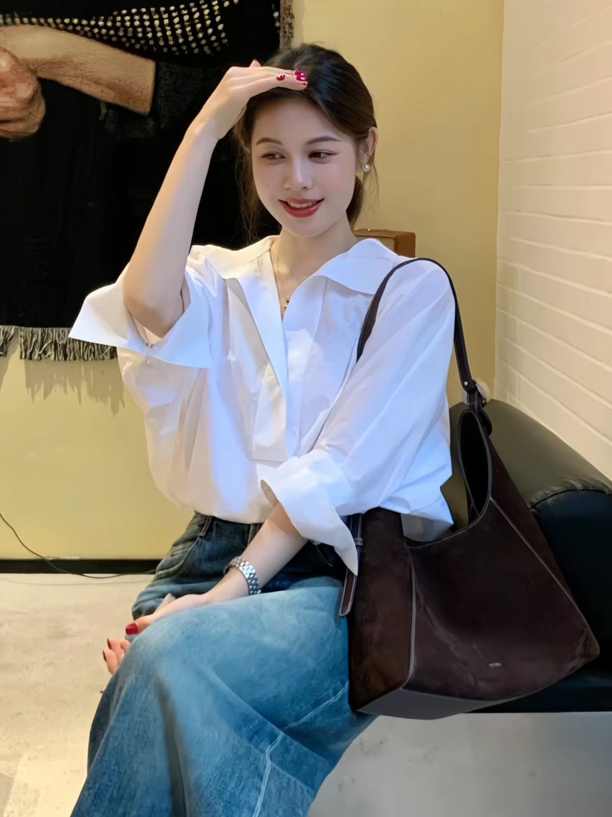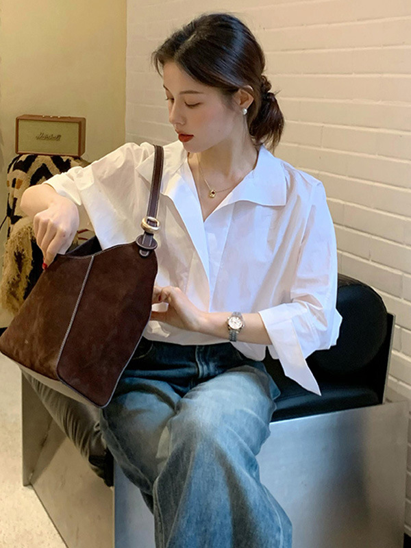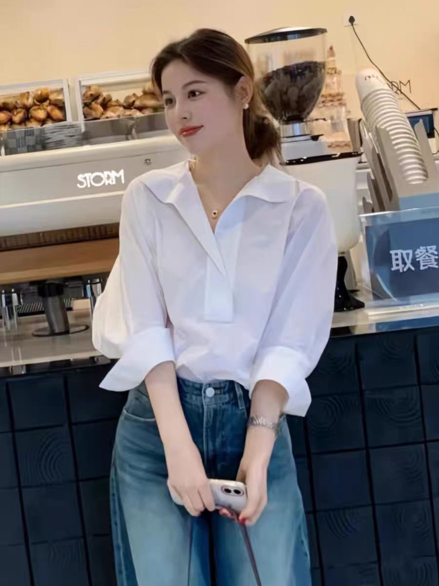 봄 새로운 하이 엔드 라이트 럭셔리 에이지 감소 화이트 긴팔 셔츠 여자 2025 슈퍼 핫 틱 한국 탑스토어 가기