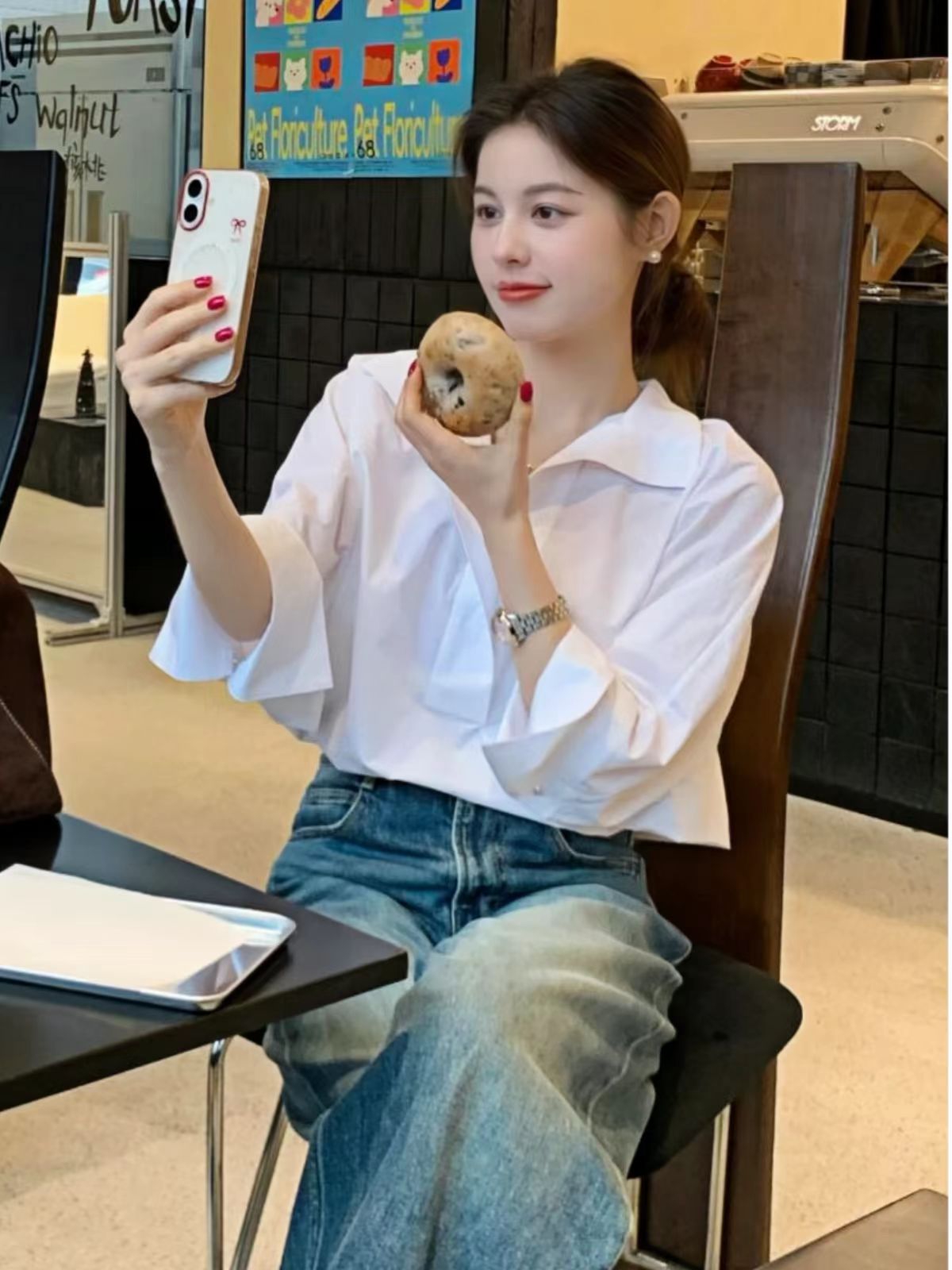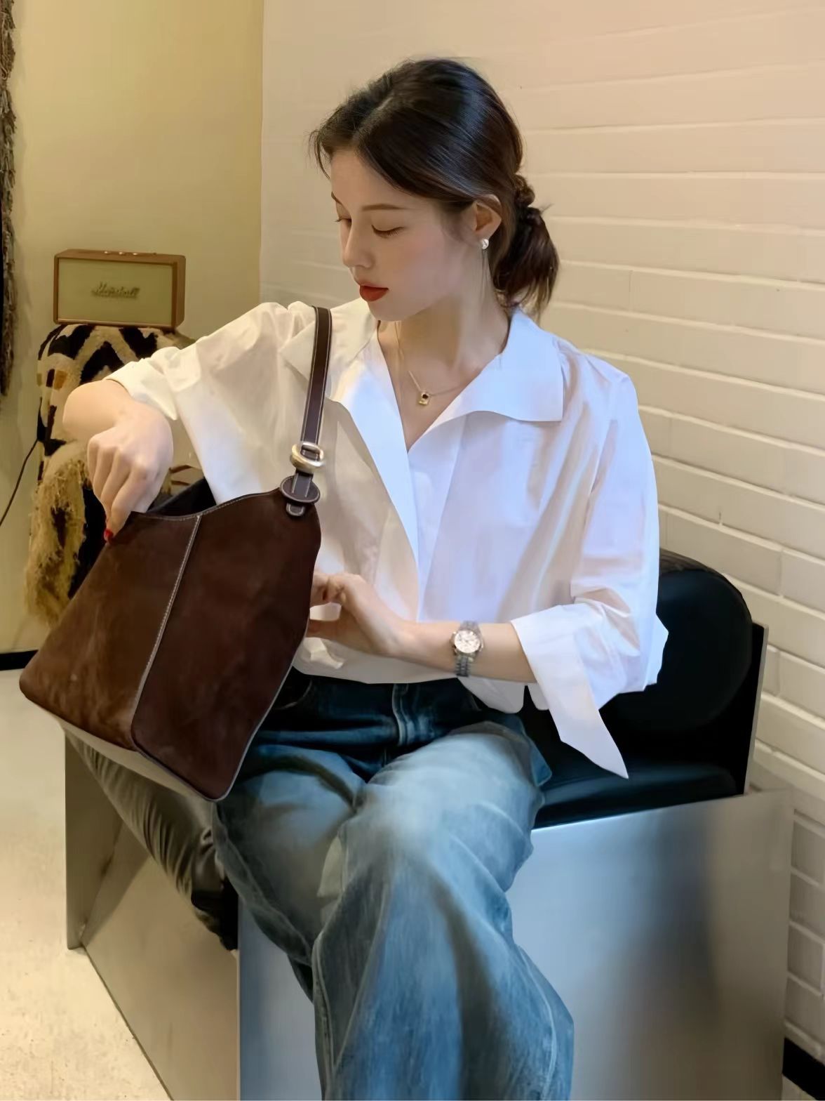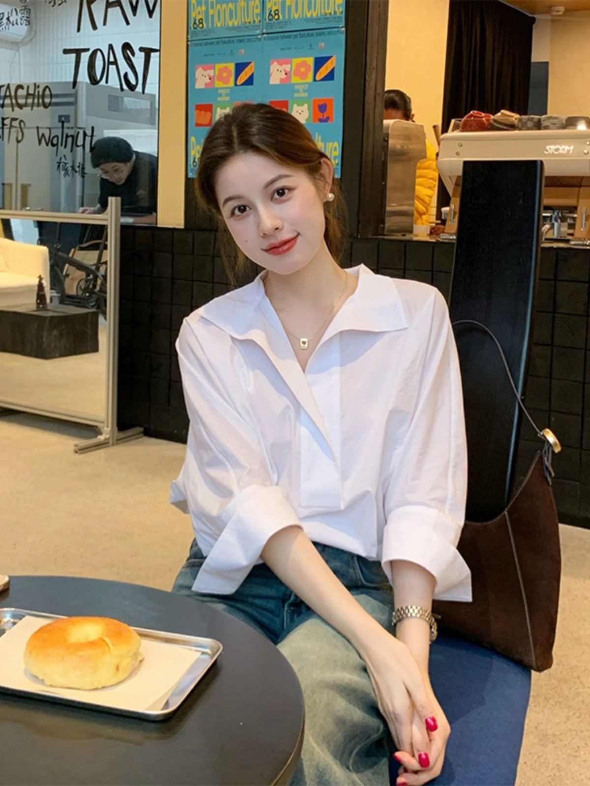 봄 새로운 하이 엔드 라이트 럭셔리 에이지 감소 화이트 긴팔 셔츠 여자 2025 슈퍼 핫 틱 한국 탑스토어 가기