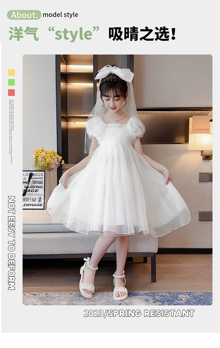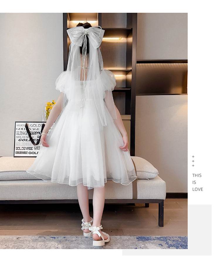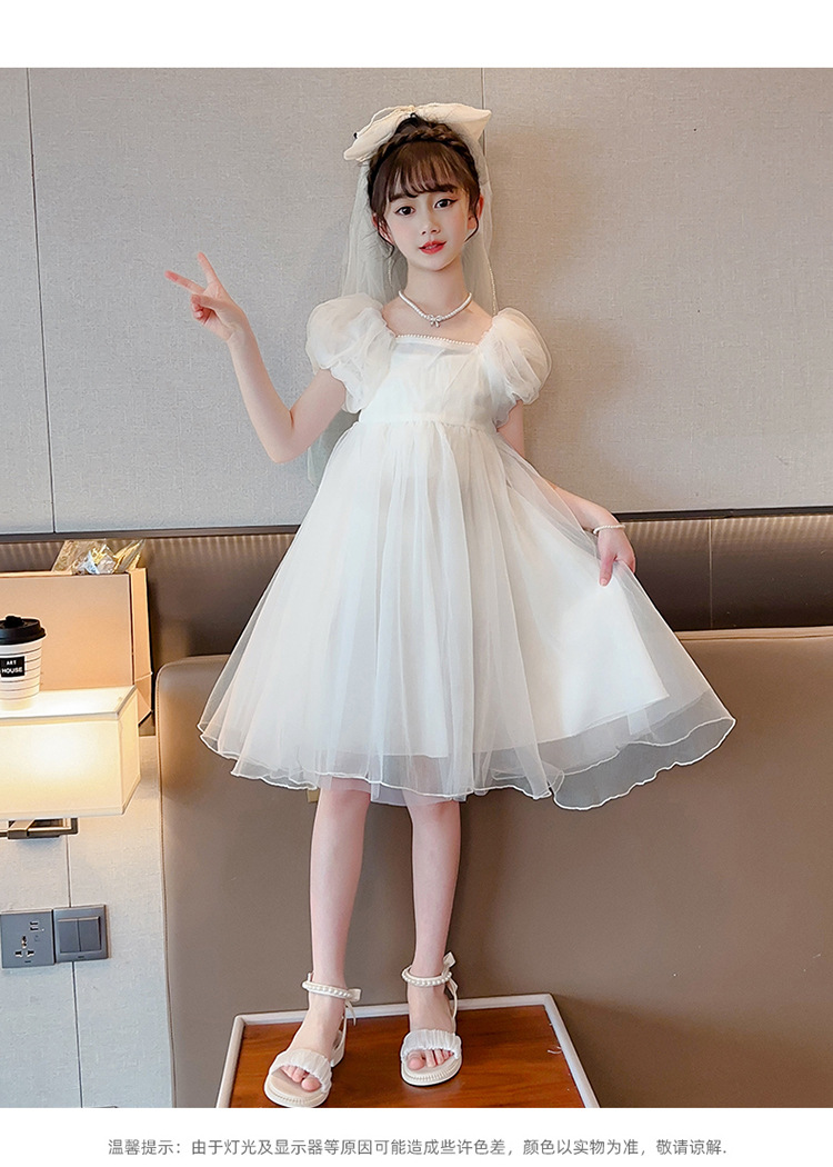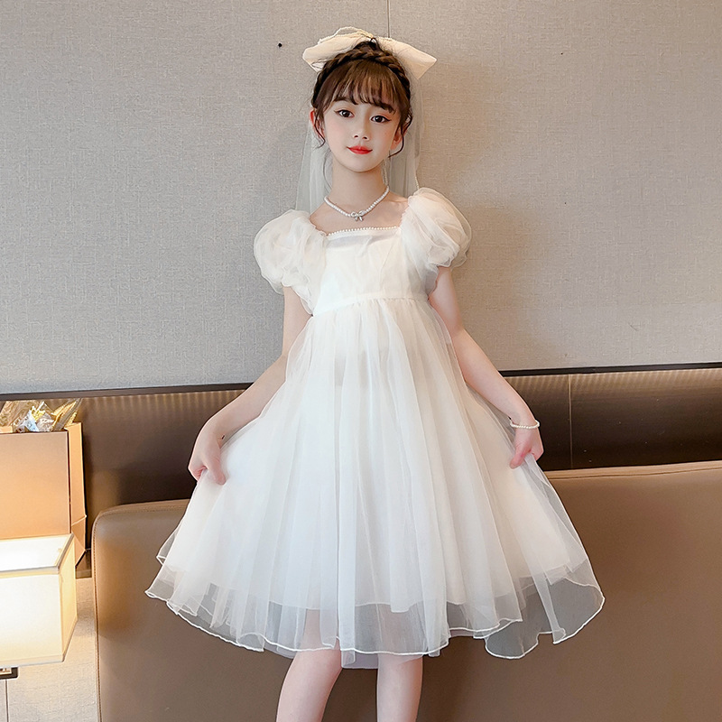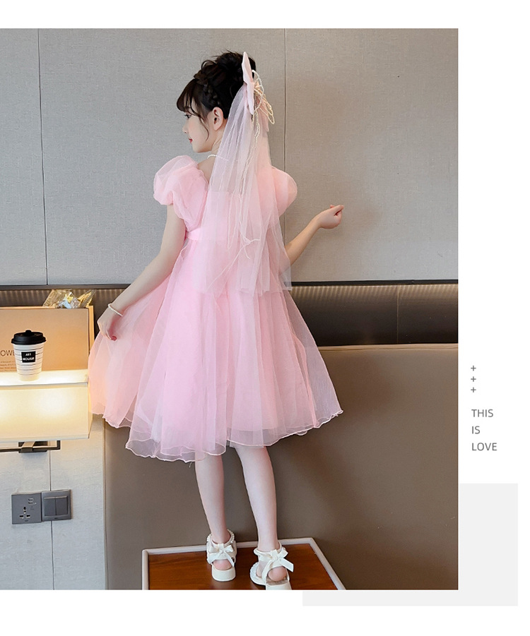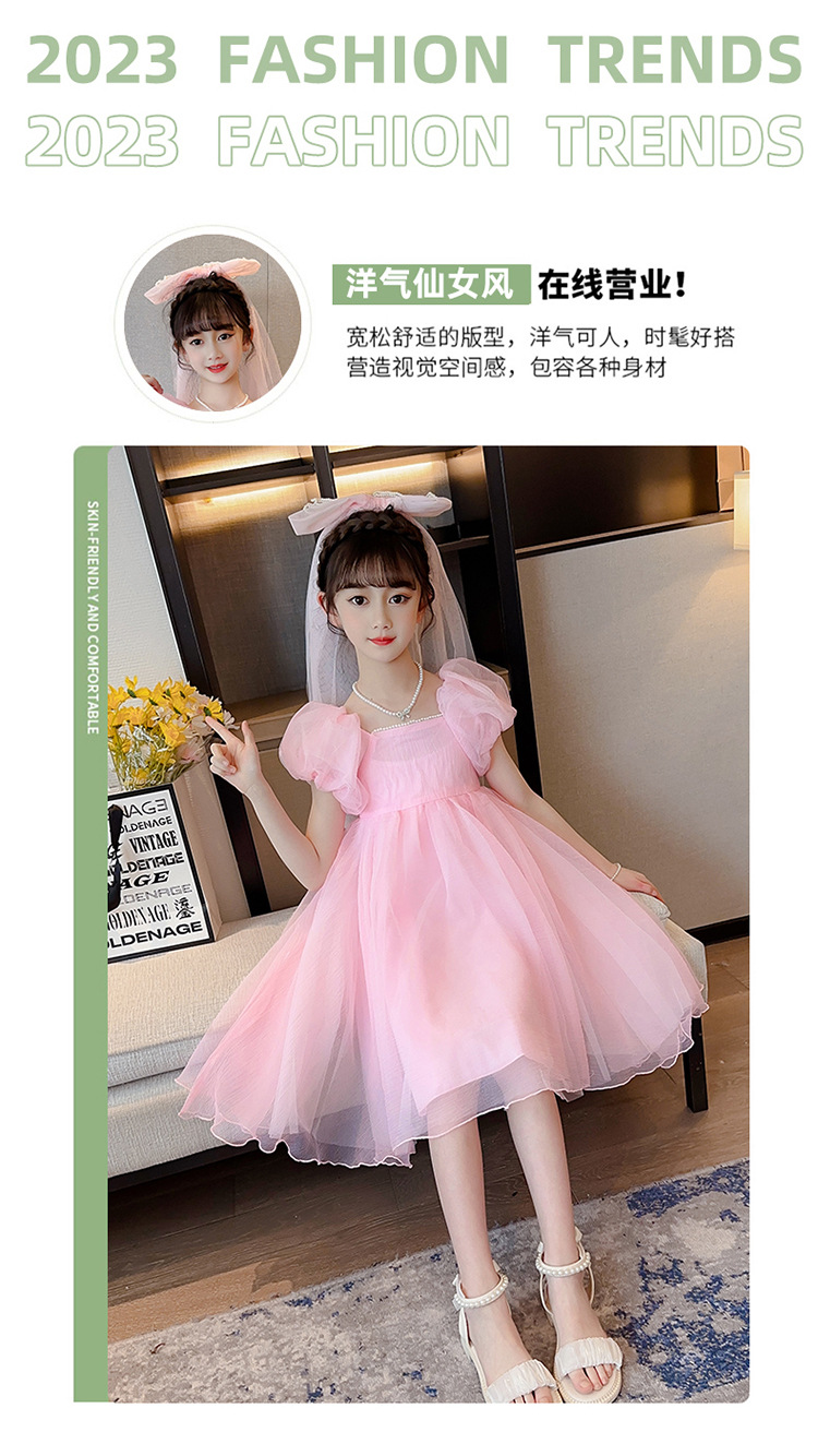 여자 원피스 여름 도매 2025 어린이 거품 소매 그물 빨간 공주 스커트 외국 스타일 소녀 메쉬 투투 스커트스토어 가기