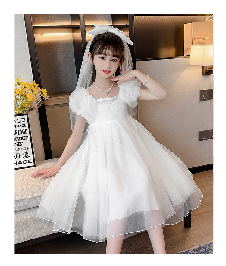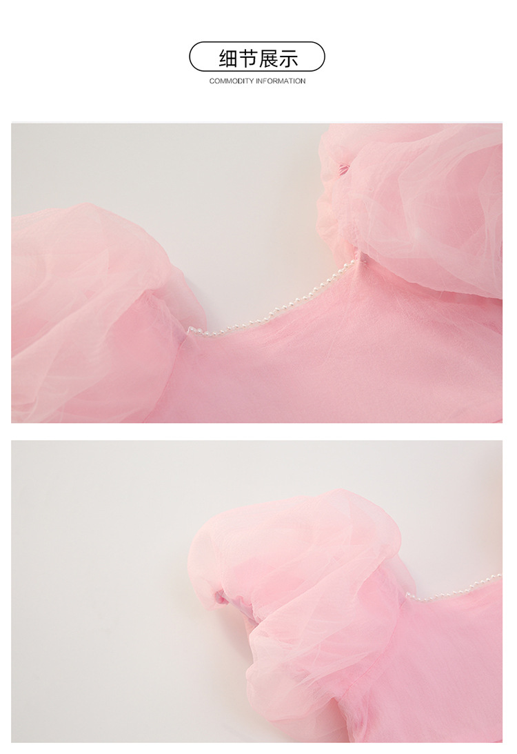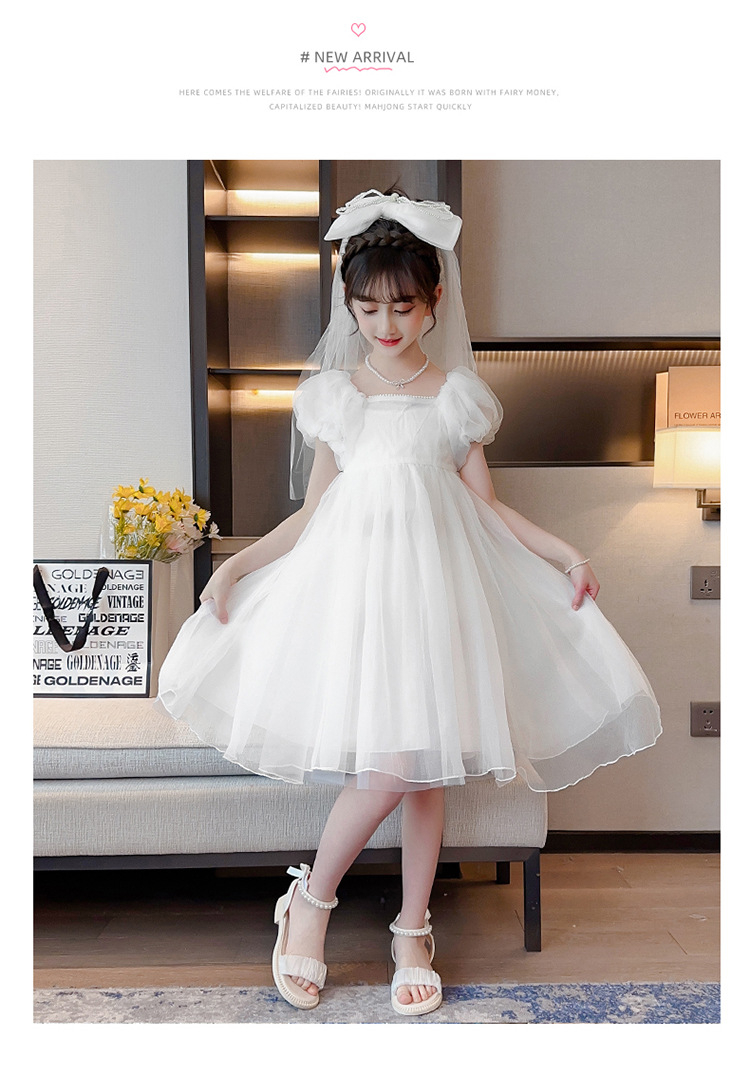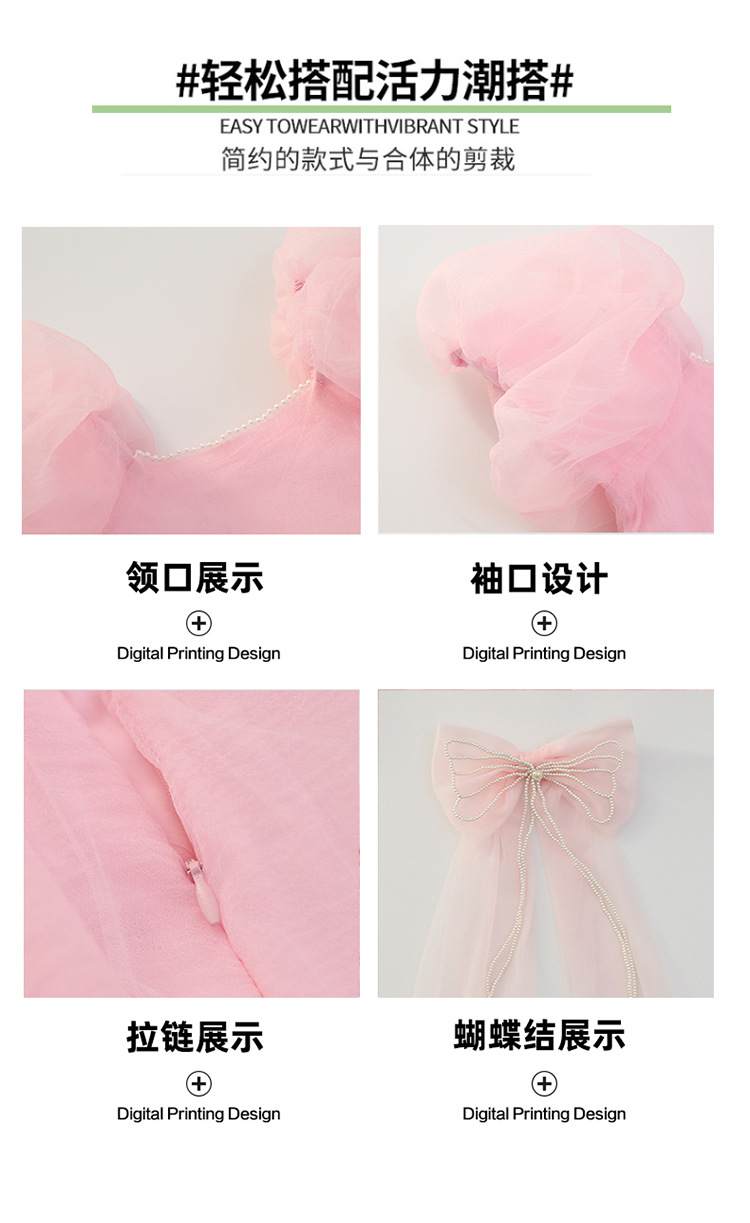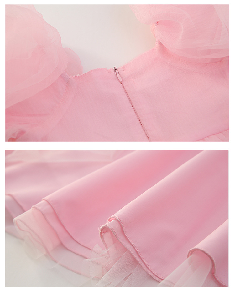 여자 원피스 여름 도매 2025 어린이 거품 소매 그물 빨간 공주 스커트 외국 스타일 소녀 메쉬 투투 스커트스토어 가기