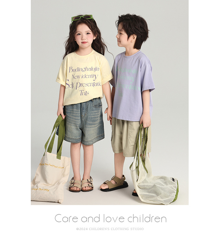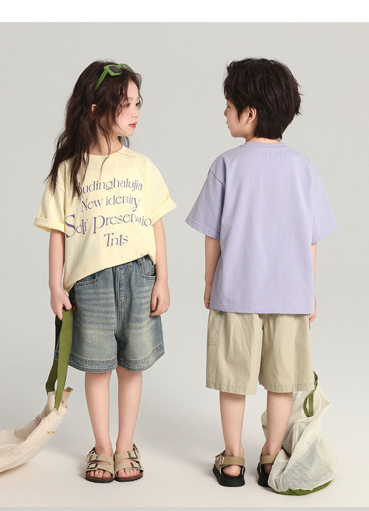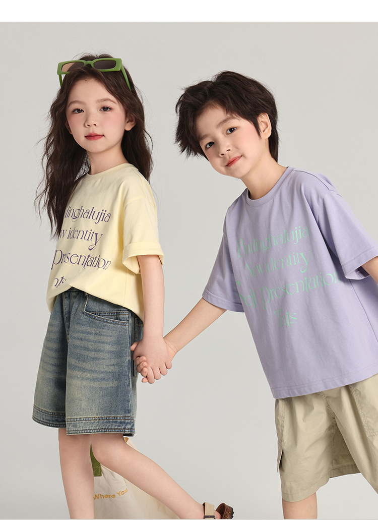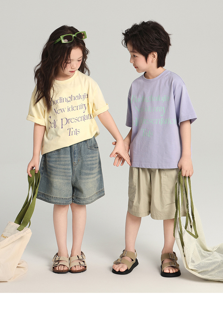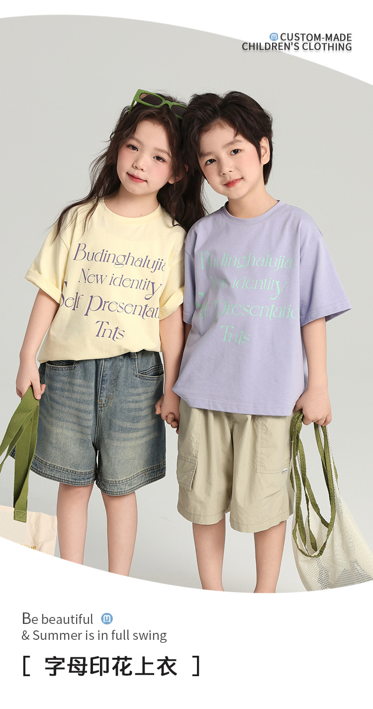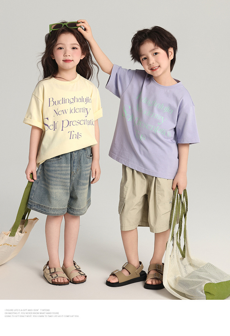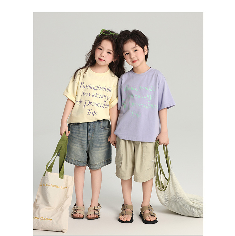 푸딩 하루 어린이 면 반팔 티셔츠 2025 여름 새 소년 편지 인쇄 캐주얼 루즈 탑스토어 가기