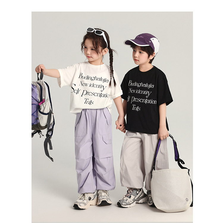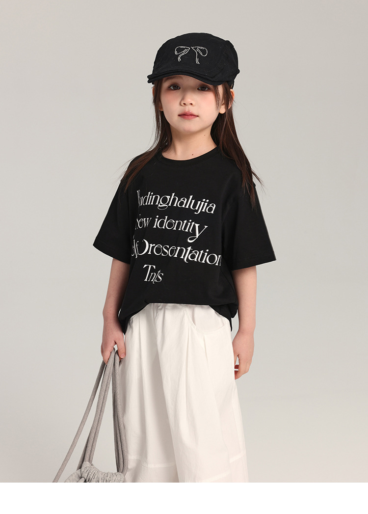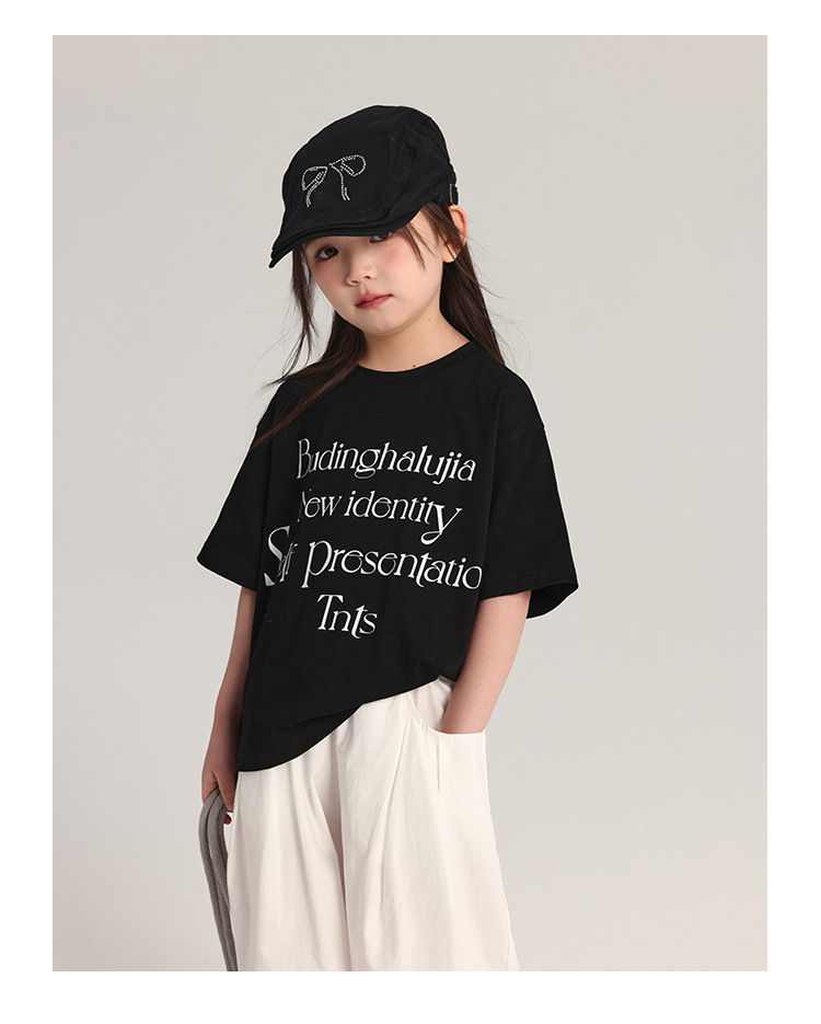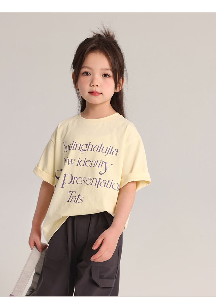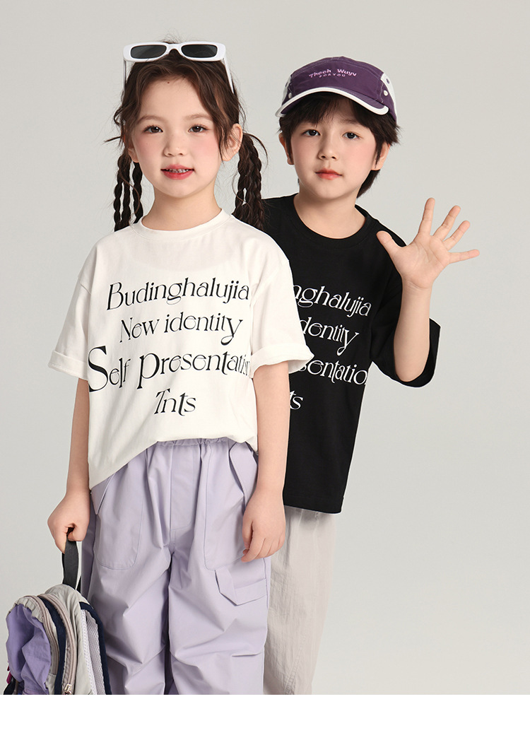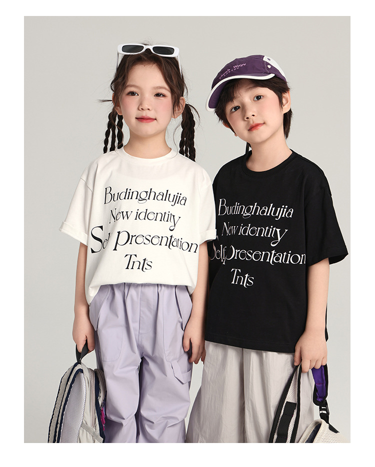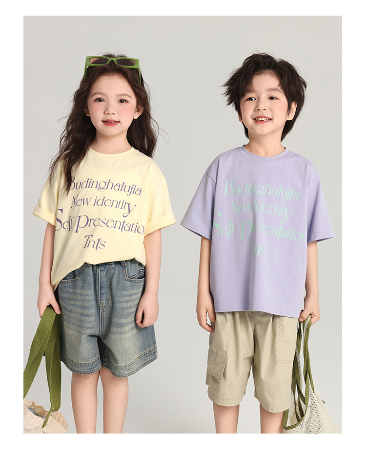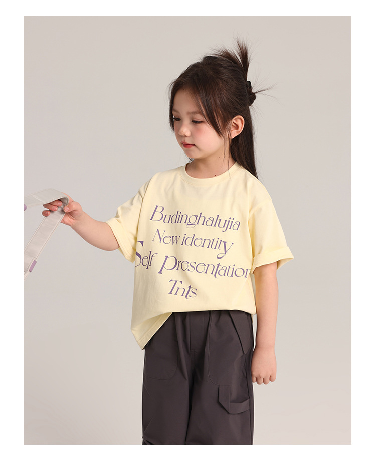 푸딩 하루 어린이 면 반팔 티셔츠 2025 여름 새 소년 편지 인쇄 캐주얼 루즈 탑