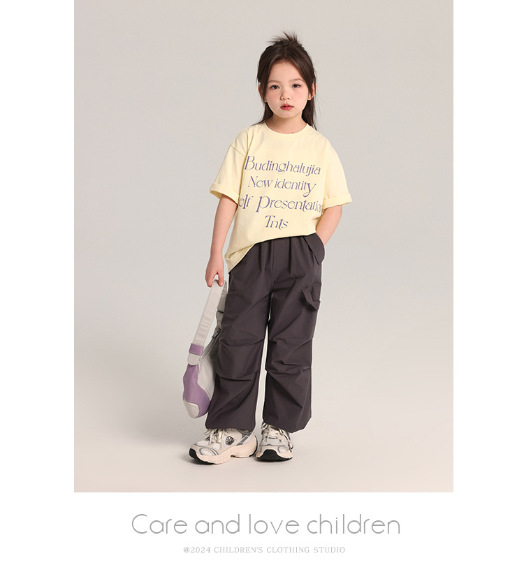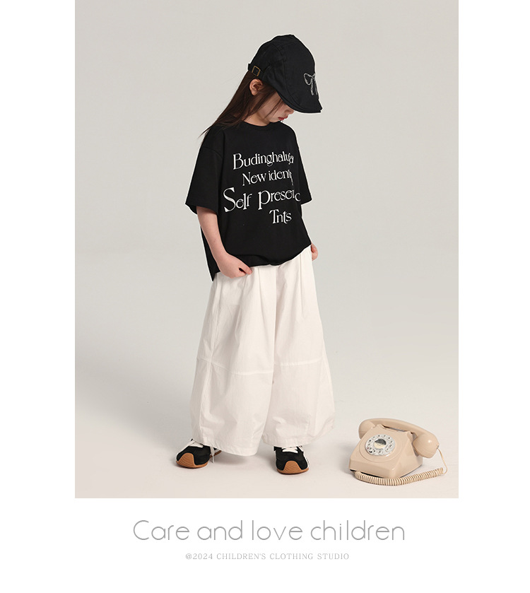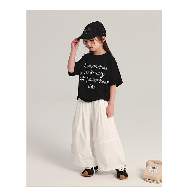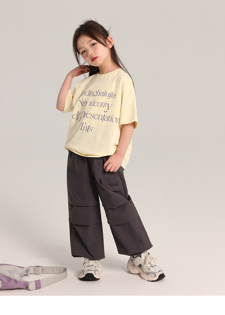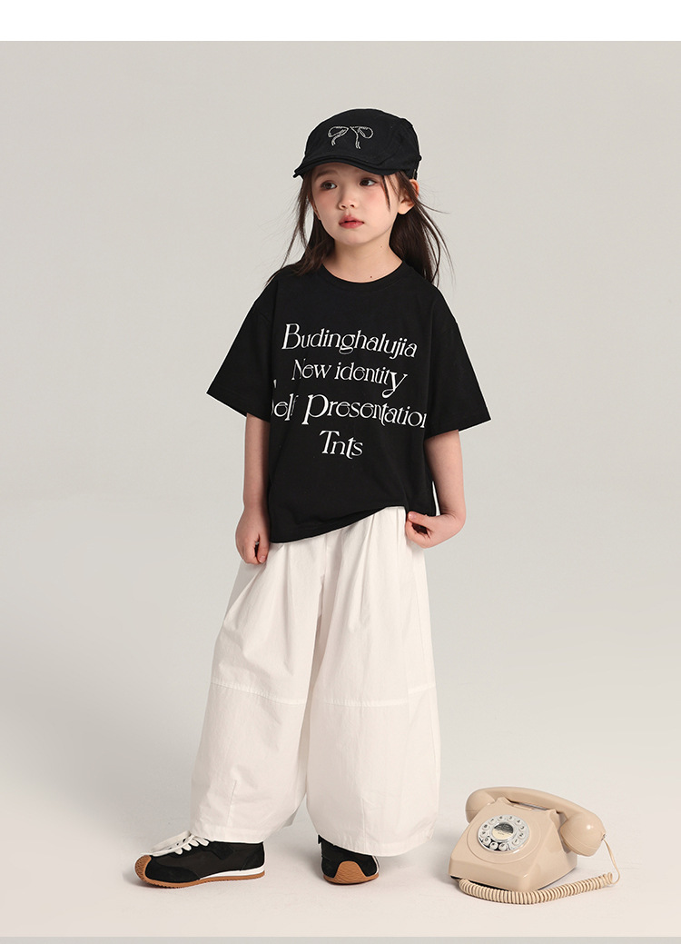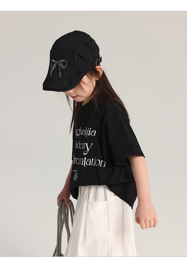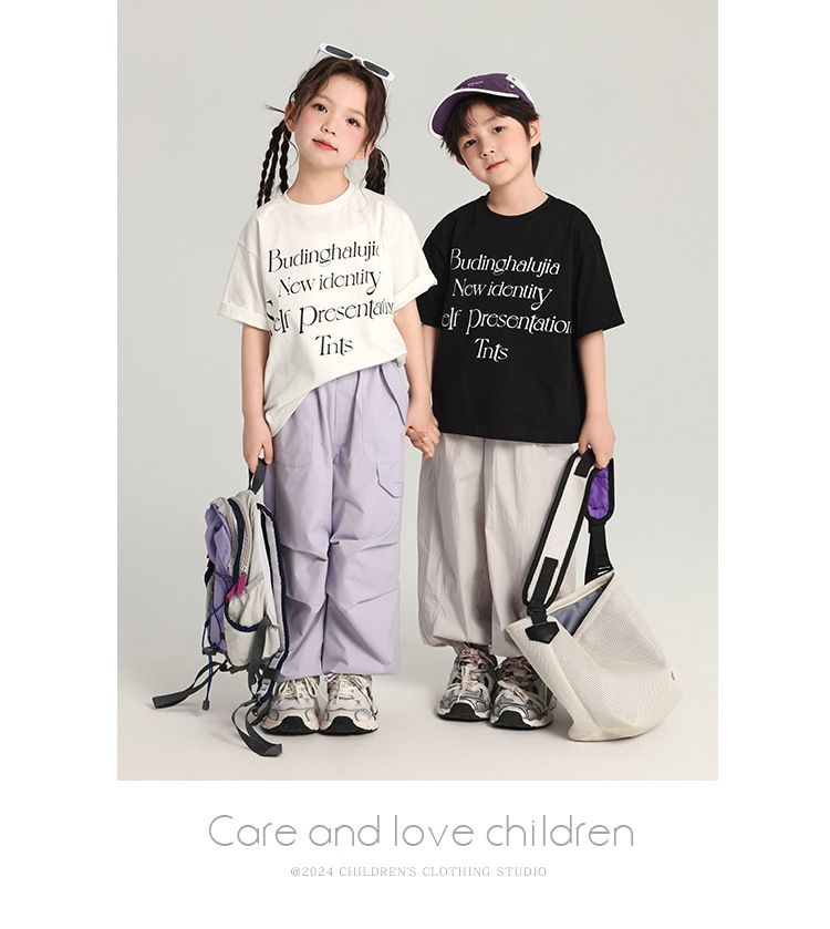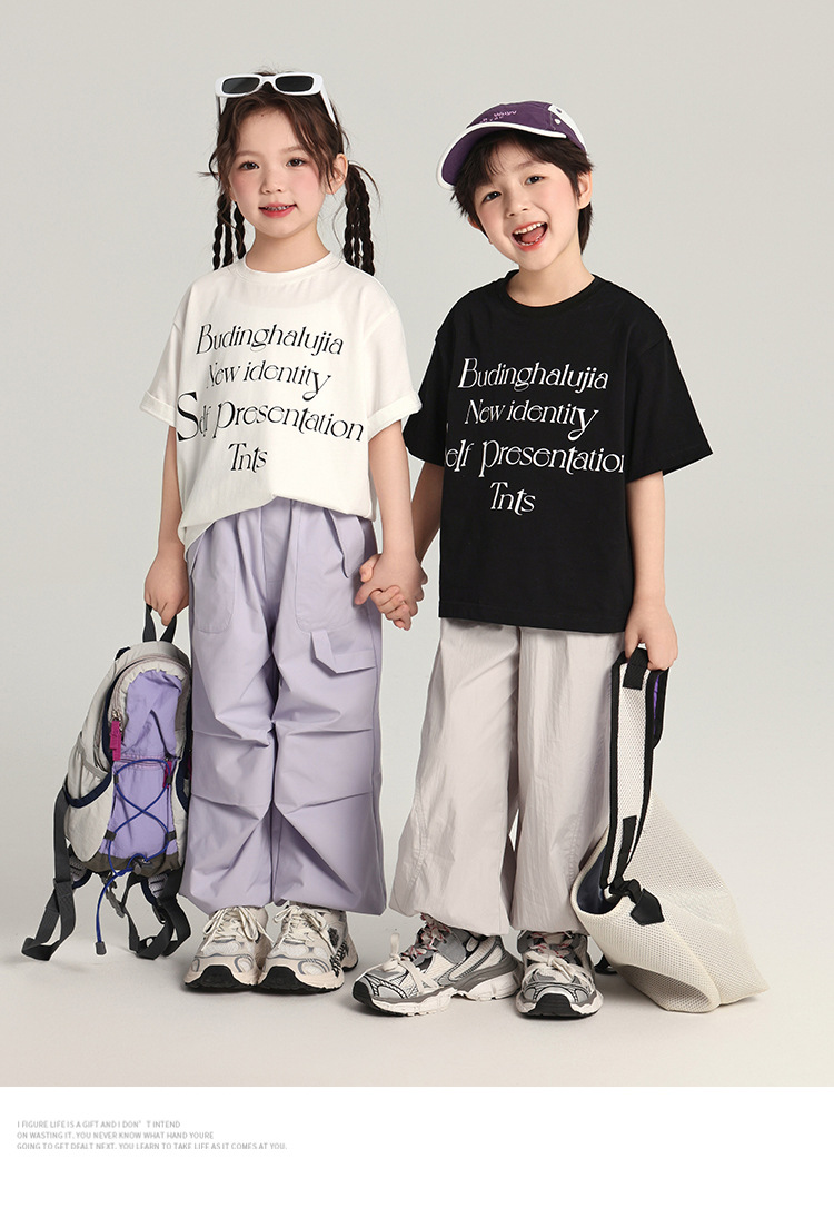 푸딩 하루 어린이 면 반팔 티셔츠 2025 여름 새 소년 편지 인쇄 캐주얼 루즈 탑